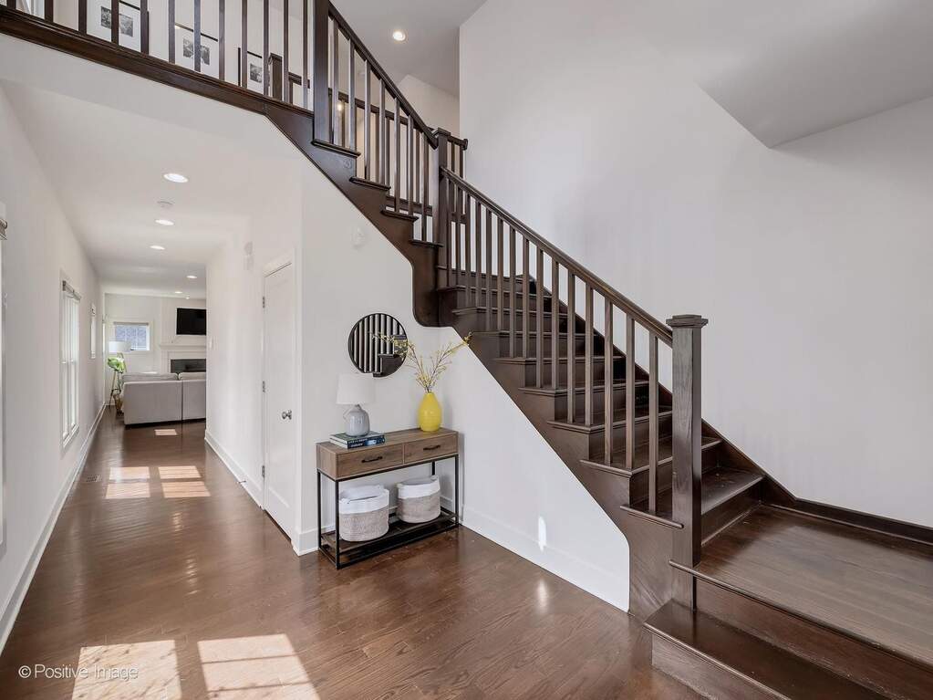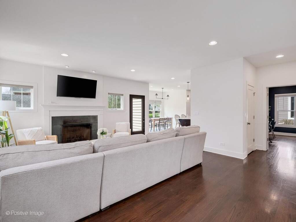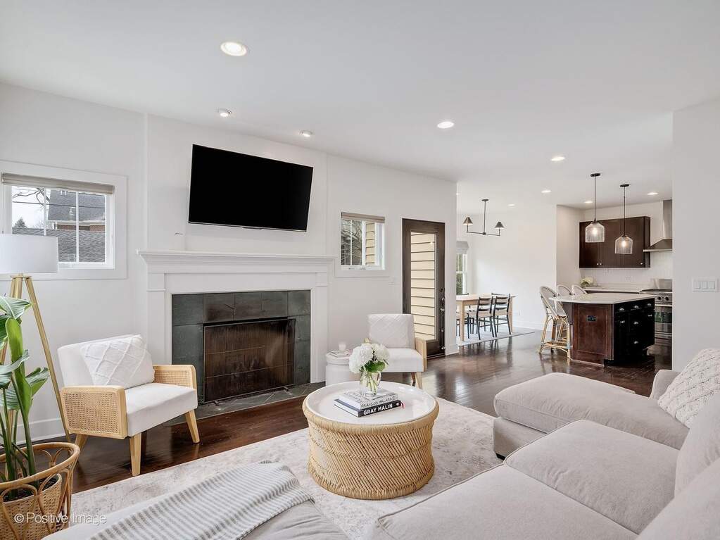 This newer-built home perfectly blends sophistication, comfort, and functionality, featuring modern design with clean lines and high-end finishes throughout. A covered front entry welcomes you into a sun-filled foyer with a wall of south-facing windows, a striking staircase, and soaring ceilings. The family room, anchored by a fireplace, opens seamlessly to a custom kitchen with dark maple cabinetry, a large center island, and an inviting breakfast room overlooking the backyard and private paver patio with sprinkler system. The second floor offers a light-filled open landing and three generous bedrooms, each with walk-in closets. The luxurious primary suite includes a beautifully designed walk-in closet and an elegant bath with dual vanities. Flexible first-floor spaces include a den, laundry, and mudroom, complemented by 9' ceilings, hardwood floors, and recessed lighting throughout. The fully finished basement adds exceptional living space, complete with a bedroom, full bathroom, and wet bar-perfect for entertaining or guest accommodations. Additional highlights include an attached two-car garage with radiant heat and a prime "Old Town" Western Springs location-just steps from schools, parks, town amenities, and the train. Enjoy an urban feel with all the charm of the suburbs-you'll love calling this home your own!