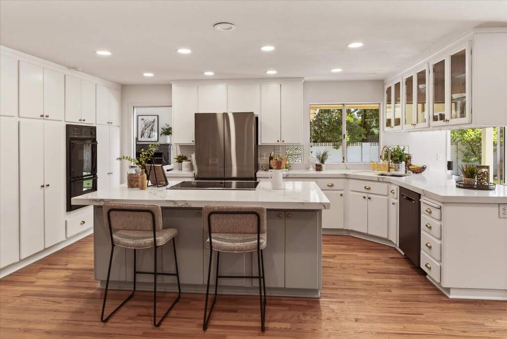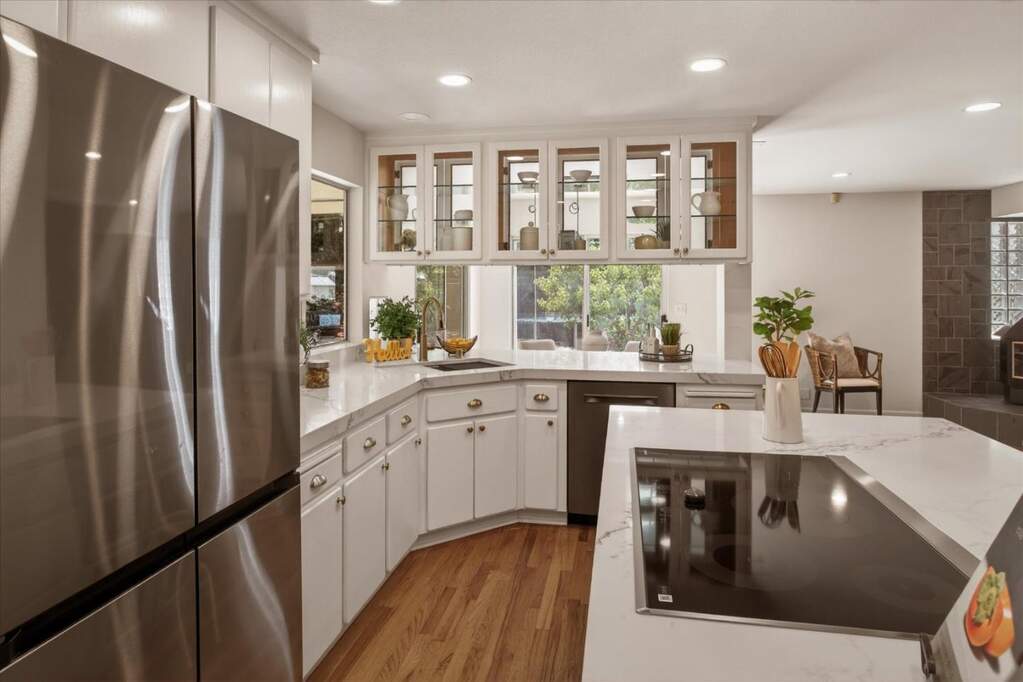 Bright, spacious, and versatile, this cul-de-sac sanctuary in top Almaden schools offers luxury finishes, multigenerational flexibility, and a 13,000SqFt lot with mature fruit trees and beautifully refreshed landscaping. The updated kitchen features new quartz counters, new recessed lighting, new induction range, new sink & disposal, and new fridge, plus Bosch dishwasher and built in double ovens, opening to the family room and breakfast nook. Two sunny bedroom wings, each with three bedrooms and two baths, provide ideal separation for extended family, guests, or home offices, with large primary suites boasting walk-in closets and deluxe baths. The 2nd floor primary retreat offers a private balcony & fireplace. Front-facing bedrooms enjoy views of Mt Umunhum. Upstairs includes a laundry room, loft, & bonus room with closet that's plumbed for a half bath. The lower hall bath (2023 remodel) closet has hookups for washer & dryer, and the corner bedroom is plumbed for a kitchenette. Wide side yards plus the 3-car garage offer ample room for vehicles, RV or boat, home gym, & more. Lots of Upgrades: dual-zone HVAC with smart controls, numerous skylights (many with new glass), dual-pane windows, hardwood floors, fresh paint, tasteful built-ins, 3 fireplaces, & so much storage!