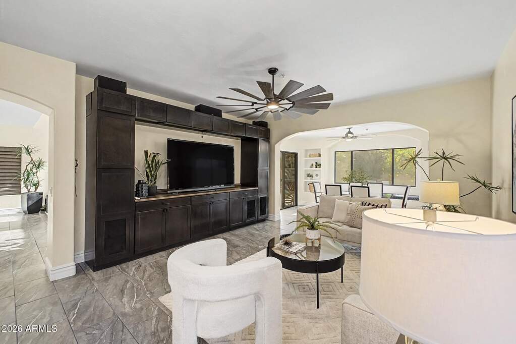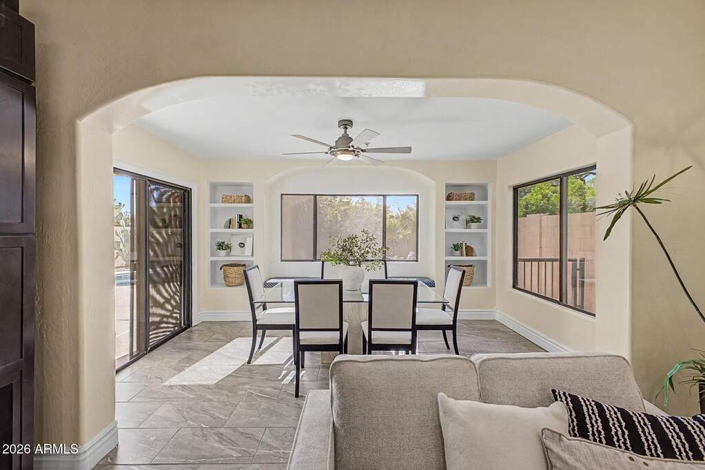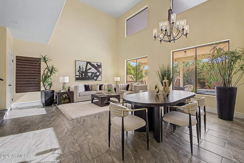 Welcome to this beautifully updated North Scottsdale home in the desirable Aviara community. This spacious residence features 3 bedrooms, 2.5 bathrooms, and a 2-car garage, with both a separate family room and living room; perfect for comfortable living and entertaining. Enjoy Arizona living at its finest with your own private salt water pool, while the community also offers a pool and spa for residents. The home is positioned next to a private community park with a lush green shaded sitting area providing added privacy and open views. Conveniently located near top shopping, dining, and schools, this home is just minutes from Horizon Dog Park, Horseman Park and Mcdowell Mountain Aquatics center. Minutes from West World and several golf courses. Under 30 minutes from Gainey Ranch Golf Club and Starfire at Scottsdale Country Club. With quick access to Loop 101, you're only 25 minutes from Desert Ridge Marketplace and well-connected to everything Scottsdale has to offer. This home has been meticulously maintained and thoughtfully updated, featuring modern finishes and major system upgrades that provide both style and peace of mind. This is a fantastic opportunity to enjoy comfort, convenience, and a prime Scottsdale location.