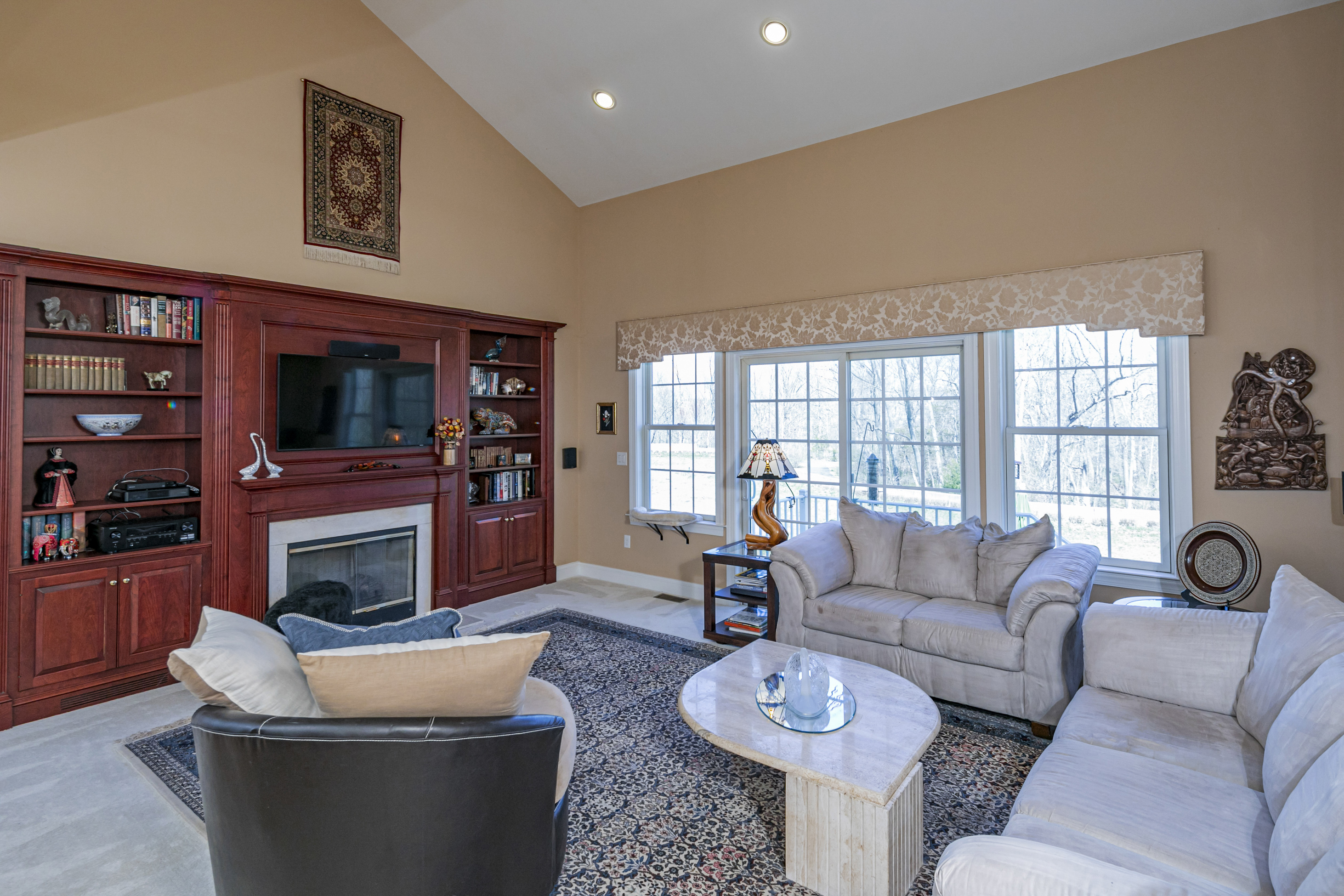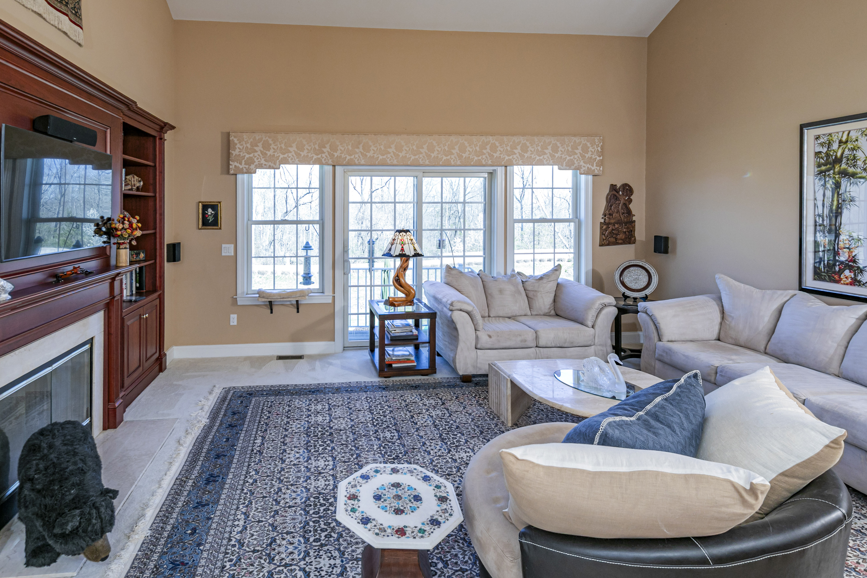 Experience the best of 55+ living in this expanded Bridgeford model, situated on one of Tapestry at Montgomery's largest and most desirable lots. Perfectly positioned directly across from the clubhouse, pool, and tennis courts, this home offers immediate access to community amenities while maintaining a sense of quiet seclusion. The bright interior is thoughtfully designed for both comfort and functionality. The front entry is flanked by living and dining rooms perfect for formal entertaining. A granite-clad kitchen, with generous cabinetry and a center island, serves as the heart of the home; it opens to the spacious family room featuring vaulted ceiling, gas fireplace, custom built-ins, surround sound and sliders that lead out to a private paver patio. This outdoor space provides a peaceful retreat with views of mature trees and a tranquil bio-basin, offering a level of privacy rarely found in the community. The first-floor primary suite features dual walk-in closets, a spa-like en-suite bath, and laundry. Upstairs, a versatile custom loft with built-in cabinetry provides the ideal home office or library, accompanied by two additional bedrooms and a full bath for guests. Practical highlights include a two-car garage, full daylight basement, a new HVAC system, and energy-efficient solar panels. Located just minutes from Princeton and the new Montgomery Promenade (openings scheduled for summer), this home combines sophisticated comfort with a premier Skillman location.