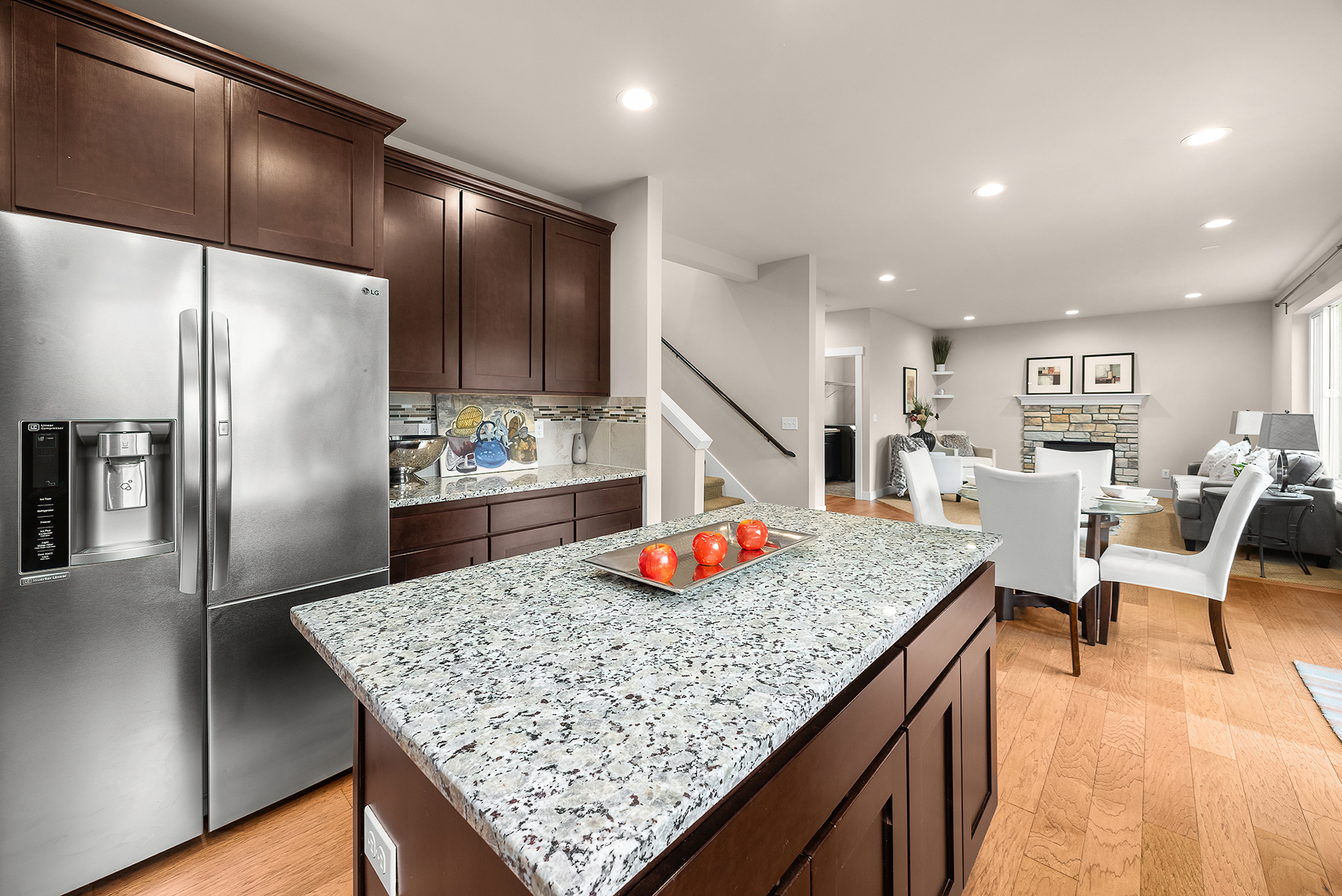 Welcome to this light, bright and inviting 2,676 sq ft residence in the North Creek area of Bothell. Fully fenced on a 1/4 acre lot on a quiet cul-de-sac, there is a tranquil green belt adjacent to this gently lived in home. Featuring 4 bedrooms and 2 1/2 bathrooms plus a spacious bonus room, there's room for living well. The primary bedroom has an ensuite bathroom and a spacious walk-in closet. The kitchen has an abundance of counterspace, a walk-in pantry and an eat-in area that opens to a family room anchored by a cozy stone fireplace. With a large skylight above the staircase, the home is light and cheerful even on cloudy days. With beautiful pecan accented engineered hardwood floors, Berber carpets, granite countertops, a brand new 97% efficient heating and AC system, a new dishwasher, and wired for a generator, this home is move-in ready. Set in a charming community only minutes away from Mill Creek Town Center for shopping, entertainment, and dining. Easy access to the 405 and Bothell Everett Highway. This well maintained, modern, and beautiful home is the one you have been waiting for!