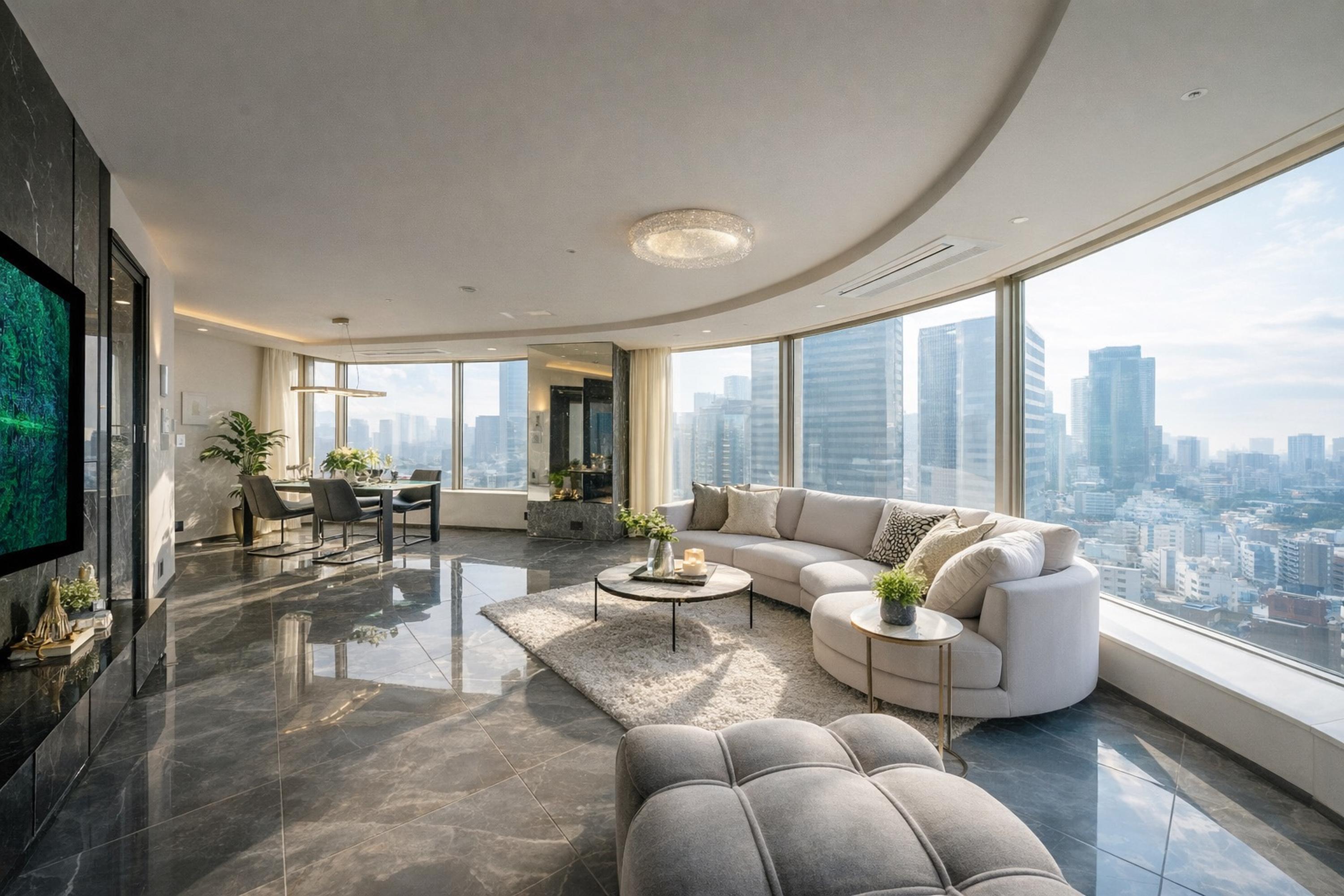 - Key Features: Glass Luce TV monitor wall, underfloor heating, premium marble finishes.