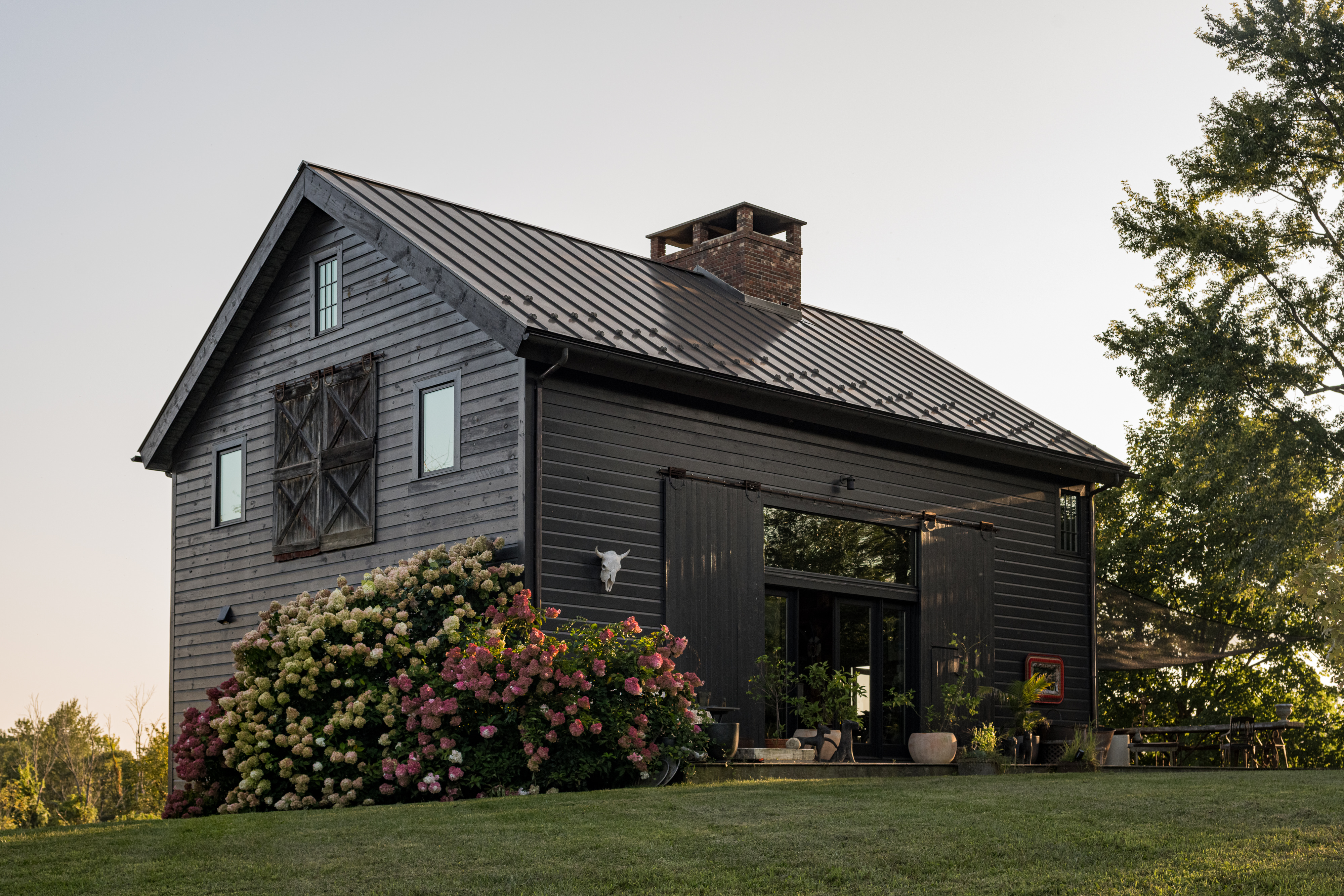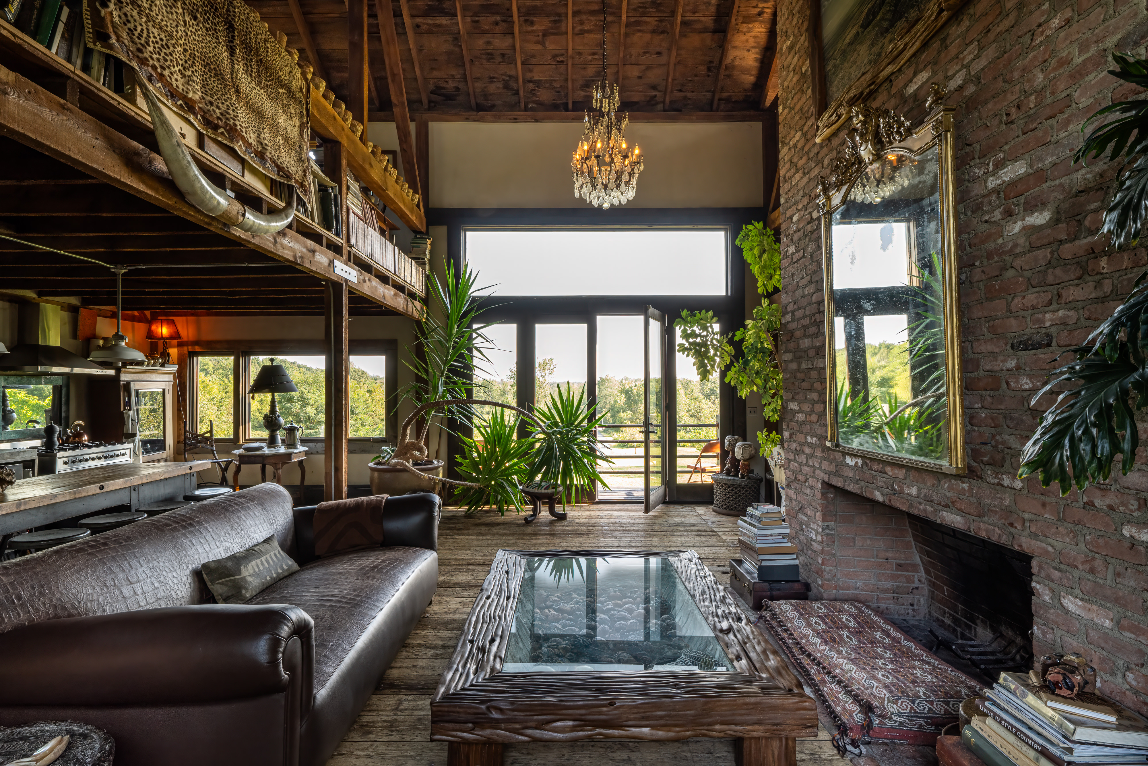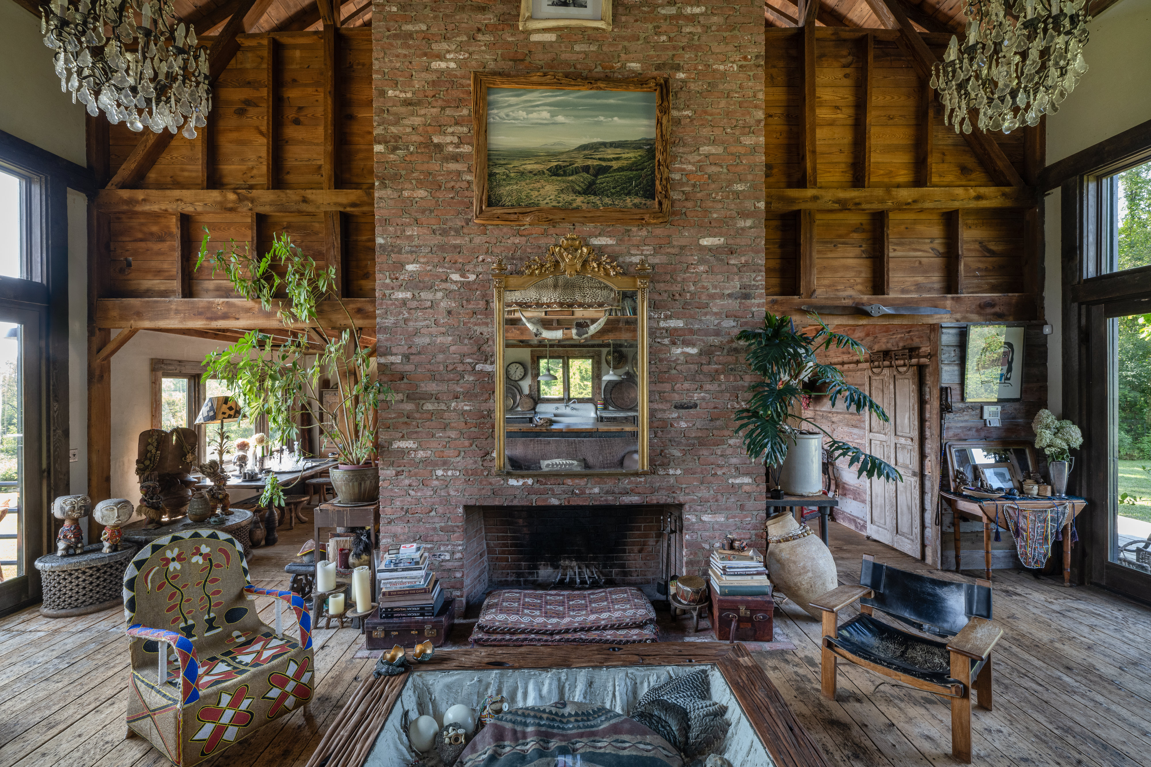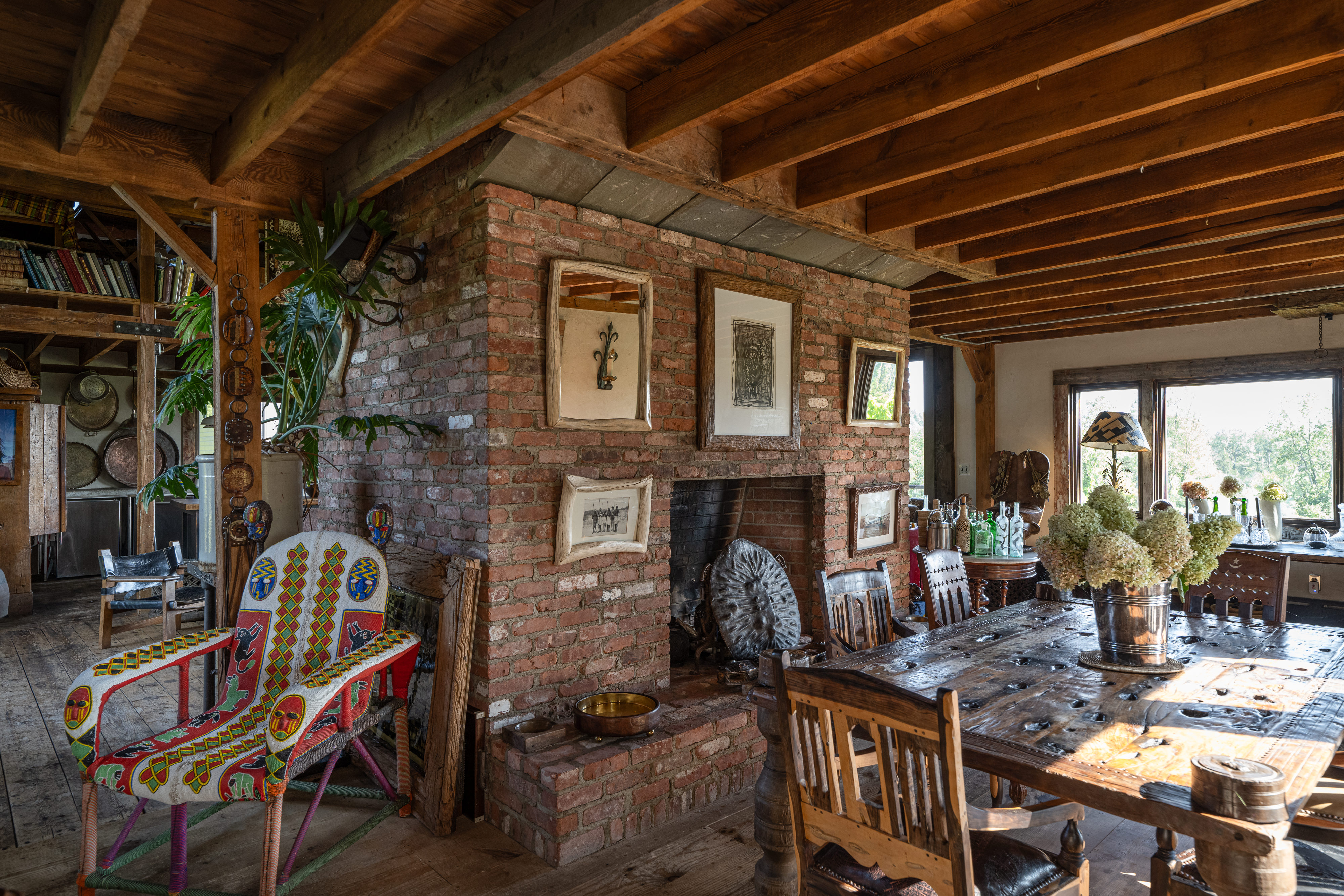 Down a long drive off a quiet country road in Germantown you’ll find 114 Best Lane. The c1865 post and beam barn has been completely rebuilt and reimagined from the ground up, and a beautiful 1,800 sq ft guest house has been constructed on the property. The thirteen acre property is incredibly private and quiet— the barn is tucked in amongst tall catalpa trees, and pastoral views have been carved into the landscape. The main barn is three levels, the kitchen is adorned with thick marble countertops and open, industrial shelving. The main space has cathedral ceilings, centered around a brick two-sided woodburning fireplace that soars over two stories and anchors the room. The dining area opens through french doors onto the large wraparound deck. Upstairs, the master bedroom is reminiscent of a chateau in the south of France, with an open air soaking tub and a carved marble sink, a powder room is tucked back behind swinging wooden doors. The opposite wing upstairs, accessed by its own stairwell, is currently being used as an artist’s studio. The walkout lower level has a large central room with a woodburning fireplace at the center, two bedrooms tucked off to the side and a full bath. The layout is flexible and can easily accommodate ones specific needs. The guest house is simple and beautiful in its architecture— a long porch overlooks the front field and inside each floor is open and lightfilled. Kitchen and living on the first floor, and an incredibly spacious bedroom on the second. A covetable bathroom, beautifully adorned with antique hardware, is tucked behind barn doors. 114 Best Lane is centrally located just minutes to Otto’s Market and Gaskins restaurant in Germantown, and just 10m to Hudson, Rhinebeck and Amtrak in either direction. An incredible property, for one to live a true maximalist lifestyle or pare back to reveal incredible bones and beautiful architecture.