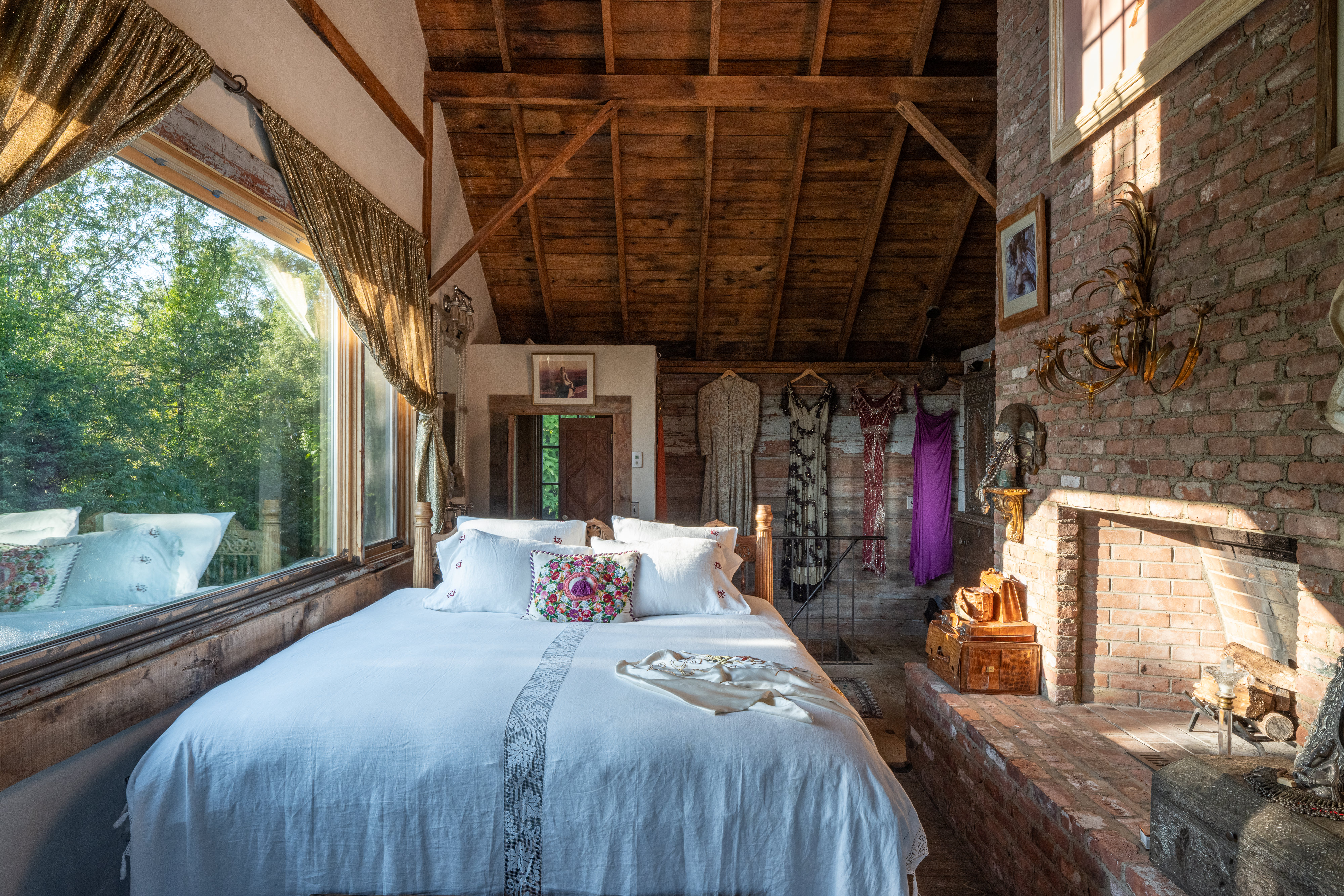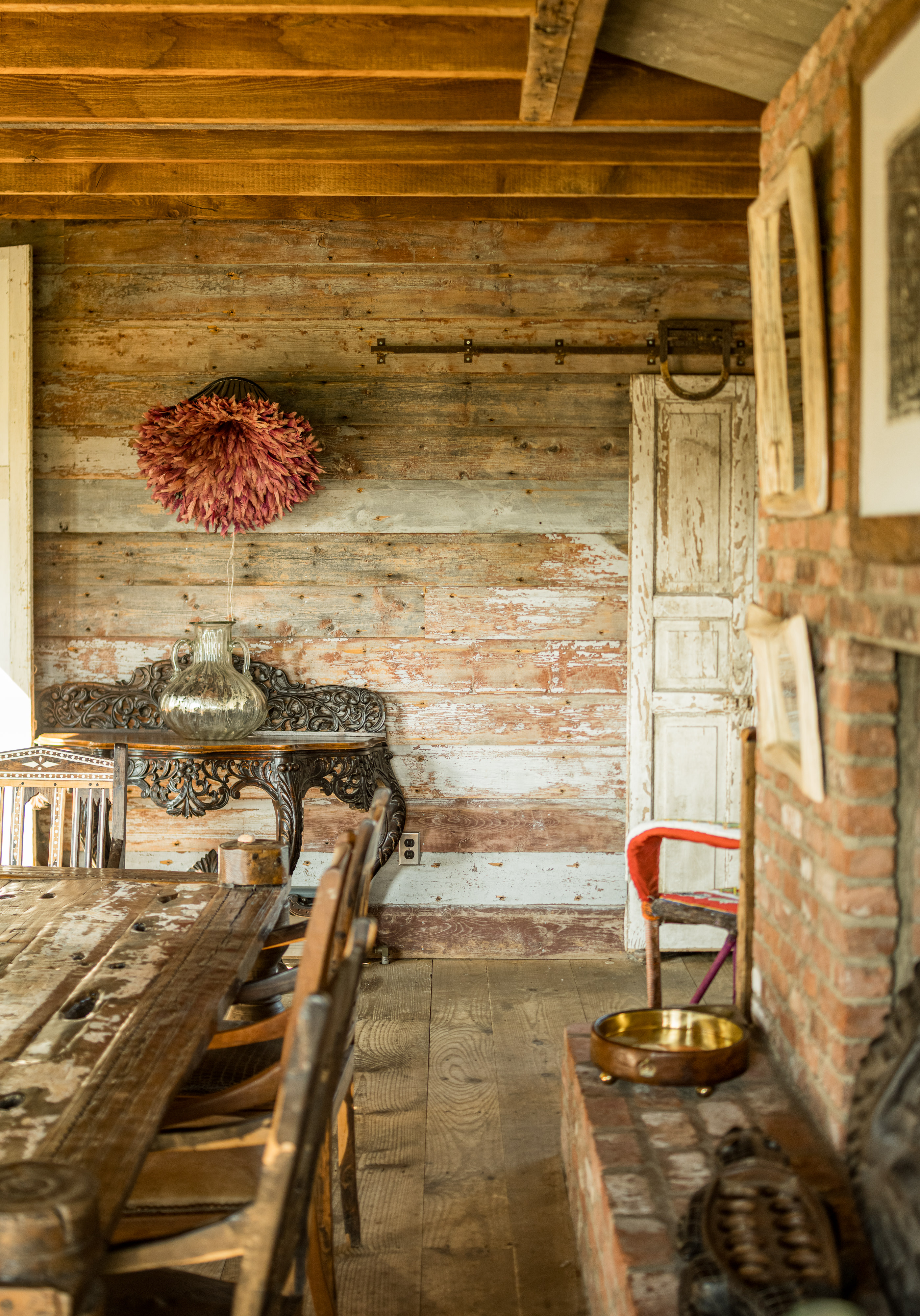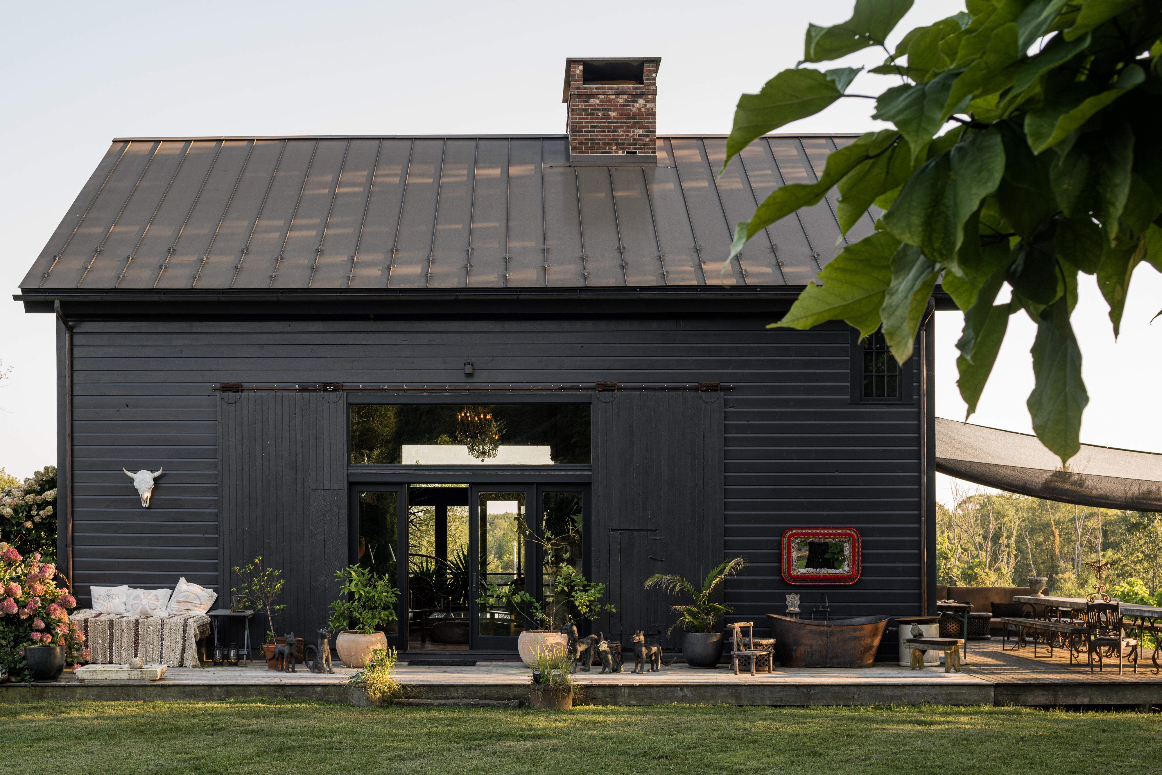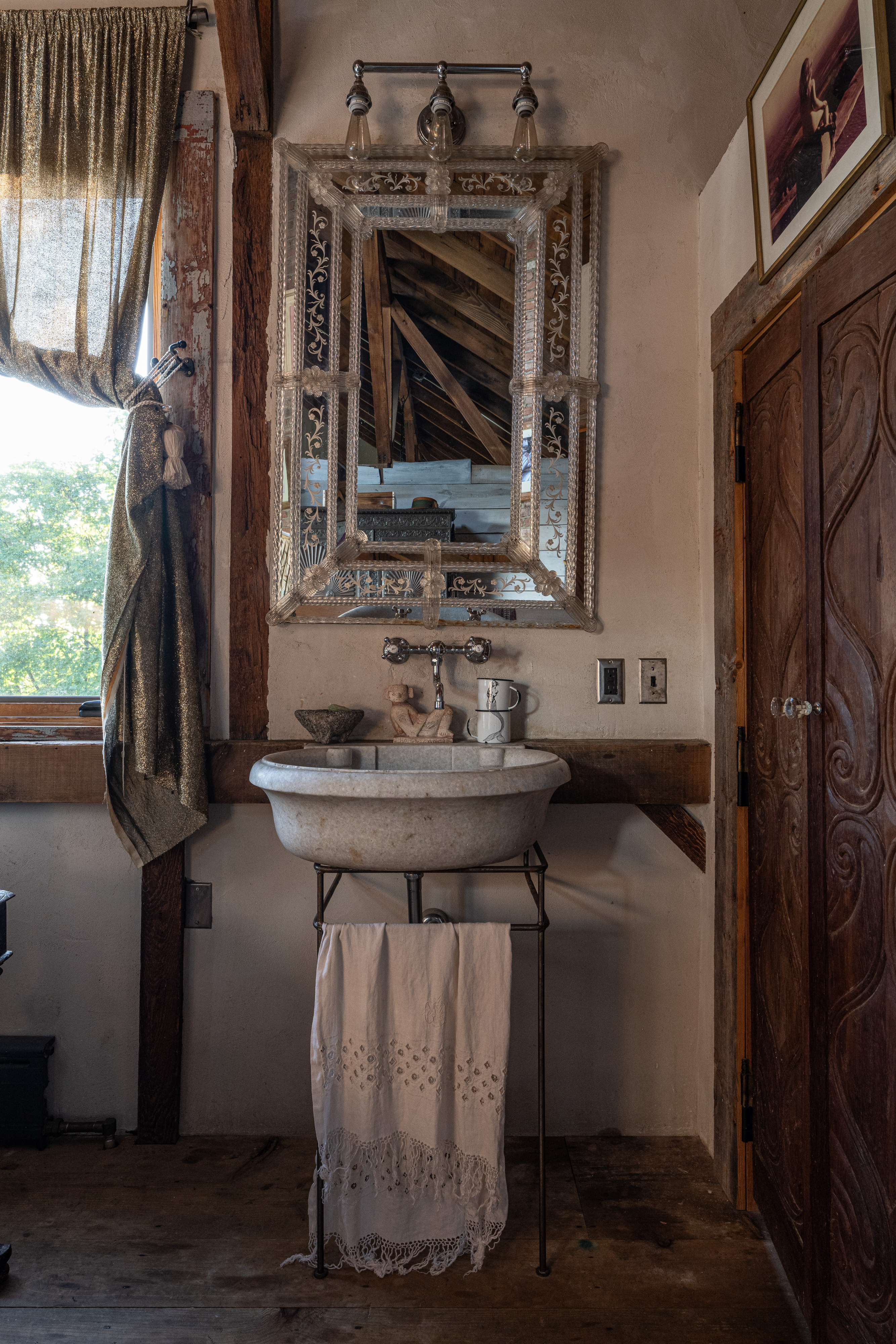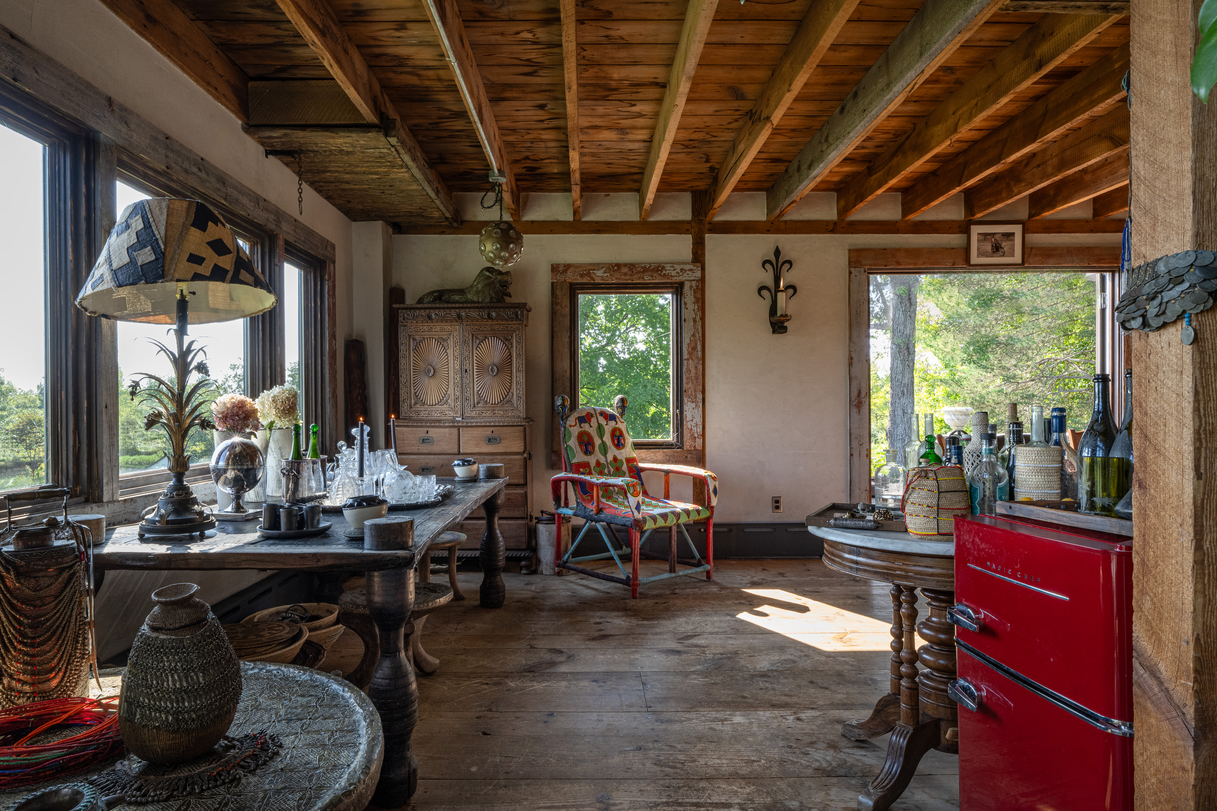 Down a long drive off a quiet country road in Germantown you’ll find 114 Best Lane. The c1865 post and beam barn has been completely rebuilt and reimagined from the ground up, and a beautiful 1,800 sq ft guest house has been constructed on the property. The thirteen acre property is incredibly private and quiet— the barn is tucked in amongst tall catalpa trees, and pastoral views have been carved into the landscape. The main barn is three levels, the kitchen is adorned with thick marble countertops and open, industrial shelving. The main space has cathedral ceilings, centered around a brick two-sided woodburning fireplace that soars over two stories and anchors the room. The dining area opens through french doors onto the large wraparound deck. Upstairs, the master bedroom is reminiscent of a chateau in the south of France, with an open air soaking tub and a carved marble sink, a powder room is tucked back behind swinging wooden doors. The opposite wing upstairs, accessed by its own stairwell, is currently being used as an artist’s studio. The walkout lower level has a large central room with a woodburning fireplace at the center, two bedrooms tucked off to the side and a full bath. The layout is flexible and can easily accommodate ones specific needs. The guest house is simple and beautiful in its architecture— a long porch overlooks the front field and inside each floor is open and lightfilled. Kitchen and living on the first floor, and an incredibly spacious bedroom on the second. A covetable bathroom, beautifully adorned with antique hardware, is tucked behind barn doors. 114 Best Lane is centrally located just minutes to Otto’s Market and Gaskins restaurant in Germantown, and just 10m to Hudson, Rhinebeck and Amtrak in either direction. An incredible property, for one to live a true maximalist lifestyle or pare back to reveal incredible bones and beautiful architecture.