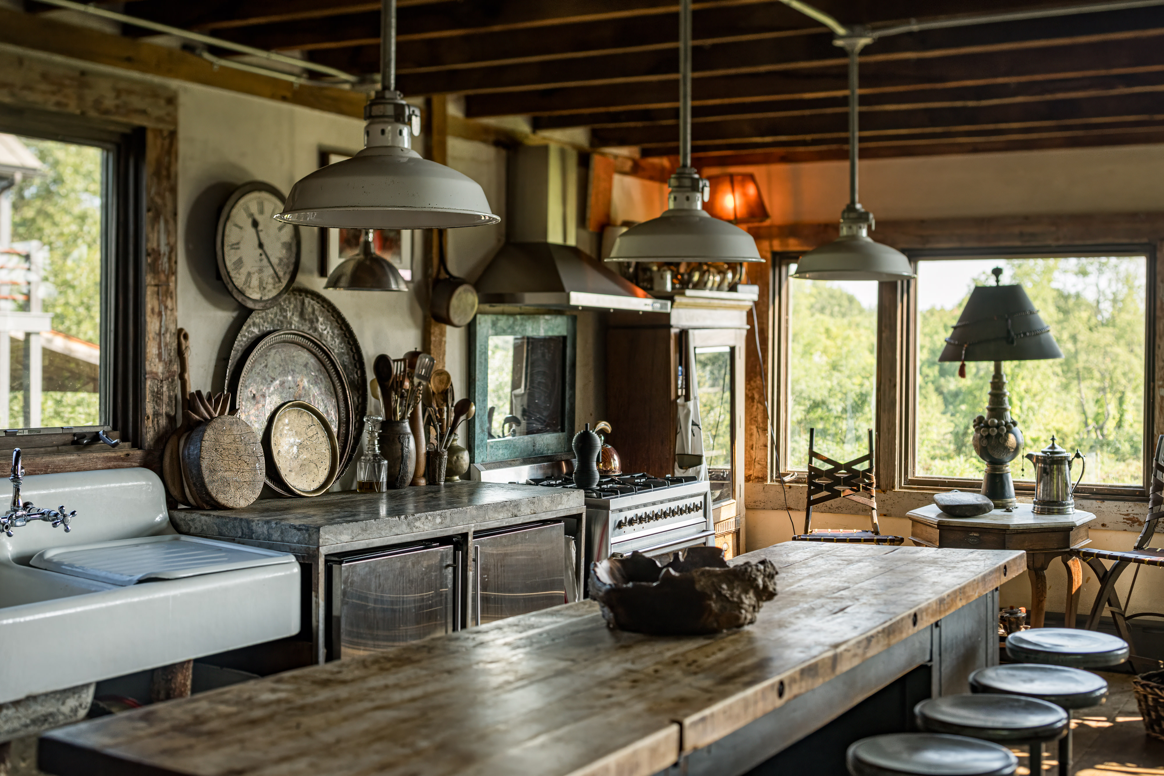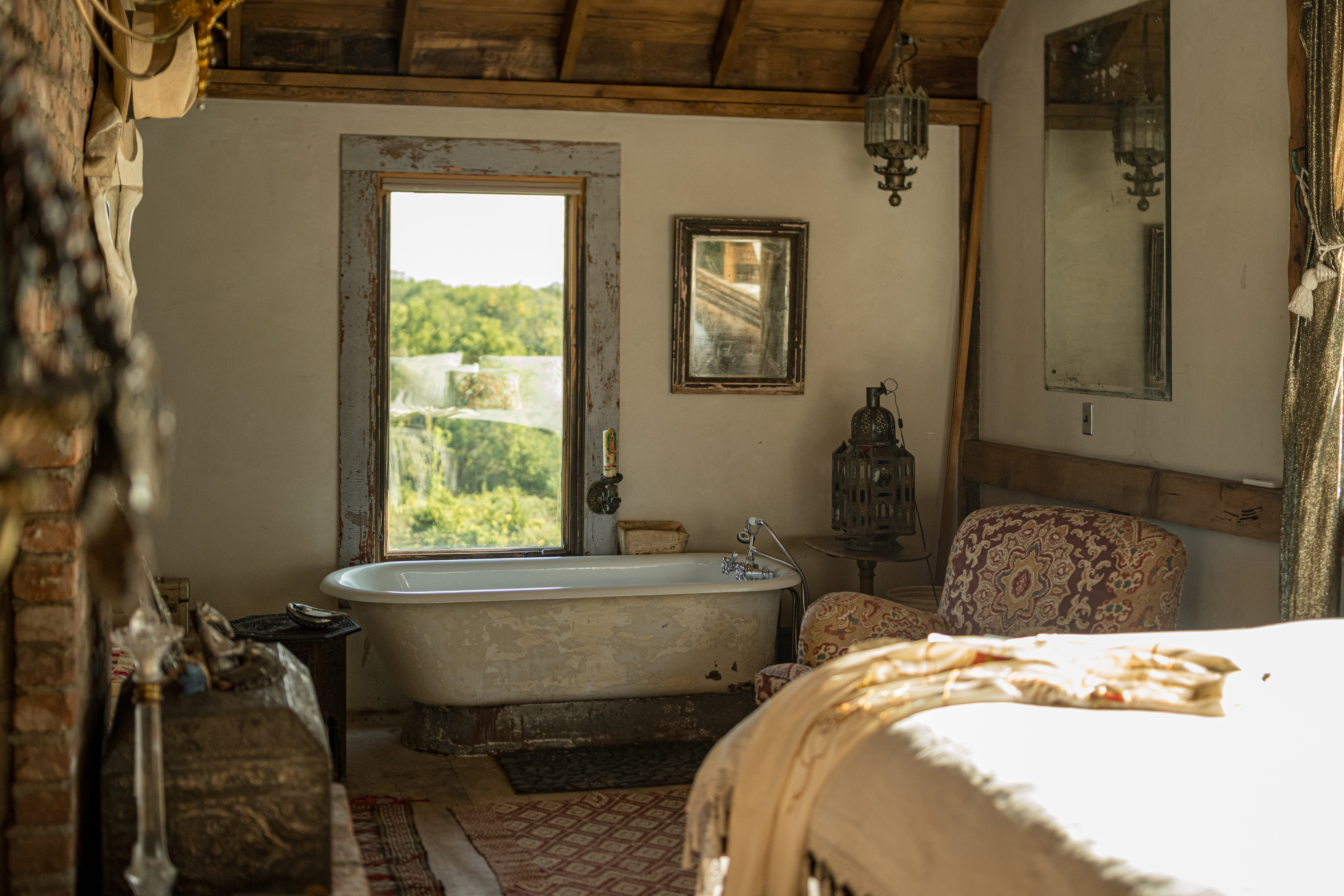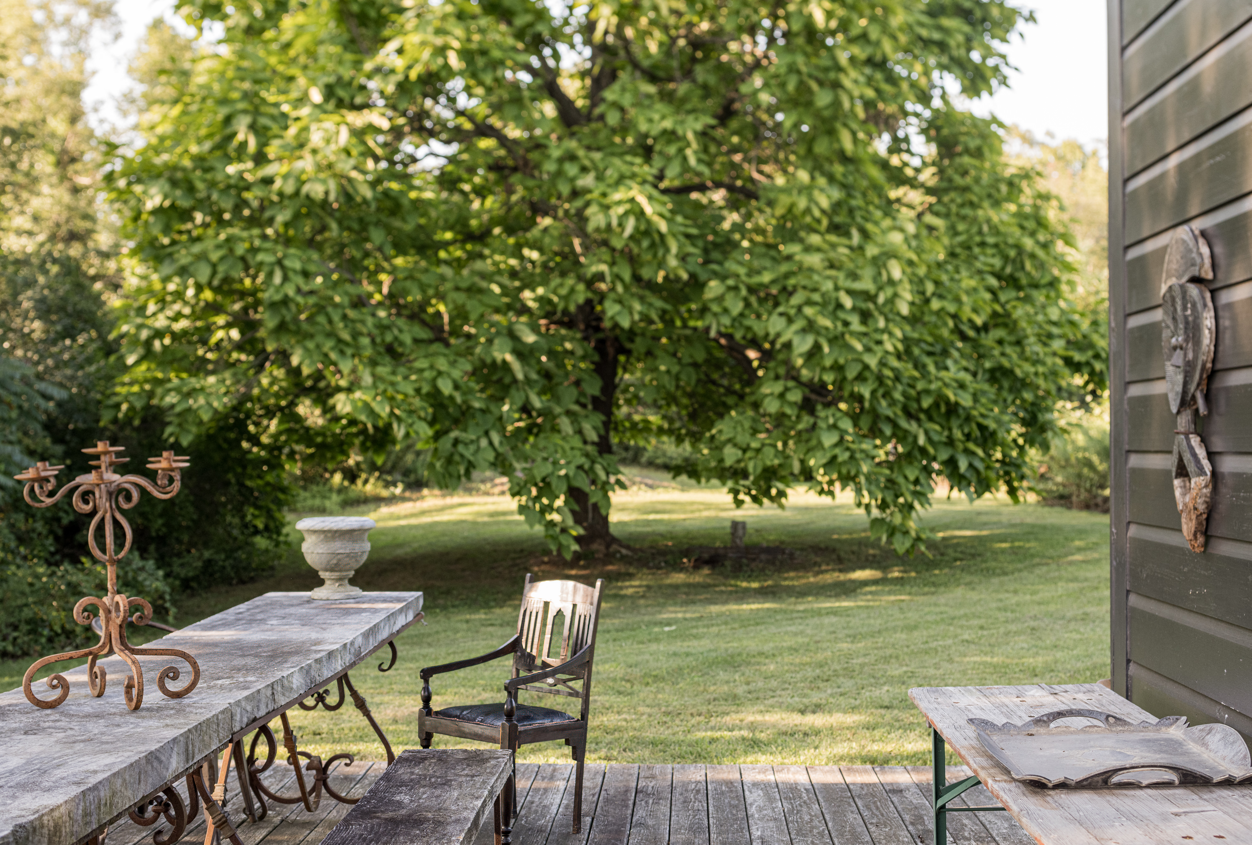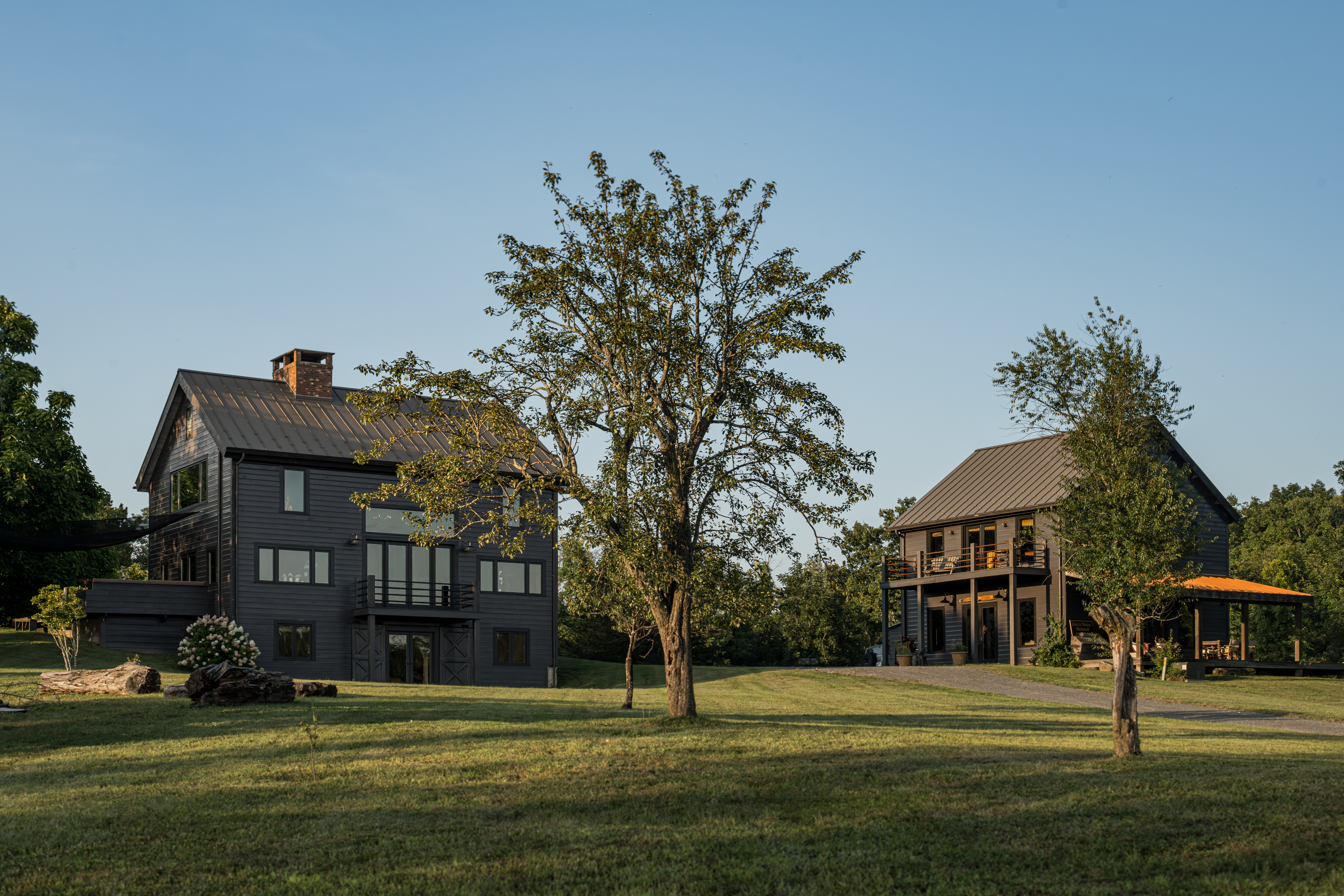 Down a long drive off a quiet country road in Germantown you’ll find 114 Best Lane. The c1865 post and beam barn has been completely rebuilt and reimagined from the ground up, and a beautiful 1,800 sq ft guest house has been constructed on the property. The thirteen acre property is incredibly private and quiet— the barn is tucked in amongst tall catalpa trees, and pastoral views have been carved into the landscape. The main barn is three levels, the kitchen is adorned with thick marble countertops and open, industrial shelving. The main space has cathedral ceilings, centered around a brick two-sided woodburning fireplace that soars over two stories and anchors the room. The dining area opens through french doors onto the large wraparound deck. Upstairs, the master bedroom is reminiscent of a chateau in the south of France, with an open air soaking tub and a carved marble sink, a powder room is tucked back behind swinging wooden doors. The opposite wing upstairs, accessed by its own stairwell, is currently being used as an artist’s studio. The walkout lower level has a large central room with a woodburning fireplace at the center, two bedrooms tucked off to the side and a full bath. The layout is flexible and can easily accommodate ones specific needs. The guest house is simple and beautiful in its architecture— a long porch overlooks the front field and inside each floor is open and lightfilled. Kitchen and living on the first floor, and an incredibly spacious bedroom on the second. A covetable bathroom, beautifully adorned with antique hardware, is tucked behind barn doors. 114 Best Lane is centrally located just minutes to Otto’s Market and Gaskins restaurant in Germantown, and just 10m to Hudson, Rhinebeck and Amtrak in either direction. An incredible property, for one to live a true maximalist lifestyle or pare back to reveal incredible bones and beautiful architecture.