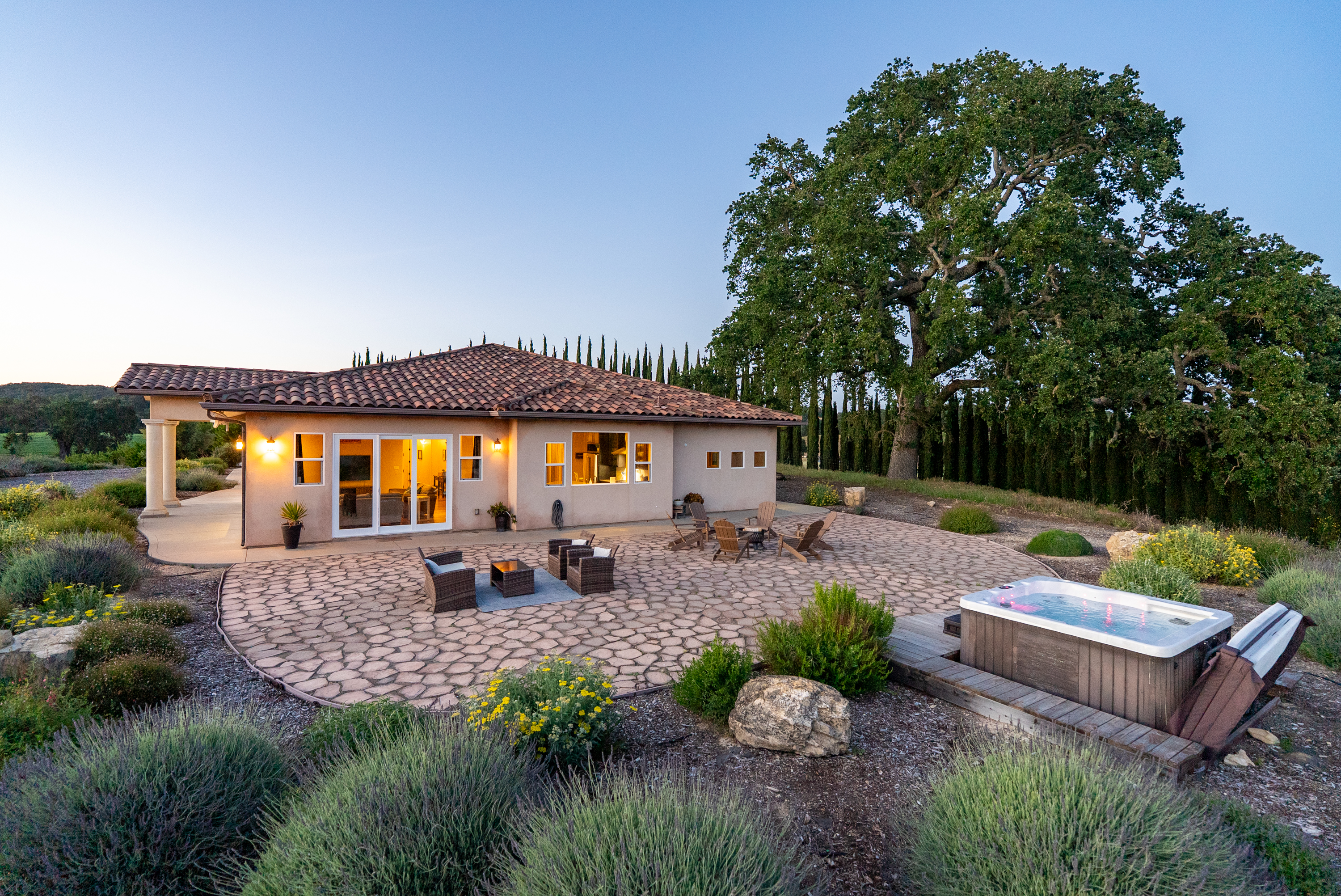 opportunity to own a legacy property with both history and income-producing potential. Set atop the rolling landscape, the Italian Villa-style main residence enjoys a commanding southwest-facing position overlooking expansive, plantable soils ideal for vineyard development. Built in 2007, the primary residence offers approximately 3,200± square feet with 4 bedrooms and 4 bathrooms, thoughtfully designed with an open layout, well-appointed kitchen, and multiple indoor and outdoor living spaces that capture the surrounding vineyard and hillside views. The property is currently a county-registered vacation rental with a strong and established income history, offering immediate usability for a buyer seeking both lifestyle and investment. Below the main residence, the original homestead, built in 1925, provides a second dwelling with 3 bedrooms and 2 bathrooms, rich in character and history. Surrounding improvements include a large shop/garage, orchards, and a chicken house and garden area, creating a setting well-suited for a homesteader or those seeking a self-sustaining lifestyle rooted in the land. Positioned along Vineyard Drive on the premier Westside 46 corridor, the property offers a uniquely private setting nestled among renowned vineyards, including Denner and Jada. The combination of elevated homesite, usable acreage, and existing infrastructure provides versatility for vineyard development, multi-generational living, or continued income use. With proximity to world-class wineries and just a short drive to downtown Paso Robles, this offering embodies the essence of Central Coast living—where heritage, land stewardship, and long-term value converge.