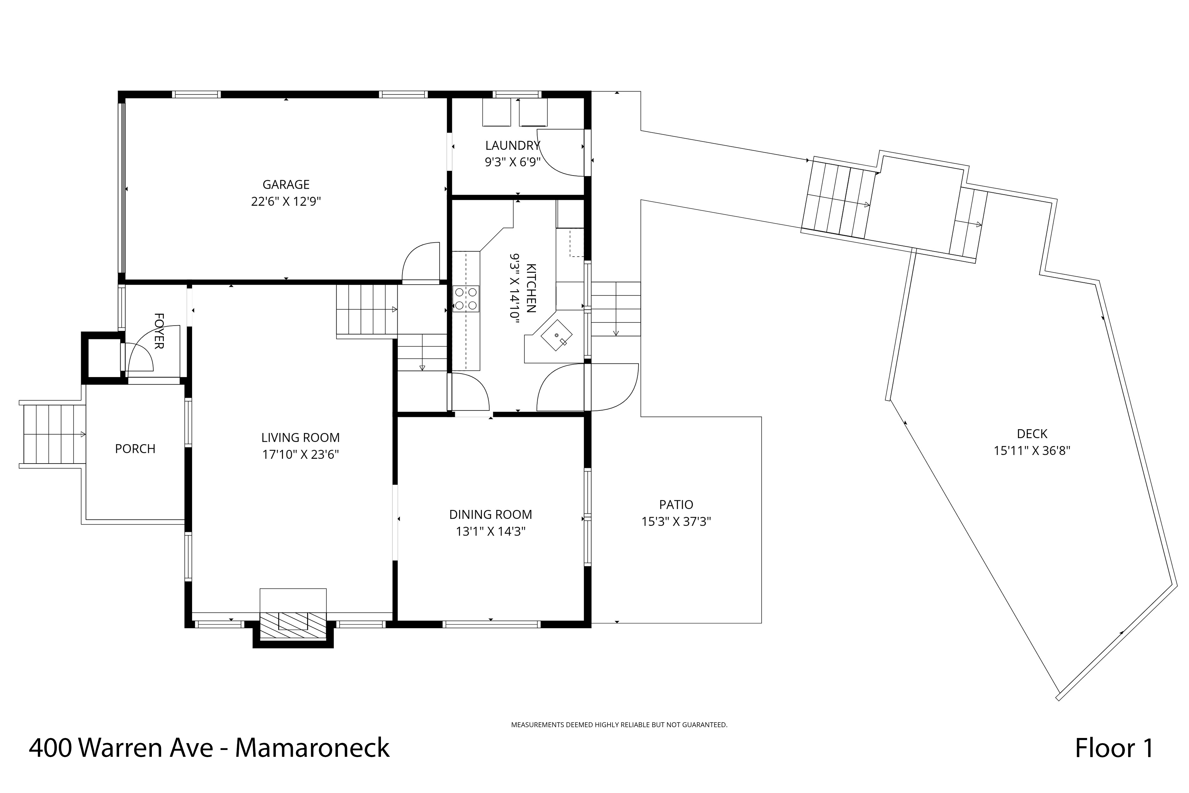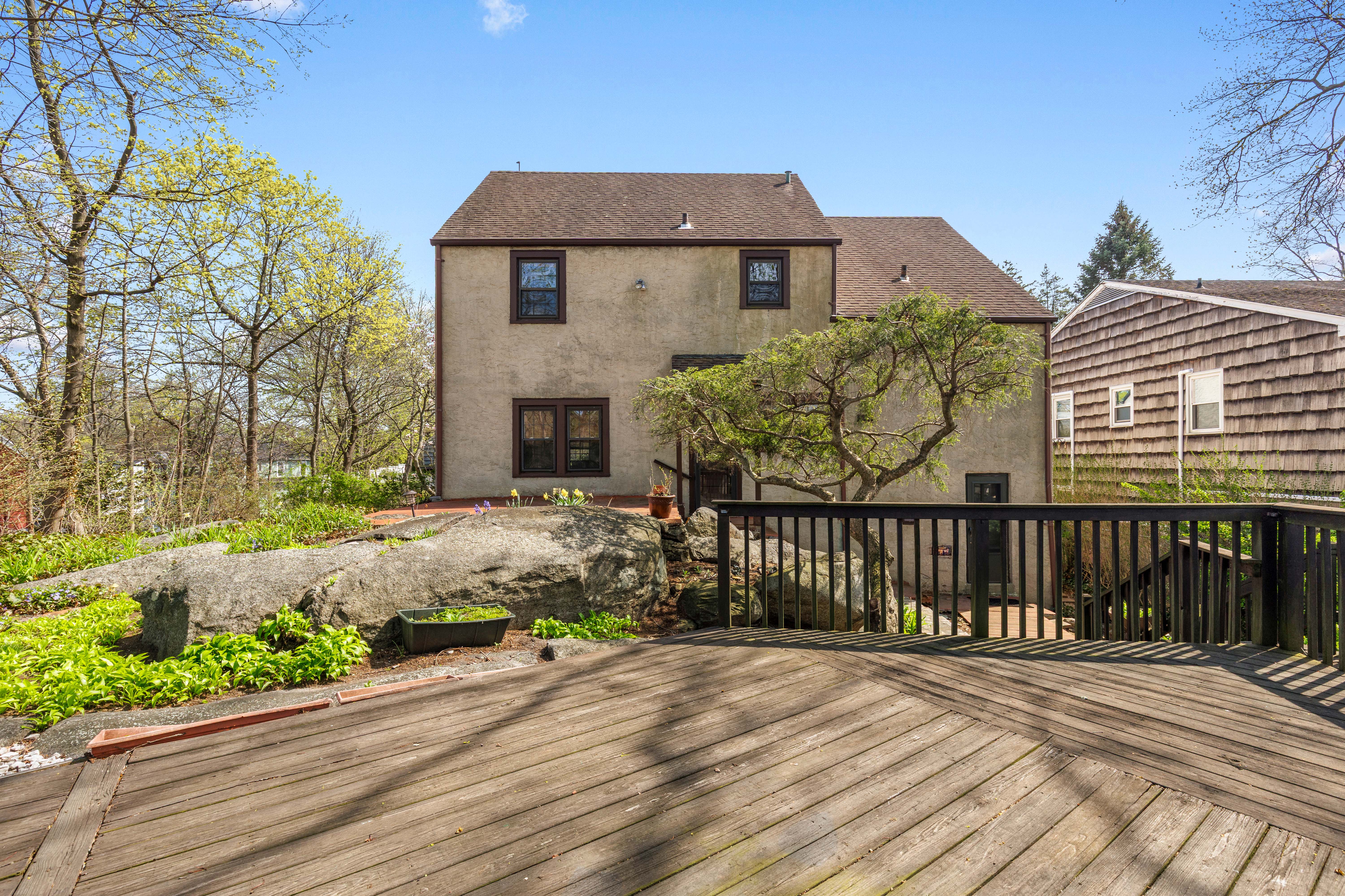 Welcome to 400 Warren Avenue in Harbor Heights, Mamaroneck. This 2,031 square foot Tudor residence is situated on a tranquil street adjacent to Warren Park, which features extensive playground facilities and a tennis court. The home offers a comfortable living room with wood-burning fireplace and a formal dining area. The kitchen is appointed with granite countertops, Bosch stainless steel dishwasher, Kenmore stainless steel refrigerator, two electric wall ovens and electric stovetop, as well as direct access to the private patio and wood deck overlooking the neighborhood, offering privacy and outdoor entertainment space. The upper levels comprise three bedrooms and two bathrooms, including a newly renovated primary bath with high-end finishes. Other highlights include a bonus storage room and walk-up attic where central air-conditioning keeps things cool all summer long. Located within Mamaroneck Village—a waterfront community with a lively downtown area of restaurants and shops—this property presents an exceptional opportunity. Mamaroneck Metro North train station is a short walk and a quick commute to NYC. Arrange a viewing to experience all that this welcoming home has to offer.