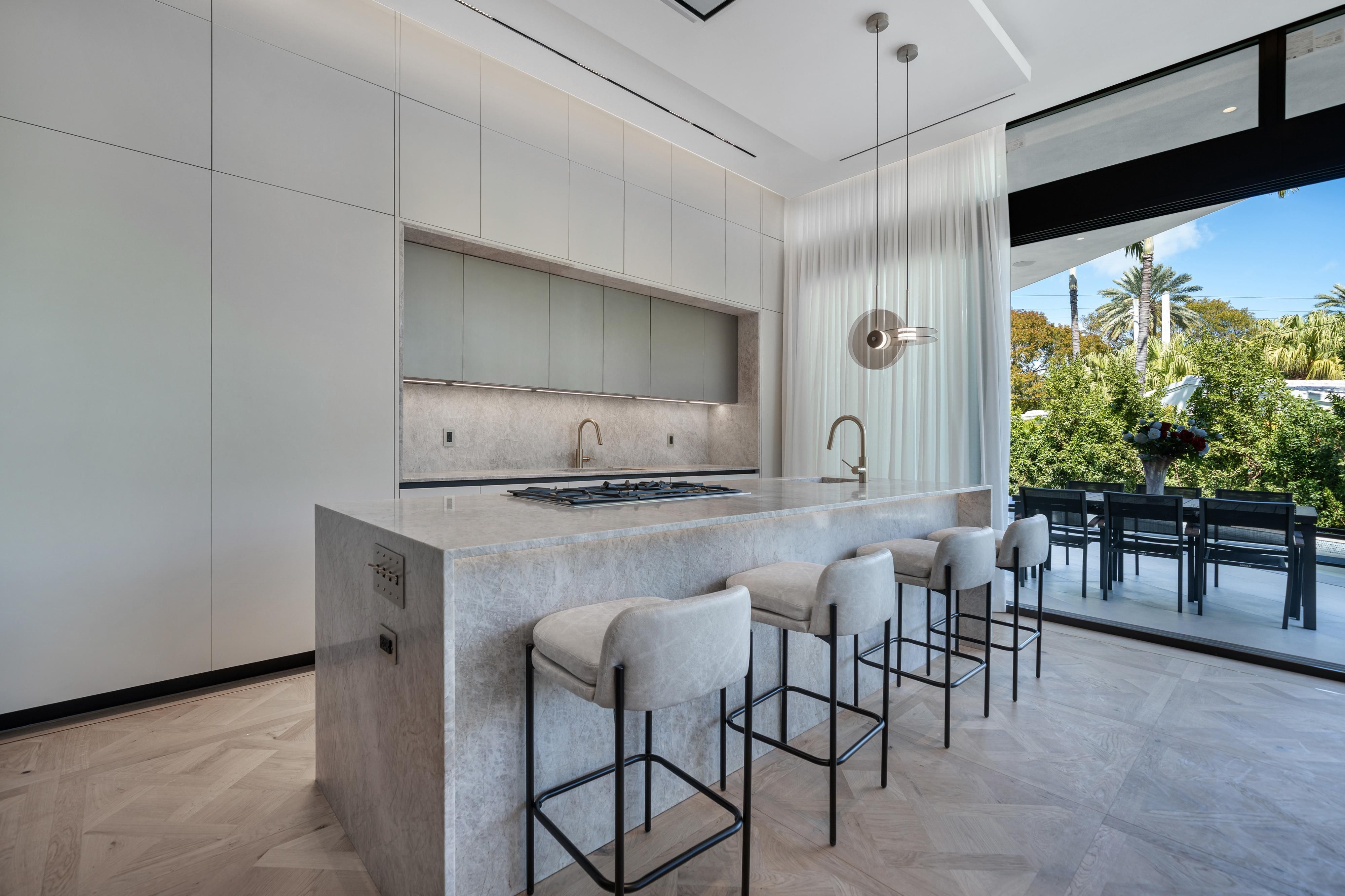 This record-setting new construction in Miami Beach is defined by exceptional design and obsessive attention to detail, an approach that earned recognition from the International Property Awards for Architecture and Development. This residence is a sophisticated blend of European refinement, global architectural intelligence, and Miami Beach modernity. This property transcends traditional luxury and stands as a truly international work of art. Perfectly located on a quiet street, spanning 5,500 SF total, a 5-bedroom, 5-bathroom smart home Features Floor-to-Ceiling glass, private terraces in each room, a rooftop terrace, a private elevator, Summer kitchens, and sun-filled interiors that create an inviting, airy atmosphere while opening to the pool and outdoor living areas with " Zen" landscaping. Italian designer kitchen features top-tier appliances (Gaggenau) and custom cabinetry. European stone, Versailles-pattern wood floors, and curated architectural details elevate every space with timeless style. Enjoy the convenience of a private elevator, spa-inspired bathrooms, spacious bedroom suites with a private terrace in each room and integrated smart home. A stunning rooftop terrace offers panoramic views, perfect for sunset cocktails or relaxed evenings under the stars. Additional features include a two-car indoor garage with a charging station, driveway + street parking. This is more than a home, it’s a refined Miami Beach lifestyle. Minimum rental period: 1 month. No pets allowed