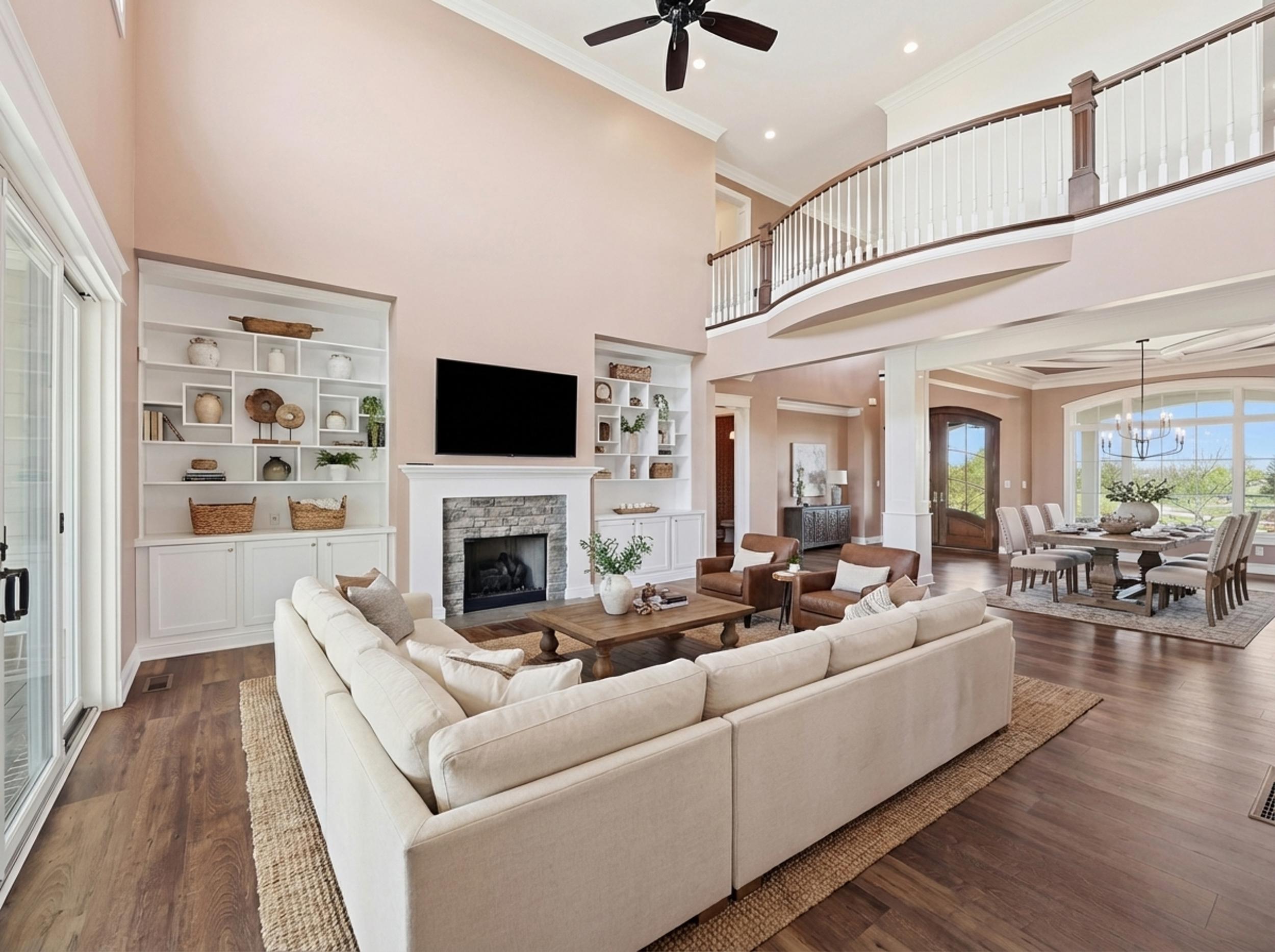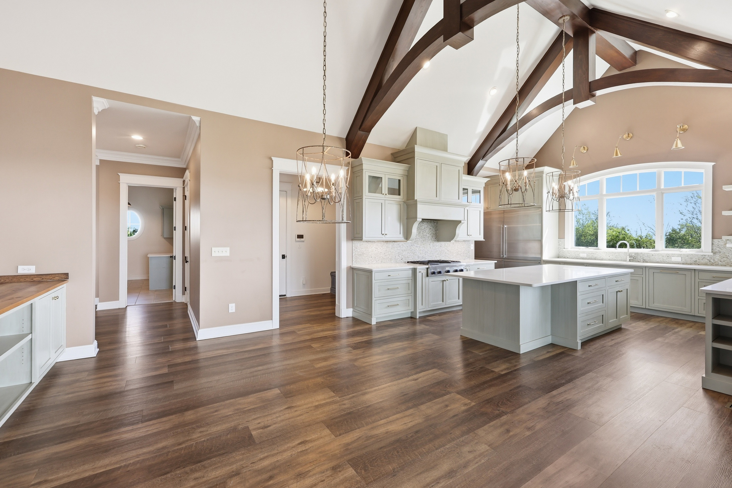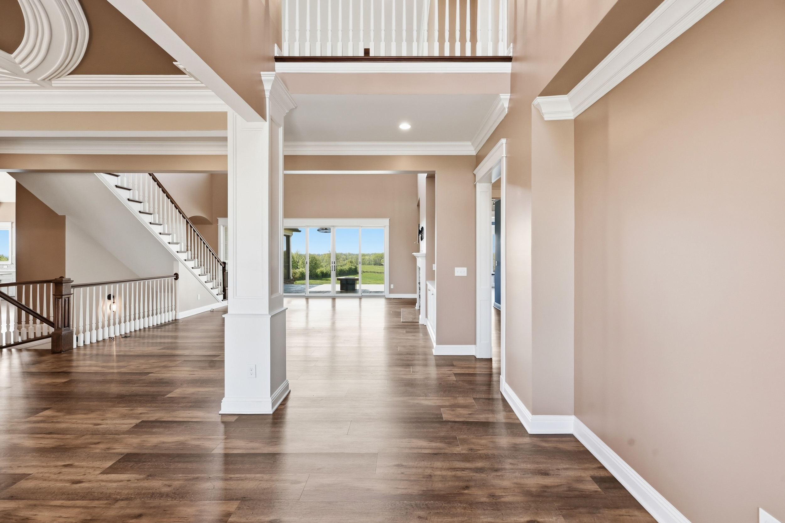 Exceptional custom home by Jimmy Nash Homes set behind a gated entrance on 10+ acres in Lexington. Positioned high on a ridge, the property enjoys breathtaking panoramic views and a beautifully elevated setting. The home offers 3 bedrooms and 3.5 baths, including a main-level primary suite with a spa-inspired en suite featuring a stunning copper soaking tub and beautifully designed his-and-her closets. The vaulted gourmet kitchen is both refined and functional, showcasing Thermador appliances, double ovens, and an oversized walk-in pantry, seamlessly opening to thoughtfully designed living spaces and an impressive laundry room. The second floor includes two additional bedrooms, two full baths, and a spacious flex room ideal for office, studio, or media use. The full unfinished basement provides over 1,400 sq ft and is roughed in for a bathroom and kitchen, with framing in place for an additional bedroom—offering excellent future potential. Outdoor features include a decorative front pond, greenhouse, and a charming small barn for animals or storage. Epoxy-floored garage. Approximately 4,400 sq ft finished. A distinctive property defined by craftsmanship, setting, and exceptional views.