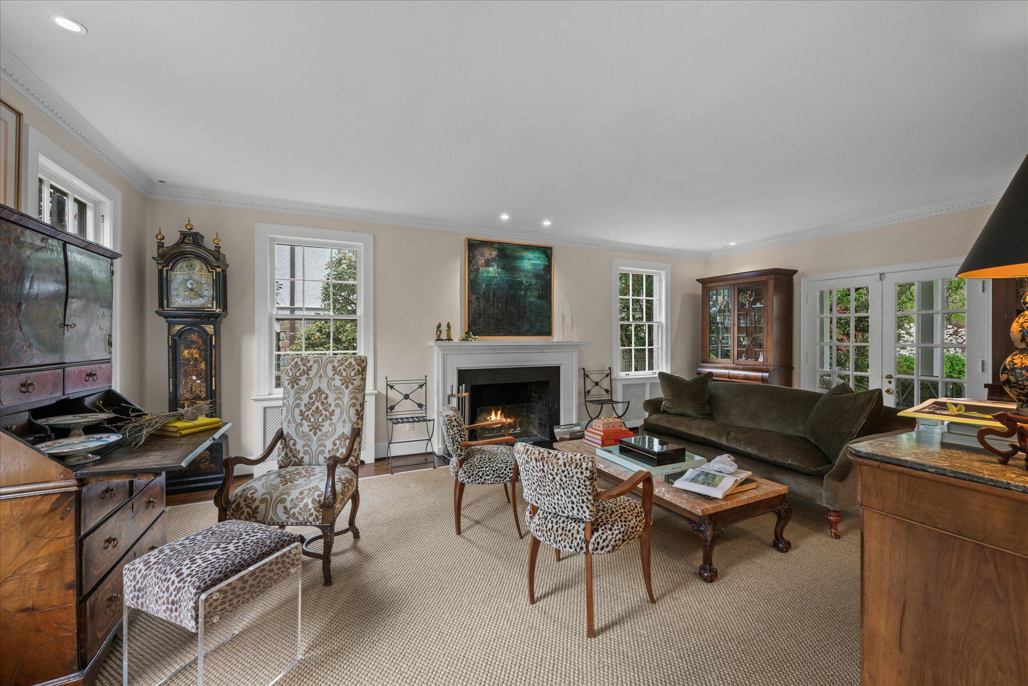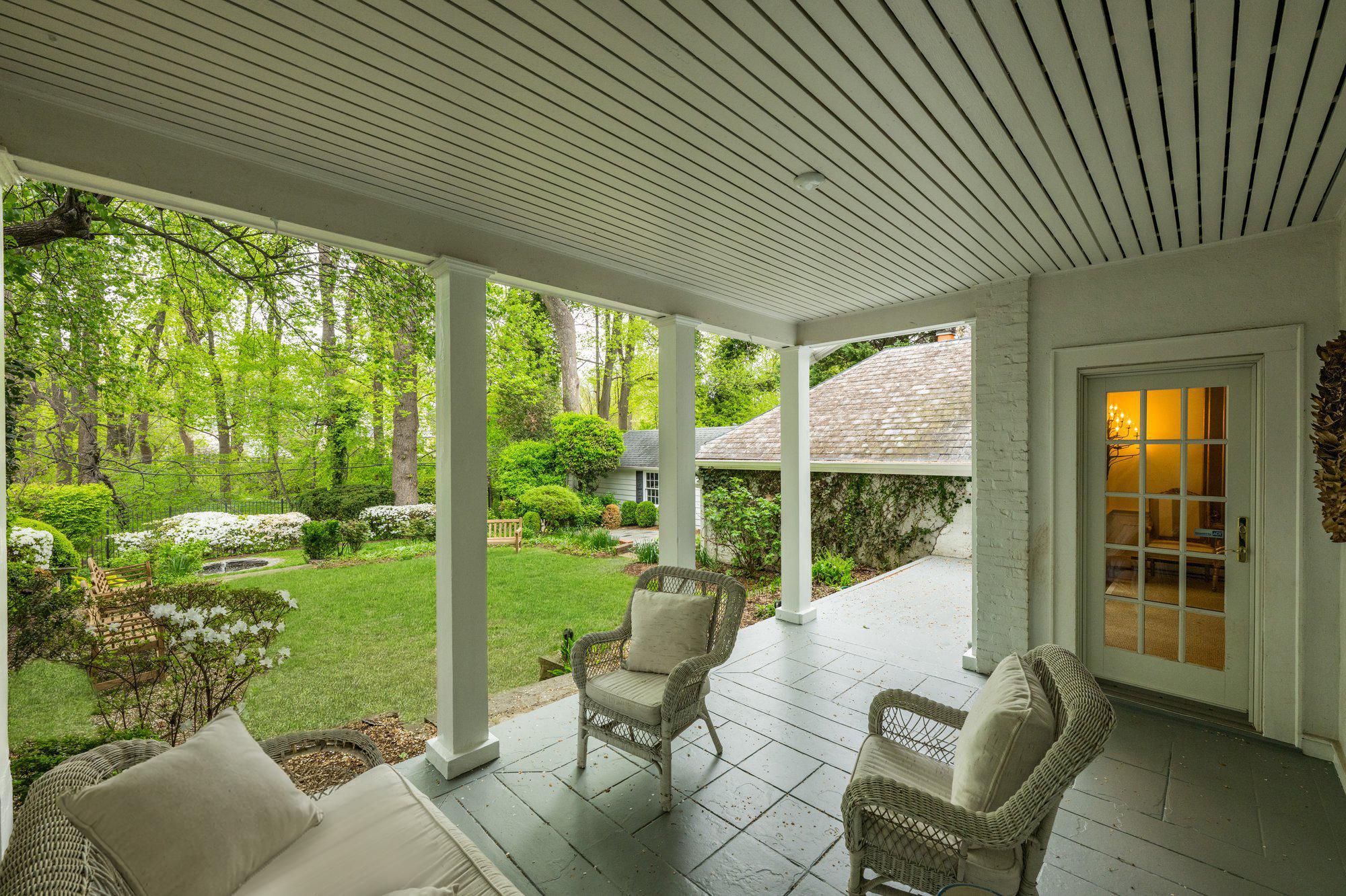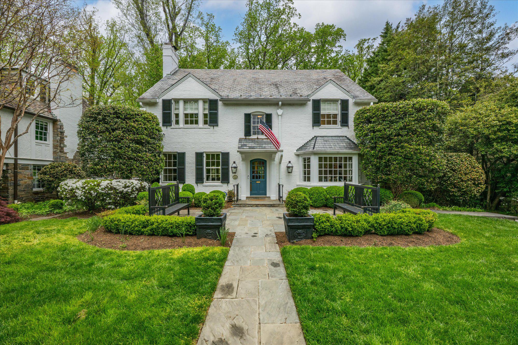 On one of Spring Valley’s most coveted streets, 4923 Hillbrook Lane backs directly to Spring Valley Park, offering a serene setting defined by exceptional privacy, lush views, and remarkable scale. Designed for both gracious entertaining and comfortable everyday living, this elegant 5BR/3BA/2HBA residence offers over 5,300 square feet across four levels.The main level features a welcoming foyer, a formal living room with fireplace, an elegant dining room, a spacious kitchen, a family room with fireplace, and a separate sitting room or office, along with direct access to a covered patio for seamless indoor-outdoor living. Upstairs, the private primary suite serves as a peaceful retreat with its own bath and walk-in closet. Three additional bedrooms and a shared bath complete this level, including one bedroom with access to a private porch overlooking Spring Valley Park. The second upper level offers wonderful flexibility for guests, remote work, or creative pursuits, while the lower level adds practical utility with generous storage, laundry, and abundant space for future customization. A private driveway, detached two-car tandem garage and private rear garden further elevate the property’s appeal, offering rare outdoor tranquility in the heart of the city. The expansive, flat backyard is a true sanctuary, with sweeping lawn space, mature plantings, and multiple areas for seating, play, and entertaining. Just moments from Spring Valley favorites such as Millie’s, Compass Coffee, and neighborhood conveniences, 4923 Hillbrook Lane NW offers a rare blend of location, scale, and timeless appeal—an elegant residence designed for refined living in one of Washington’s most desirable communities. Welcome home!