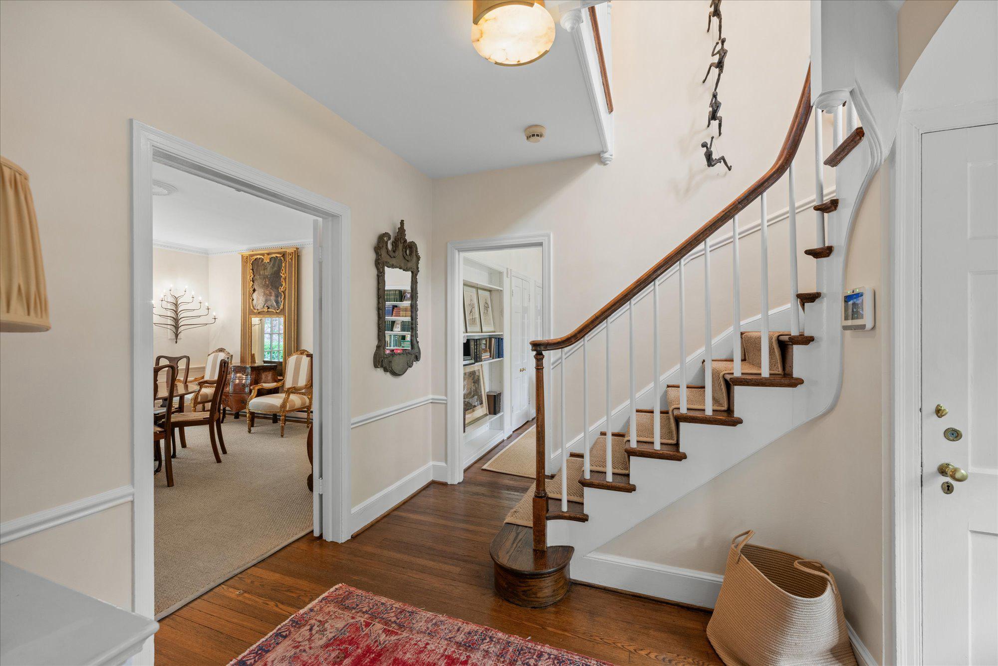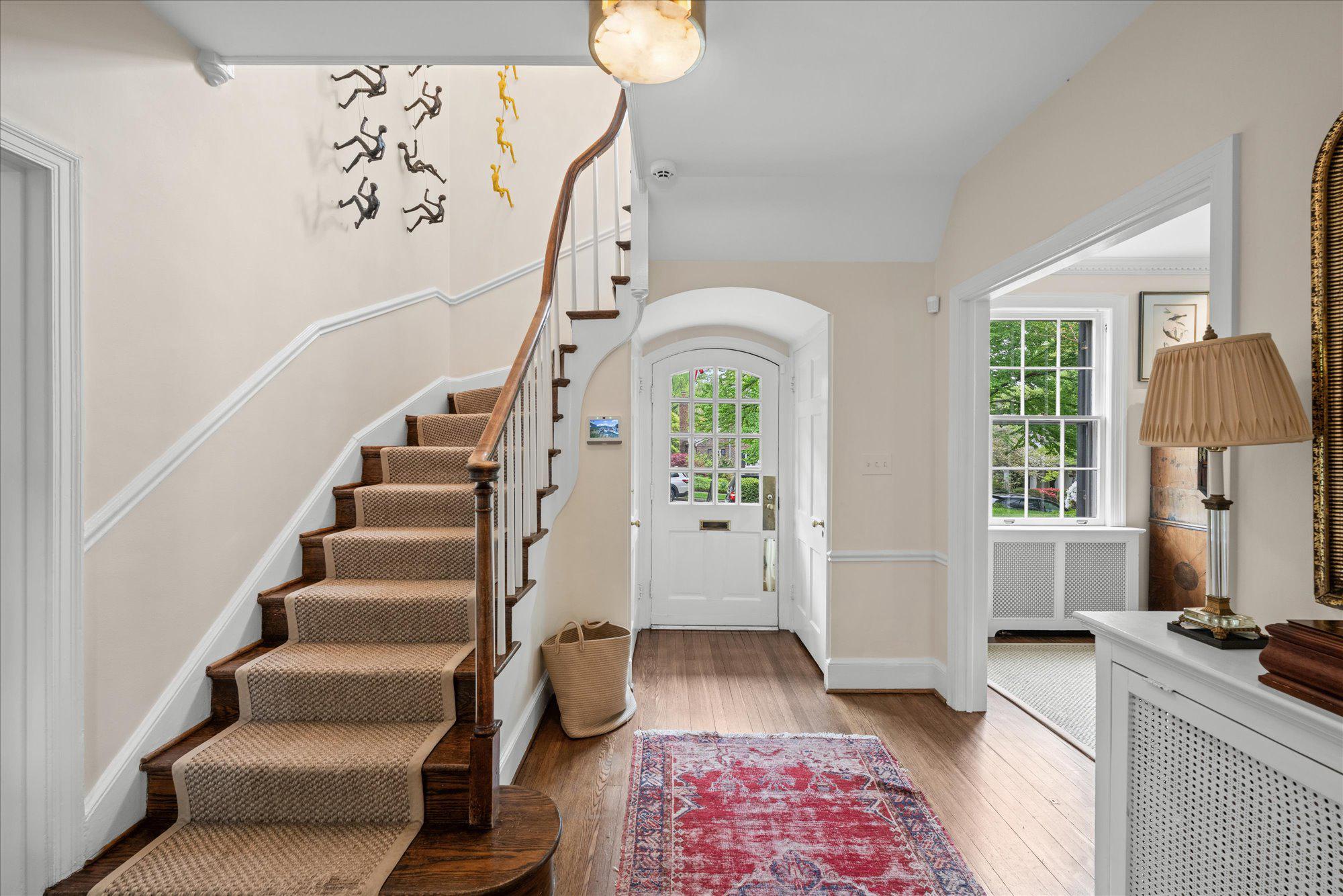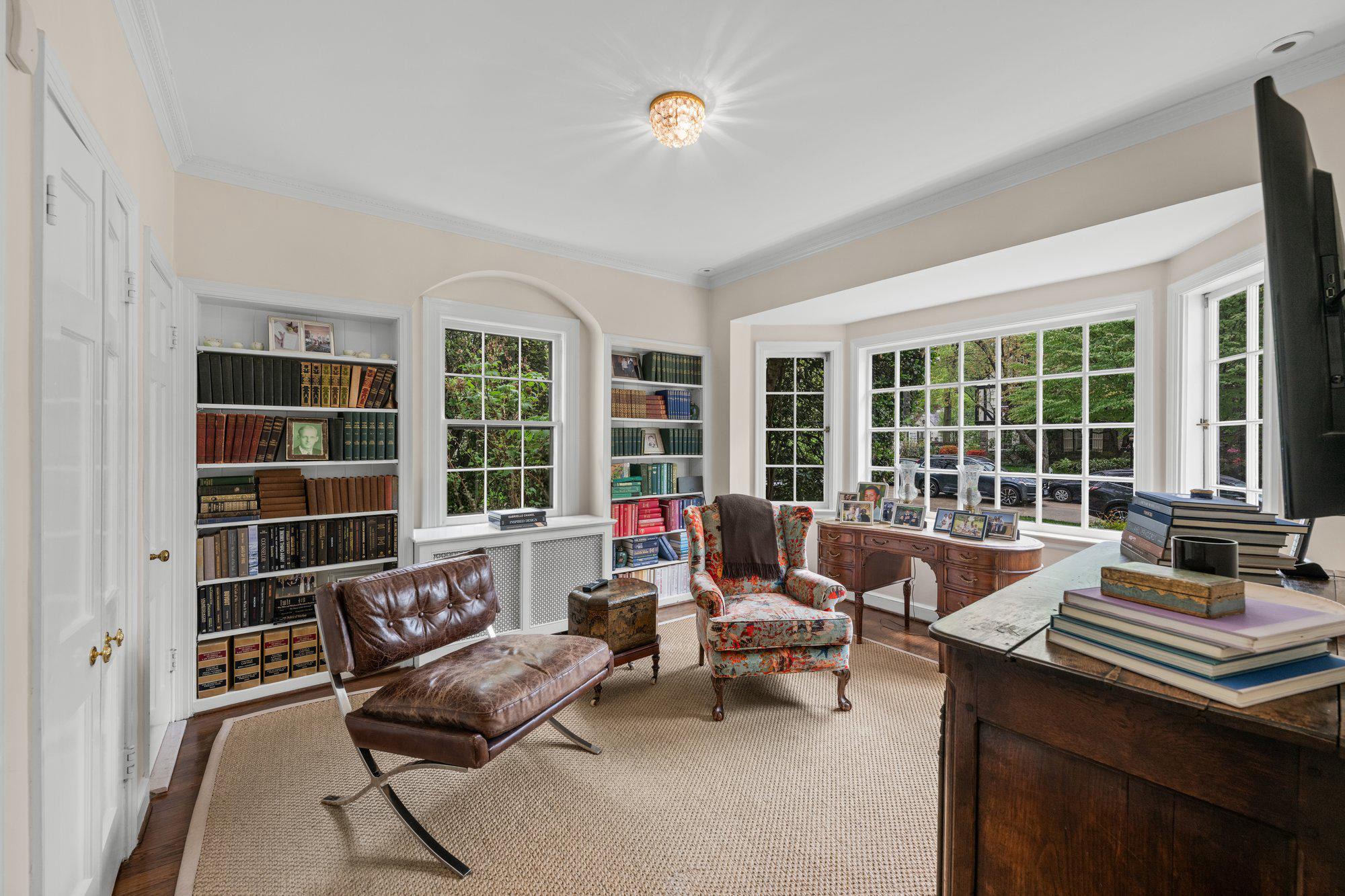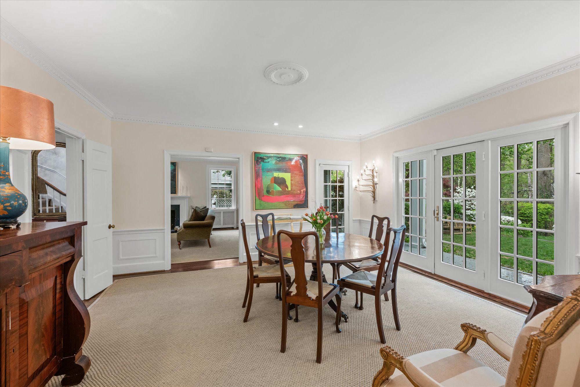 On one of Spring Valley’s most coveted streets, 4923 Hillbrook Lane backs directly to Spring Valley Park, offering a serene setting defined by exceptional privacy, lush views, and remarkable scale. Designed for both gracious entertaining and comfortable everyday living, this elegant 5BR/3BA/2HBA residence offers over 5,300 square feet across four levels.The main level features a welcoming foyer, a formal living room with fireplace, an elegant dining room, a spacious kitchen, a family room with fireplace, and a separate sitting room or office, along with direct access to a covered patio for seamless indoor-outdoor living. Upstairs, the private primary suite serves as a peaceful retreat with its own bath and walk-in closet. Three additional bedrooms and a shared bath complete this level, including one bedroom with access to a private porch overlooking Spring Valley Park. The second upper level offers wonderful flexibility for guests, remote work, or creative pursuits, while the lower level adds practical utility with generous storage, laundry, and abundant space for future customization. A private driveway, detached two-car tandem garage and private rear garden further elevate the property’s appeal, offering rare outdoor tranquility in the heart of the city. The expansive, flat backyard is a true sanctuary, with sweeping lawn space, mature plantings, and multiple areas for seating, play, and entertaining. Just moments from Spring Valley favorites such as Millie’s, Compass Coffee, and neighborhood conveniences, 4923 Hillbrook Lane NW offers a rare blend of location, scale, and timeless appeal—an elegant residence designed for refined living in one of Washington’s most desirable communities. Welcome home!