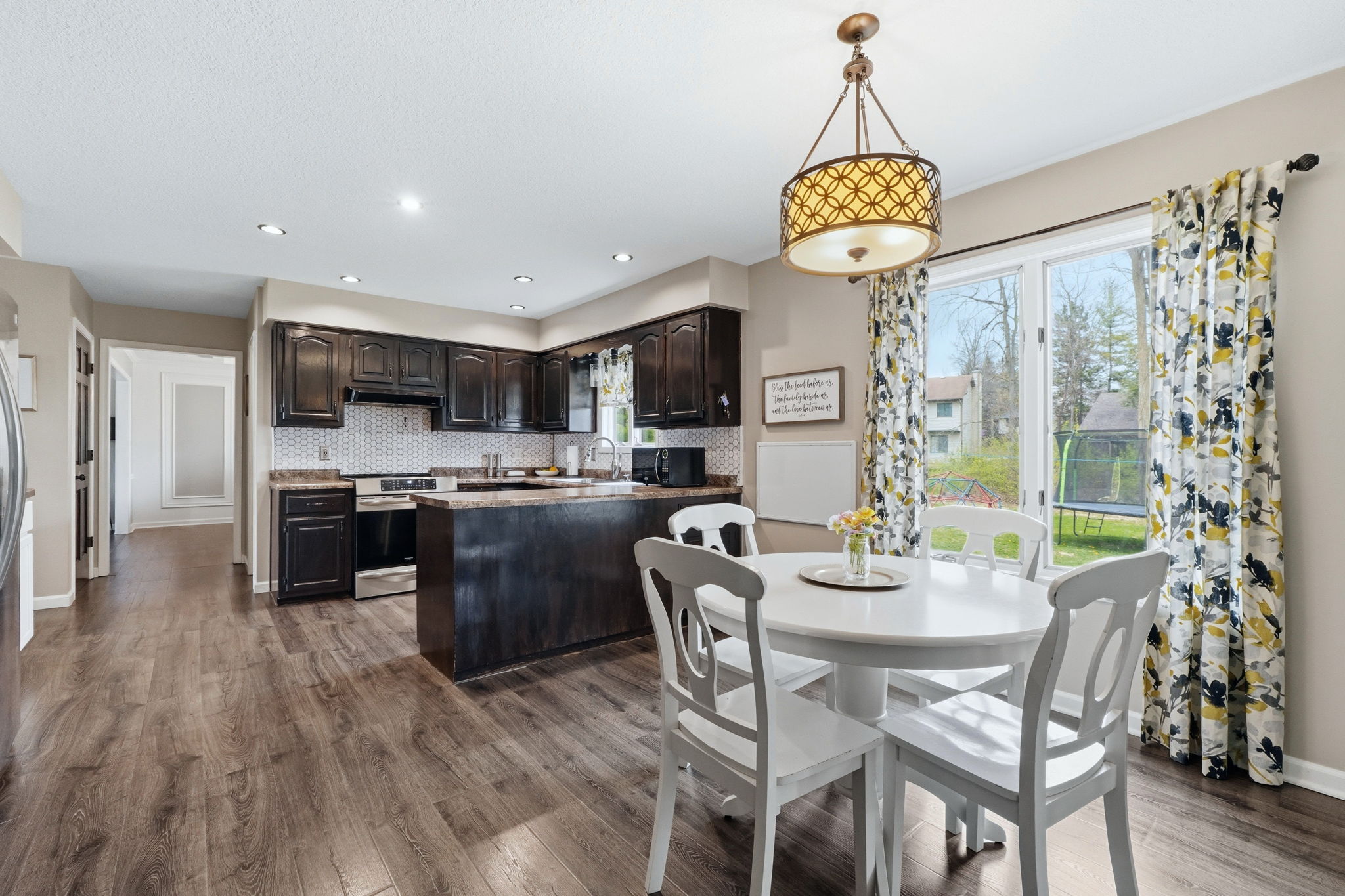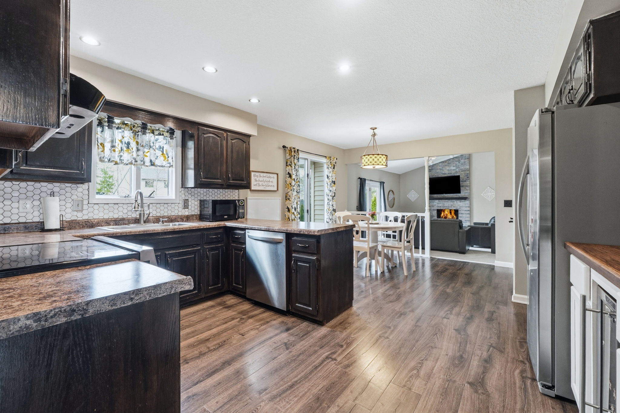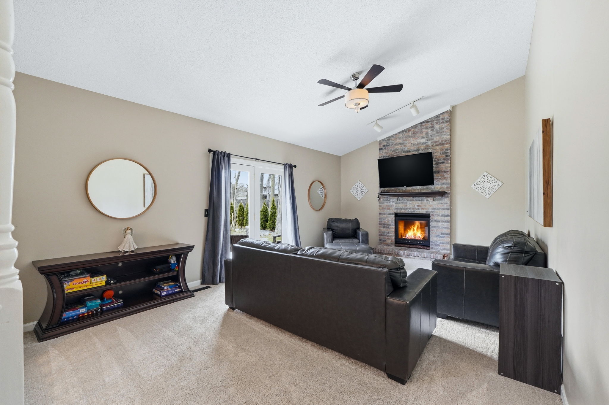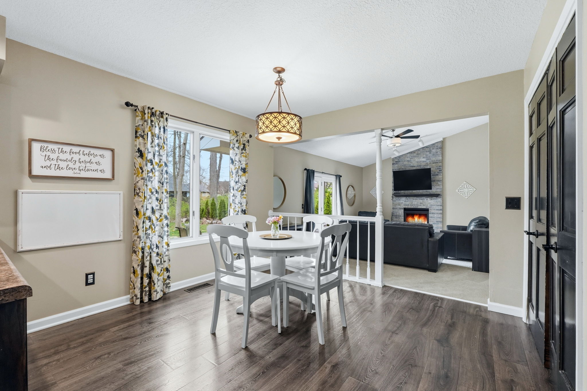 Beautiful 4 bedroom home on a finished basement, tucked away on a quiet cul-de-sac street in desirable Homestead Schools! The curb appeal immediately stands out with lime-washed brick, updated vinyl siding, new cedar posts, modern lighting, an insulated garage door, & fresh landscaping, all creating a warm, inviting first impression! Step inside under the covered front porch and you’re welcomed by a spacious laundry/mudroom featuring tiled flooring, utility sink, built-in cabinetry, & a folding station, both functional & convenient. The main floor offers multiple living areas, including a front family room that flows into the formal dining space, all accented by vinyl flooring. The kitchen connects seamlessly, complete with tiled backsplash, abundant cabinetry, & stainless steel appliances that remain. A breakfast nook provides an additional dining area & opens to a second large living room featuring a floor-to-ceiling brick fireplace & sliding door to access the backyard patio. Upstairs, the expansive primary suite includes a walk-in closet & private en-suite with dual vanities. Three additional bedrooms share a full bath. The finished basement offers incredible flexibility with three separate living areas, perfect for a rec room, home gym, office, or play space! Enjoy the outdoors on the patio overlooking the large backyard filled with mature trees, offering both privacy & a peaceful setting. Located in Covington Place with sidewalks throughout & convenient access to Lutheran Hospital, top-rated schools, shopping, dining, & I-69, this home checks all the boxes!
