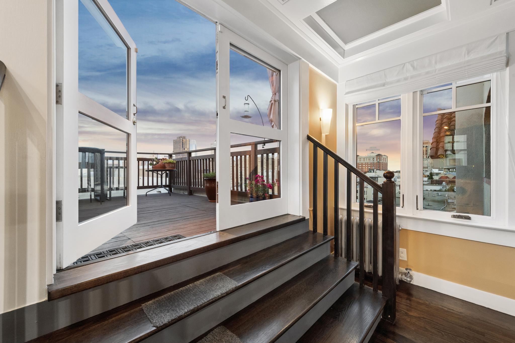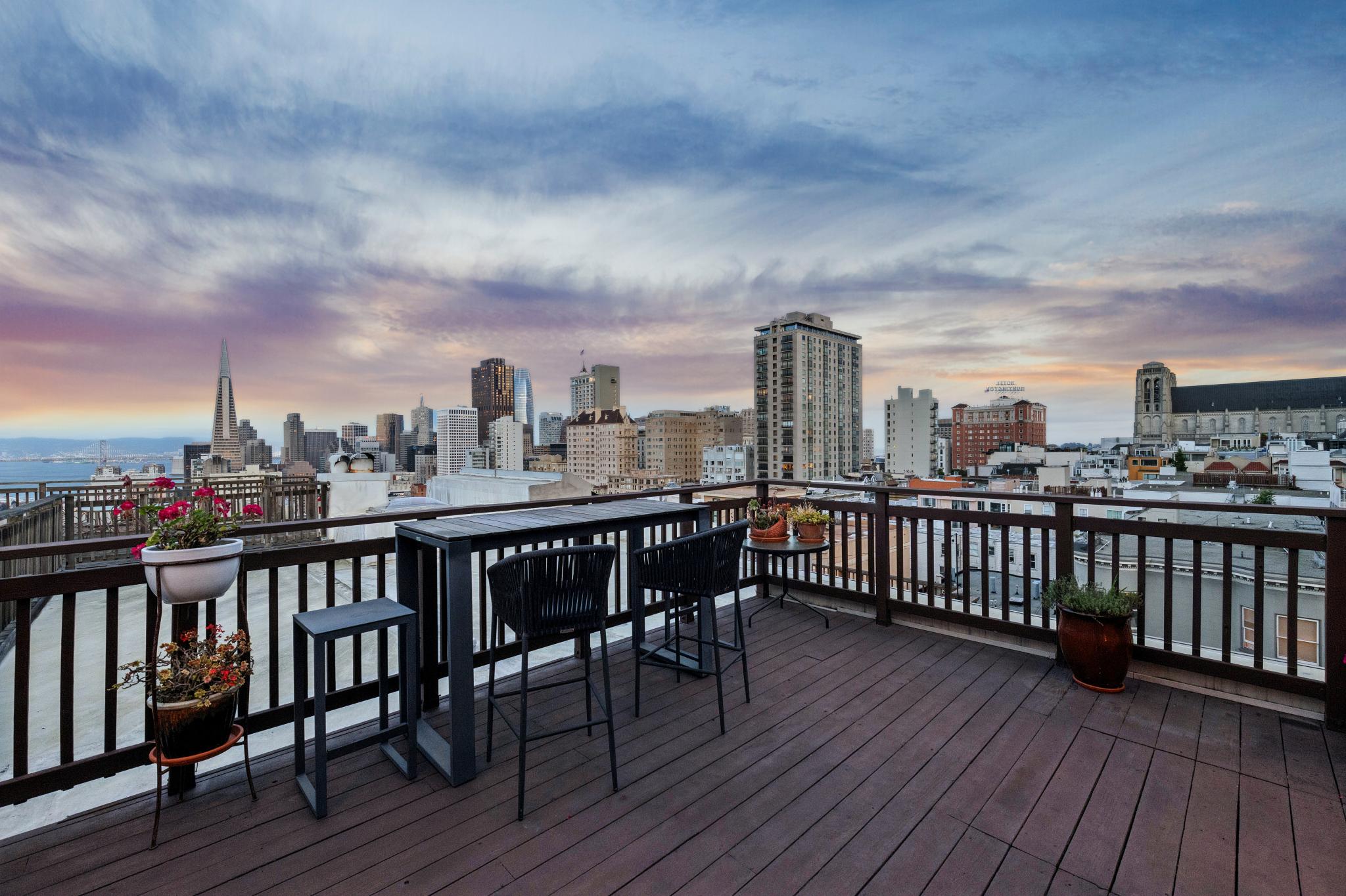 Coming Soon - Coming Soon! Renovated Nob Hill top floor condo with landmark San Francisco views! This exceptional penthouse condo offers a rare, beautifully renovated, view-oriented home in one of Nob Hill's most desirable locations, in a classic Spanish Mediterranean-style walk-up building. The condo features sweeping panoramic views encompassing downtown SF, Transamerica Pyramid, the Bay and Bay Bridge, Coit Tower, and Grace Cathedral, providing a dramatic and ever-changing backdrop from the main living spaces and private deck. The layout includes three bedrooms and two full baths, complemented by a well-appointed kitchen featuring quartz counters, a center island with dining, and premium appliances, along with a custom bar and wine refrigerator. The kitchen is open to the dining area and its incredible view deck. The spacious living room is anchored by a black granite wood-burning fireplace and oriented to capture the views. Interior finishes include custom lighting, updated plumbing, electrical, and data infrastructure, and a refined bath design with a soaking tub, Grohe fixtures, and Italian tile. Additional features include in-unit laundry, dedicated storage, and the large deeded deck that extends the living space outdoors and showcases stunning landmark views. In addition, the building has a shared roof deck with iconic panoramic views. Leased parking nearby.