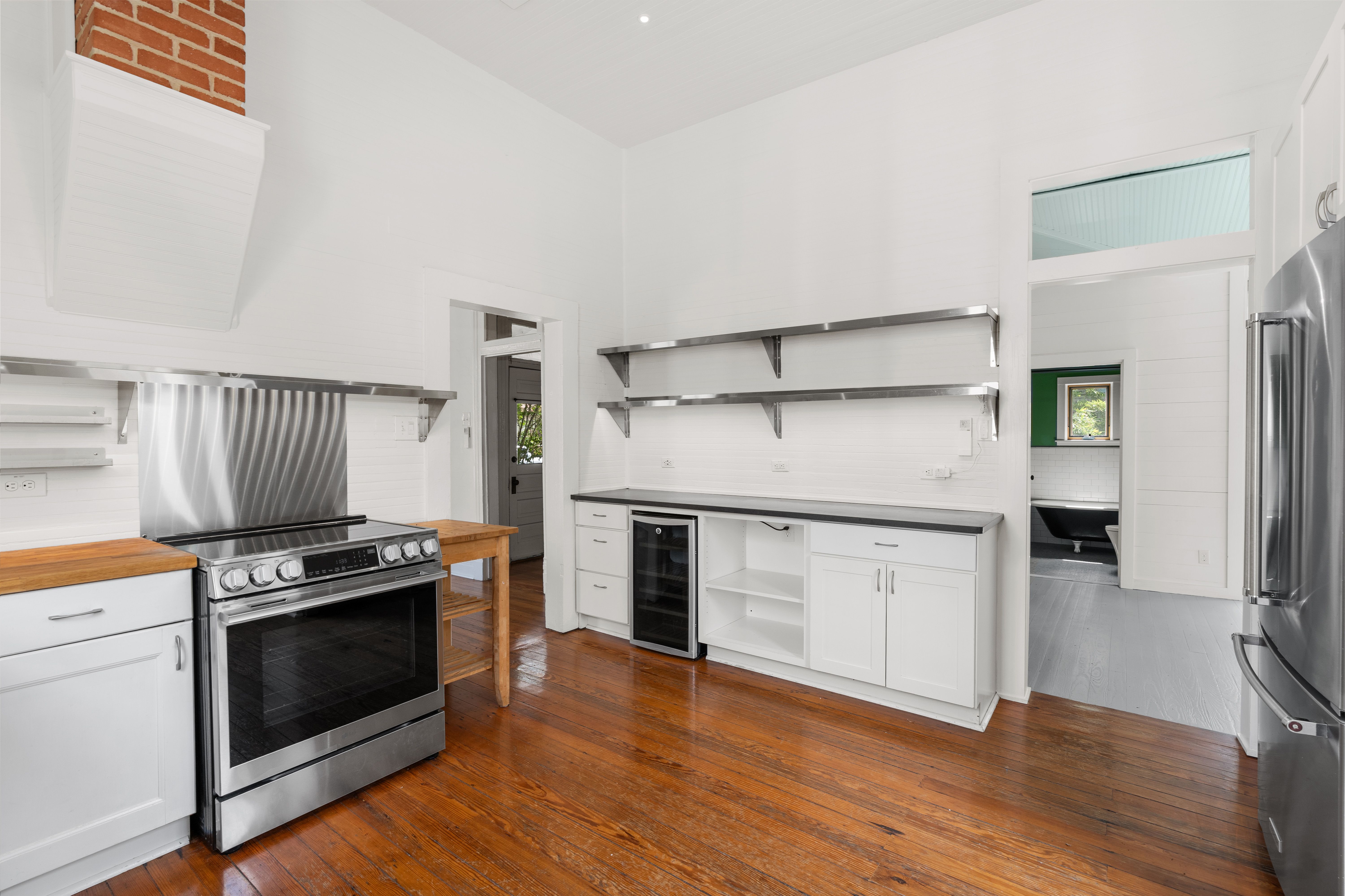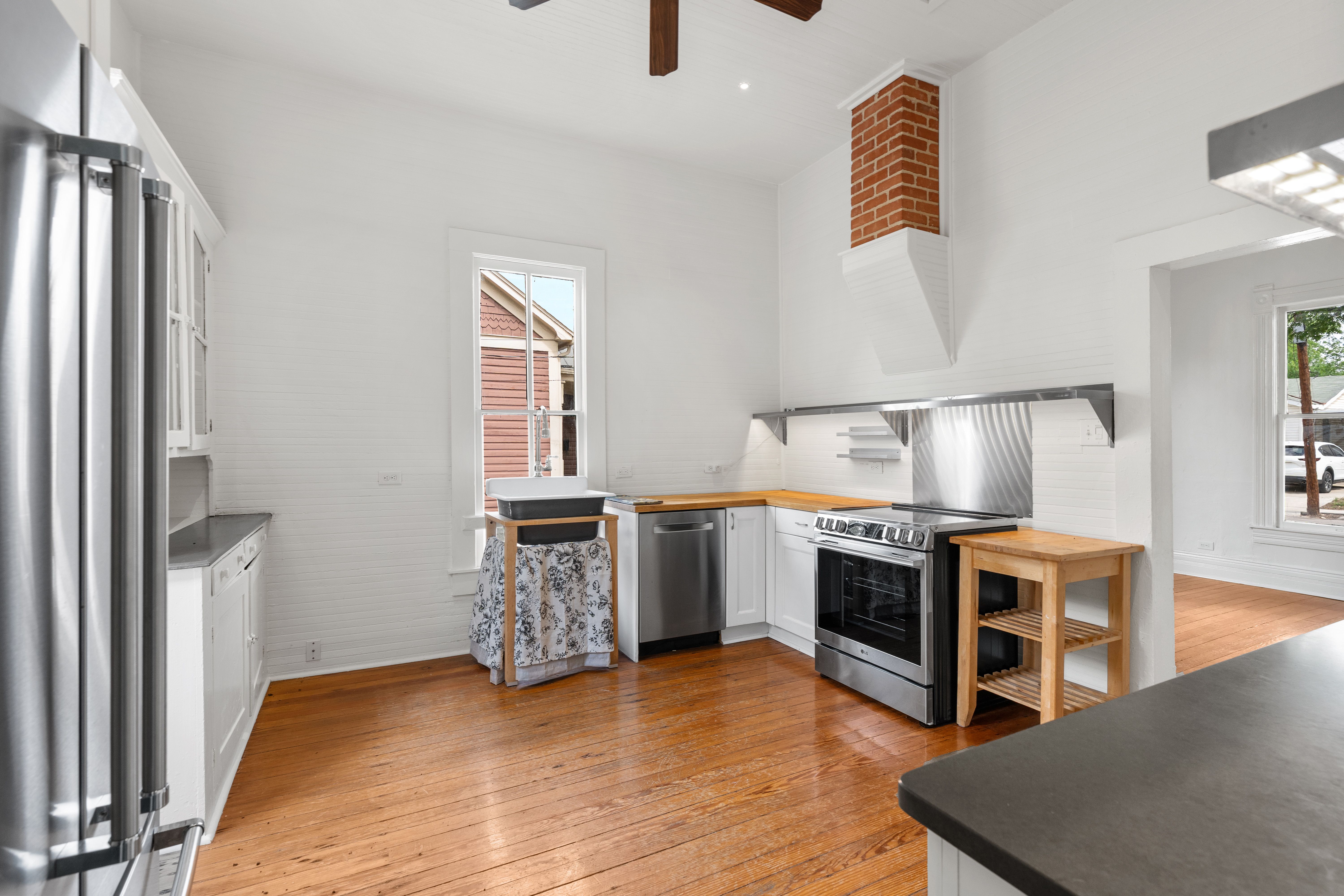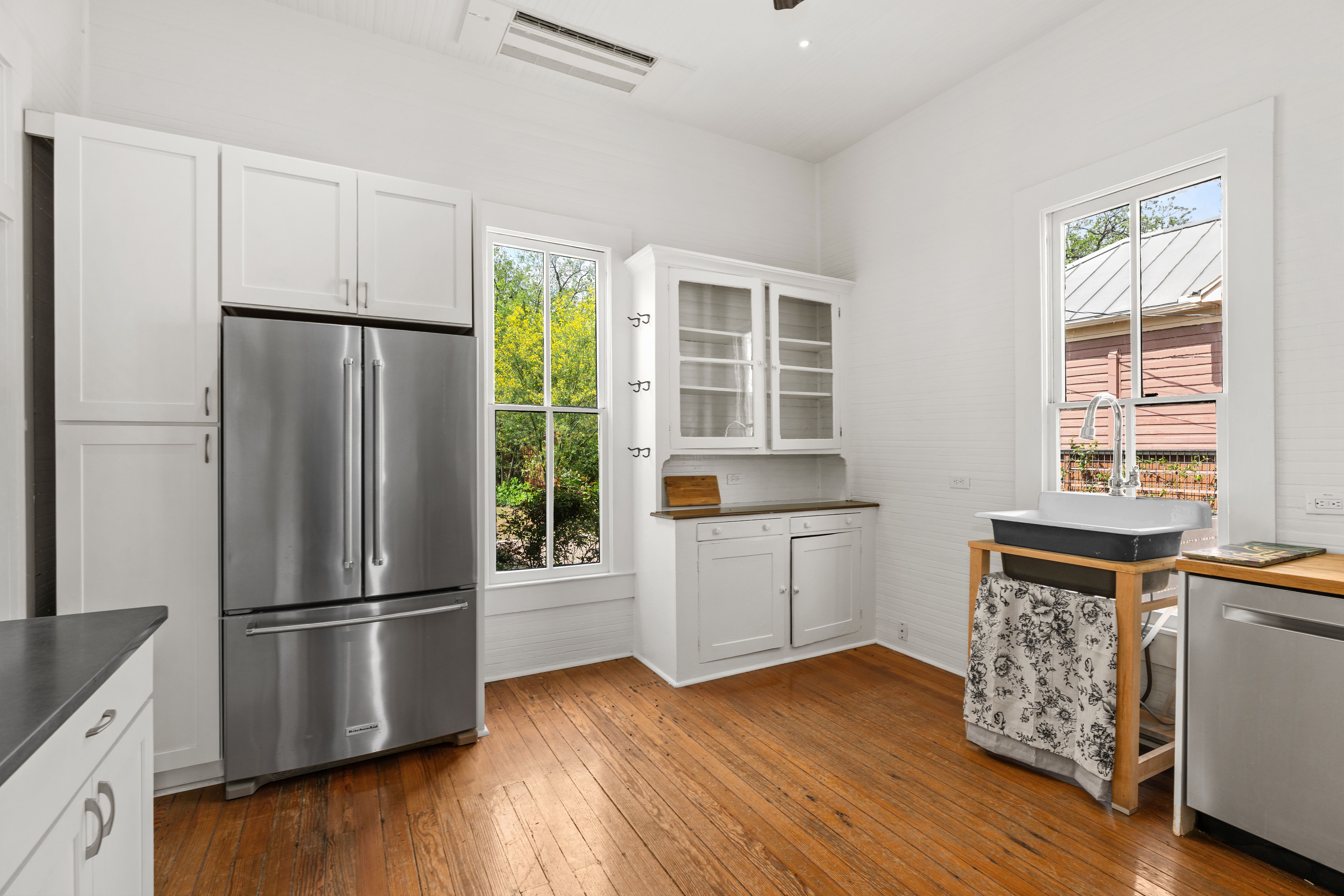 Lavaca Historic District home at its finest; restored historic home with modern conveniences and energy efficient upgrades. Original hardwood floors, high ceilings, large open kitchen with new stainless steel induction range, dishwasher, and fridge and a super cute work since with a twist! Two bedrooms / two updated bathrooms, large open porches, living room, and a large dining area surrounded by open decks and nature provide a lovely gathering place. Primary bedroom has a really cool loft for storage. Updated primary bath has heated floors and a roll in shower. AND to top it off, a very cool additional building for guests, office or STR with kitchenette and bath. There is a spacious storage shed or workshop for someone who likes to tinker. Close to everything Southtown has to offer - fabulous restaurants, bars, cultural spots, downtown, and more!