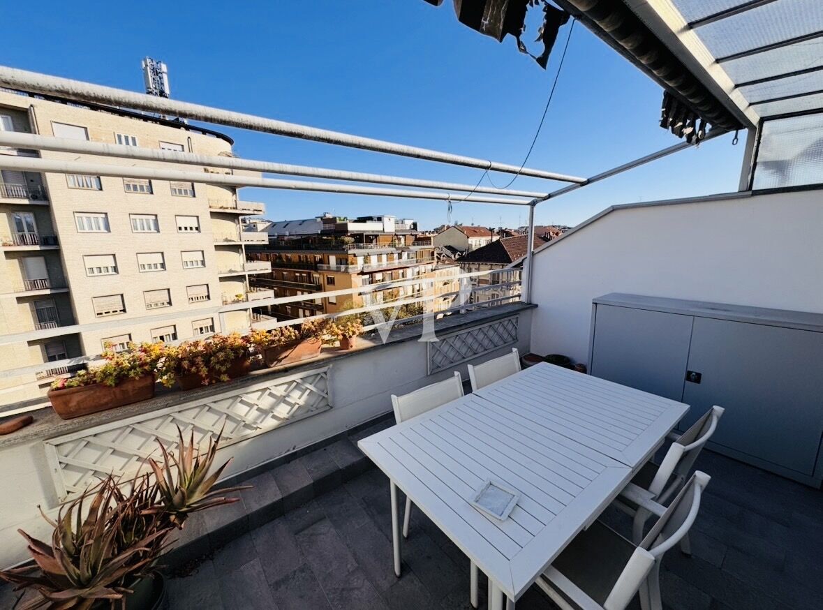 OPEN HOUSE ON SATURDAY 09/05/2026 - 9:30 A.M.-12:00 P.M.RESERVE YOUR PLACE TO VIEW THE PROPERTYIn Turin, in the heart of the prestigious Crocetta and in one of the most elegant and sought-after residential contexts of Turin, we offer for sale on the top floor a refined penthouse with beautiful terrace recently renovated with high-level finishes, located in the elegant Corso Alcide De Gasperi.The property stands out for its brightness, quality of space and charming open views, with suggestive views of the Mole Antonelliana and the Alpine Arch.The entrance leads to a large living room embellished with large windows that enhance access to the terrace, an outdoor space ideal for moments of relaxation, reading or conviviality outdoors overlooking the rooftops of the city.The kitchen, open but with its own habitability although communicating with the living room, is bright and is equipped with a compartment that can be used as a storage room where the washing machine is located.The sleeping area consists of two generous bedrooms: the first equipped with an exclusive bathroom, the second with a walk-in closet. Both have French windows overlooking the interior balcony with views of the Alpine Arch.Finishing the floor is the modern bathroom accessorized with sink, toilet and walk-in shower.The apartment enjoys bi-color Pvc triple-glazed window frames, features solid wood parquet flooring throughout, custom-made closets and refined interior design details.Air conditioning, independent heating and alarm system complete the property.The building, recently upgraded in the facades and roofing, retains the architectural merit typical of the Crocetta, a neighborhood symbolic of Turin elegance, characterized by period buildings, representative residences and high-level services.Included in the property is a large accessory room for cellar/warehouse use, of 34 square meters versatile and functional.The penthouse is located in a strategic location: convenient to Porta Nuova and Porta Susa station, the Polytechnic of Turin, the city center and all major services, stores and public transport.The solution is ideal both as a prestigious residence and as an investment with interesting profitability prospects.- Elevator- PVC triple glazed windows- Terrace- Balcony- Alarm system- Air conditioning- Walk-in shower- Solid wood parquet flooring on the entire surface- Gas central heating- Custom-made closets- Spacious cellar of 34 sqm-The location, in the heart of Crocetta, represents one of the main strengths of the property: an elegant and well-established residential neighborhood, appreciated for its quality of life and the presence of high-level services.Within walking distance of the home are supermarkets, nearby stores, restaurants, schools and all the main daily services, which can be easily reached on foot.The area is also well connected thanks to numerous public transport lines and the proximity to Porta Nuova and Porta Susa stations, as well as to the Turin Polytechnic and the city center.An ideal context for those who want to live in a quiet and elegant environment, without sacrificing convenience and proximity to major points of interest.