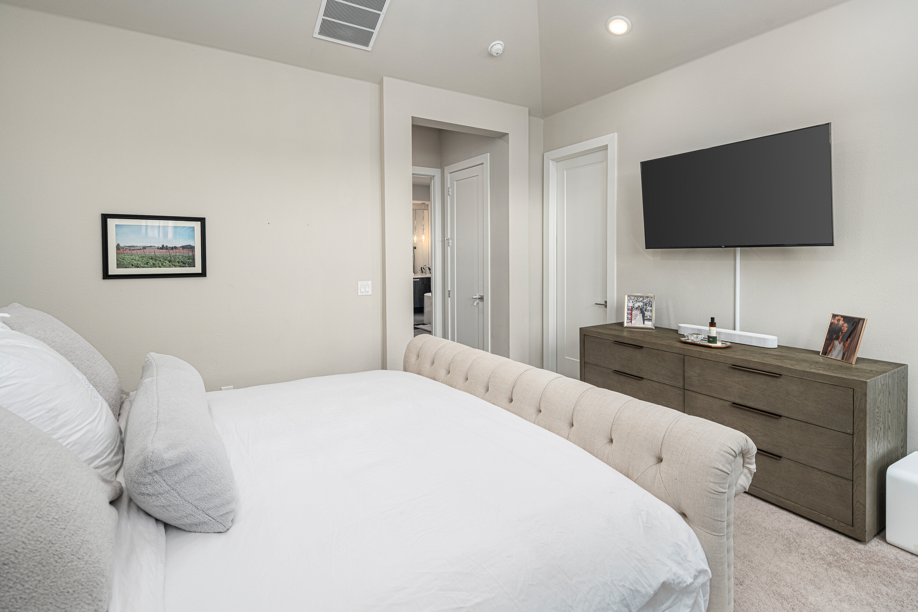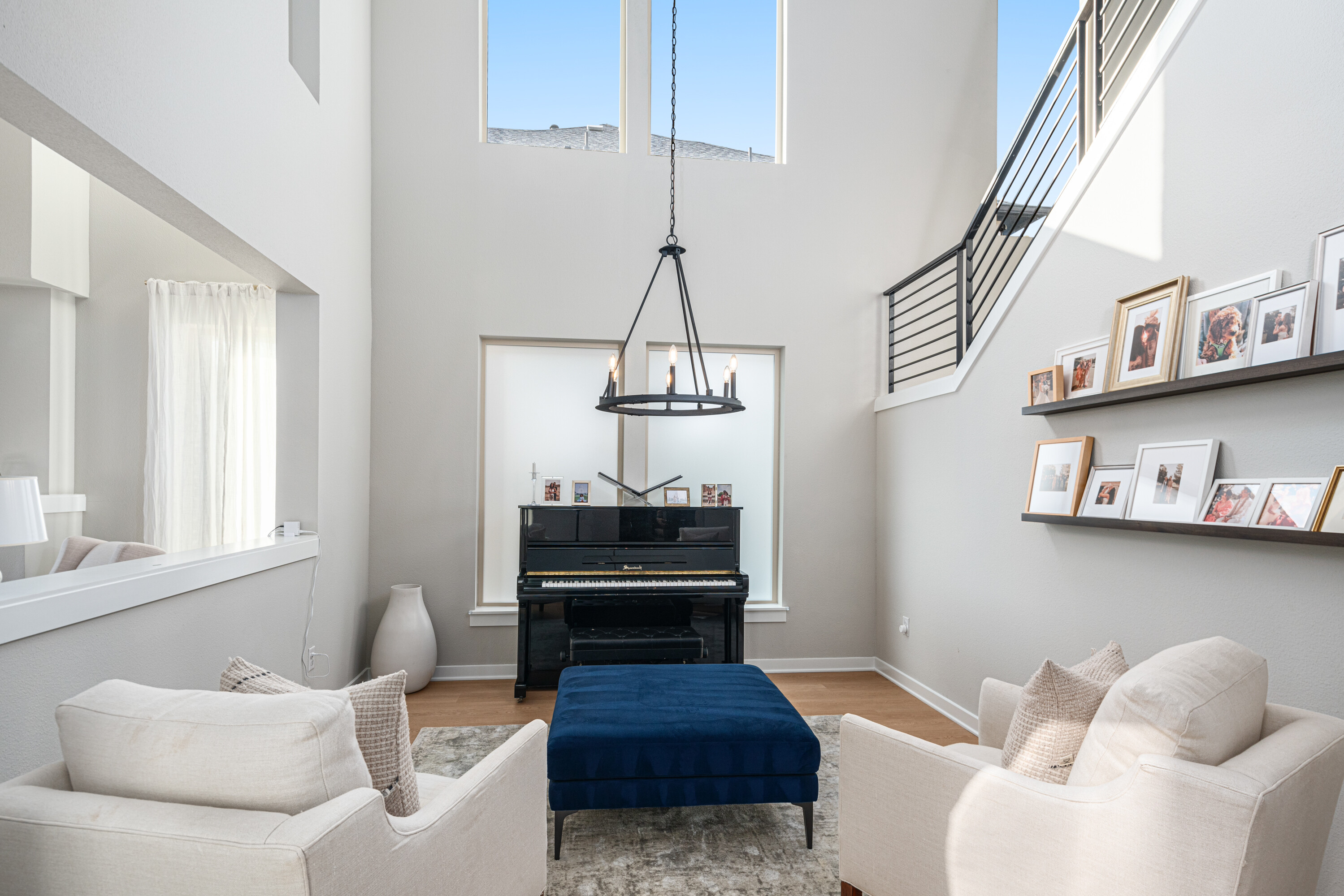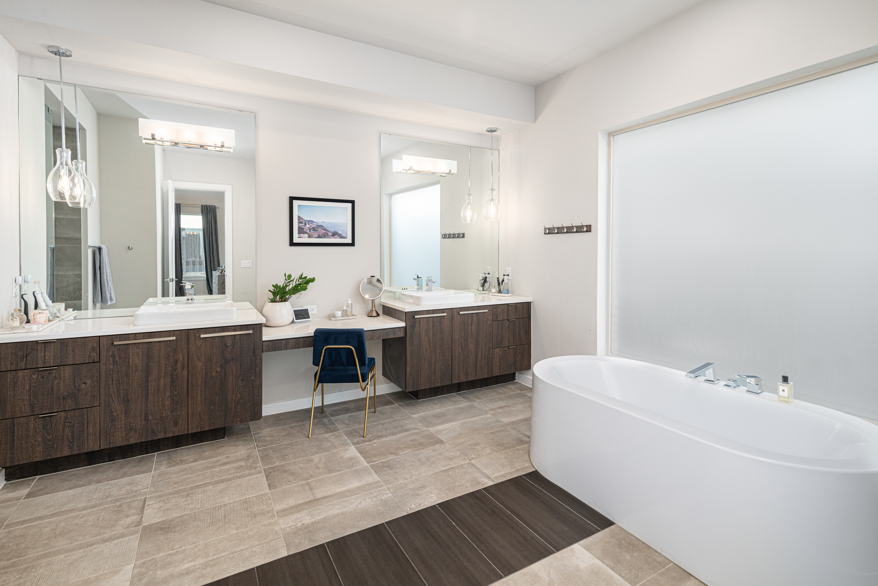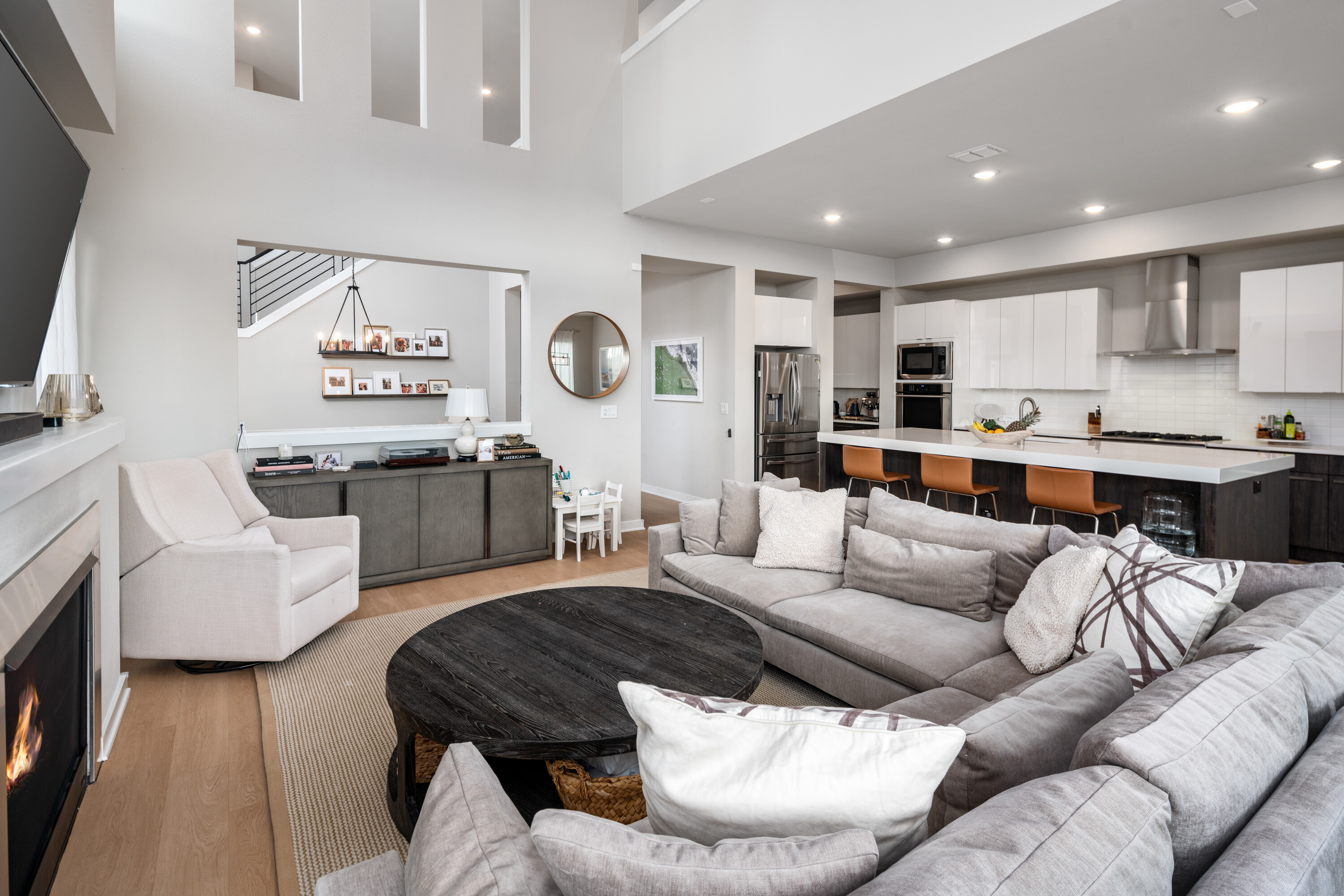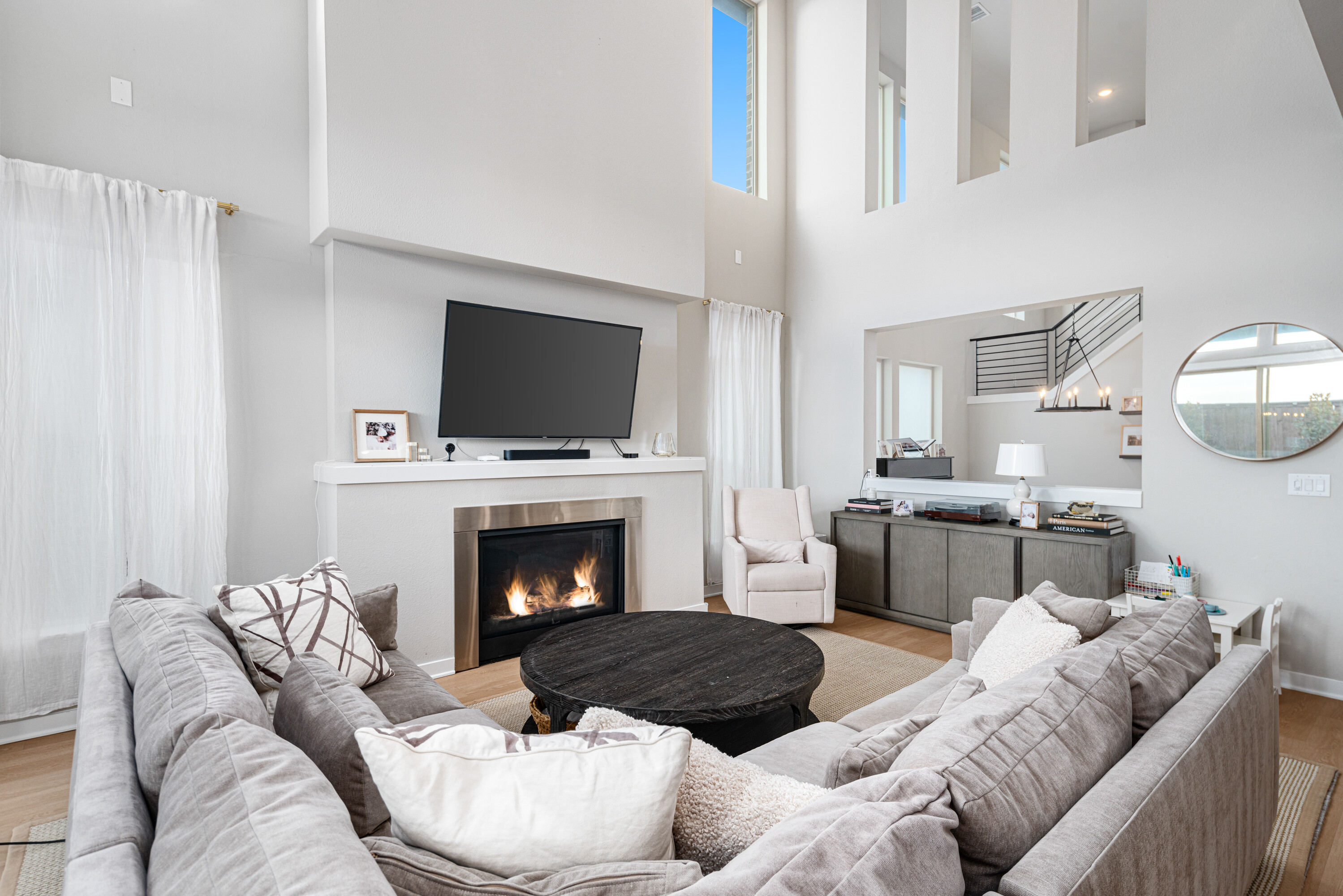 Experience modern luxury in this stunning Mainvue home in West Frisco. Designed with high ceilings and abundant windows, natural light floods every corner of the open floor plan. The sleek kitchen includes a large island, gas stove, and an eat-in dining area, ideal for casual meals. A separate dining room adds elegance for formal gatherings. The living room, with its cozy fireplace, flows seamlessly into the kitchen and dining spaces. Two sliding glass doors open to an extended patio, perfect for indoor-outdoor living. The downstairs guest bedroom offers an easily-accessible bathroom and would make a great office space, while the primary suite boasts a spacious, beautifully designed bathroom. Upstairs, two additional bedrooms with Jack & Jill ensuites, a game room with a powder bath, and a media room provide ample space for entertaining. With its contemporary design and exceptional layout, this home is perfect for modern living. Close to The Star, Legacy West, Grandscape and easy access to major highways.