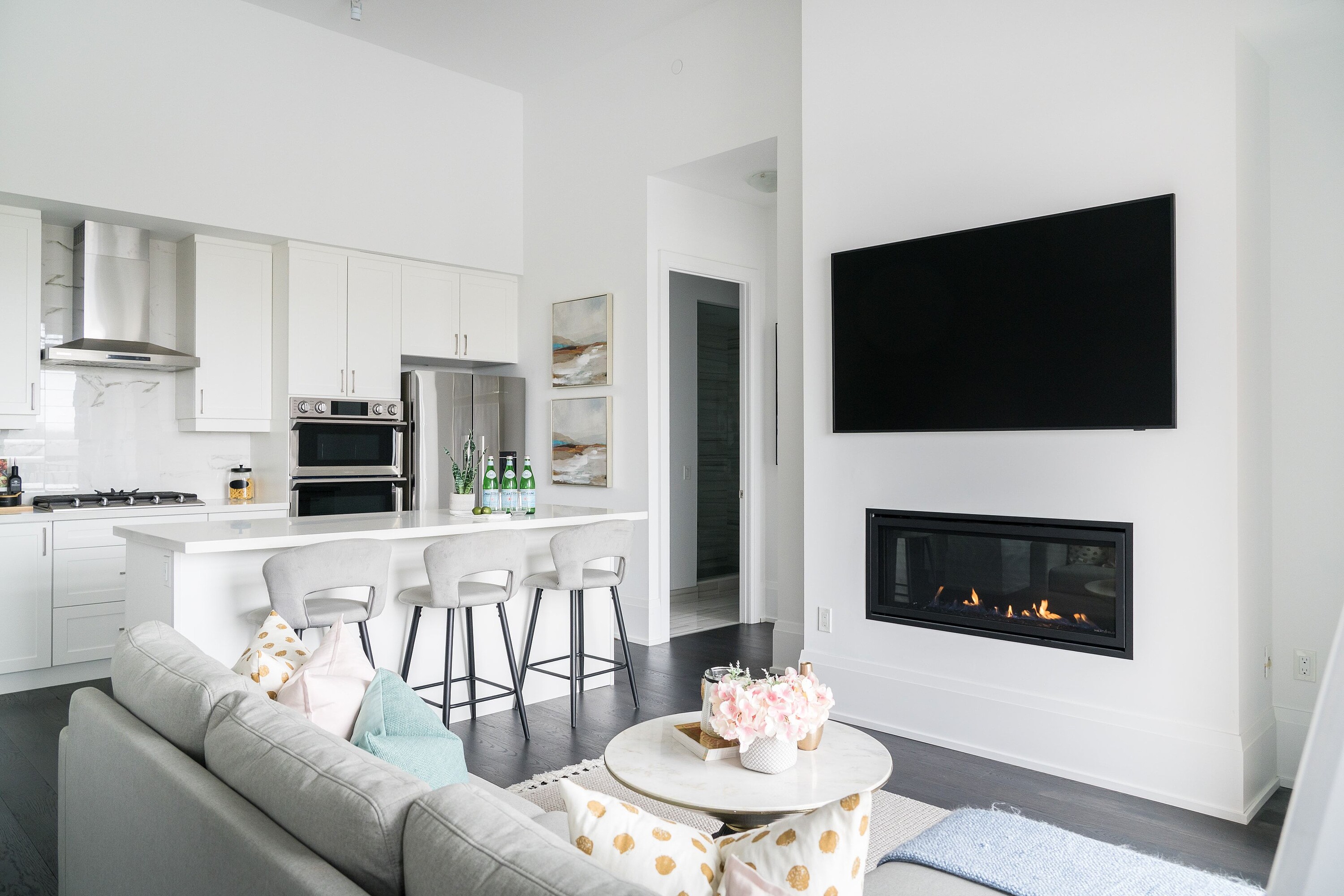 Perched atop one of downtown Collingwood's most sought-after addresses, Penthouse 10 at The Monaco is a rare offering-an exquisitely appointed two bedroom, two full bathroom residence with a study and bonus living space, embodying luxury four-season living. Offering 1,184 square feet of refined interior space plus a 140 square foot private terrace, this home blends sophisticated design, comfort, and breathtaking views, enhanced by impressive 13-foot ceilings throughout. Built by Stonebrook Developments, expansive windows showcase panoramic vistas from Blue Mountain to Georgian Bay, creating a stunning backdrop throughout the day. The open-concept living area features a chef-inspired kitchen with a seven-foot island, gas cooktop, built-in oven, and upgraded refrigeration, flowing seamlessly into the dining and living space with a sleek gas fireplace-perfect for entertaining. A bright, private study off the main living area offers flexibility as a home office or lounge. Thoughtful upgrades include custom built-ins in the entry and primary suite, along with integrated electronic blinds throughout. The primary bedroom serves as a tranquil retreat, complete with a spa-like ensuite featuring a deep soaker tub and glass walk-in shower. The private terrace extends the living space outdoors with a gas barbeque line and water connection-ideal for enjoying sunsets and mountain views. Residents enjoy premium amenities including a rooftop terrace with barbeques, fireplaces, lounge areas, and stunning bay views, plus an indoor lounge with kitchen and dining space. This unit also includes two underground parking spaces and a storage locker, offering both convenience and ample space for seasonal living or full-time enjoyment. Located in the heart of downtown Collingwood, just steps to shops, restaurants, cafés, and everyday amenities-with the added convenience of a grocery store located directly beneath the building-and with easy access to trails, skiing, and waterfront activities, this is penthouse living at its finest. WHERE EVERY VIEW TELLS A STORY There is something unmistakably captivating about this penthouse—the way it invites you to slow down and take it all in. Evenings are defined by sweeping, year-round sunsets that paint the sky in ever-changing colour, while in the distance, the ski hills glow softly at night, creating a view that feels almost cinematic. From your private terrace, you’re not just observing downtown Collingwood, you’re part of it. Seasonal parades, local events, and the rhythm of the town unfold below, offering a connection that is both vibrant and rare. Beyond the views, there is a genuine sense of community within The Monaco—an atmosphere that is warm, social, and welcoming. It’s a place where neighbours become friends and everyday living feels elevated. This is more than a residence—it’s a lifestyle defined by ease, connection, and beauty in every season.