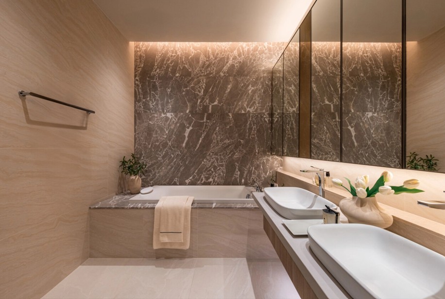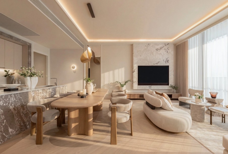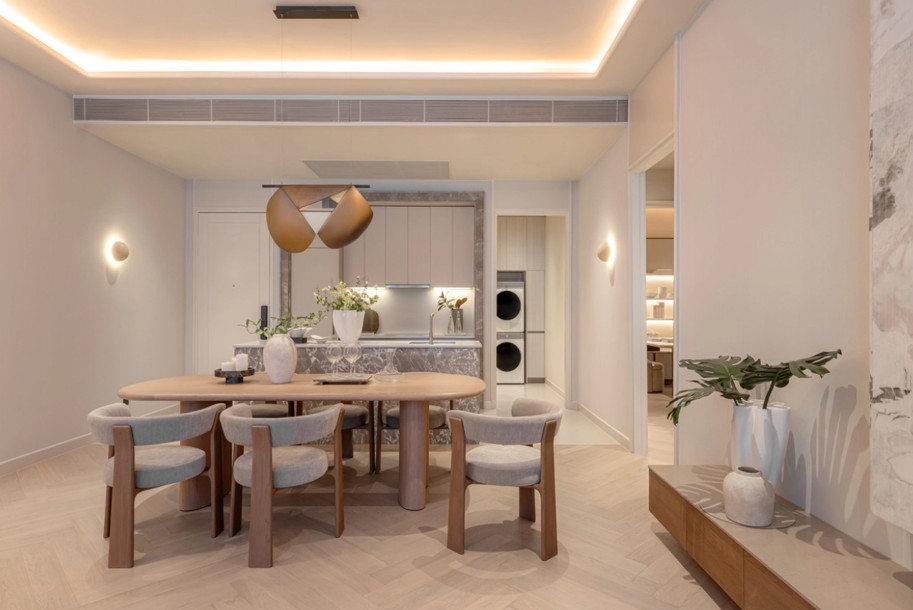 Each unit is designed with everyday practicality in mind. Living and dining areas connect seamlessly, making the space suitable for both relaxing and entertaining. Kitchens feature modern cabinetry and efficient layouts, while bedrooms are proportioned to ensure comfort and privacy. Large windows enhance the sense of openness while offering pleasant urban or greenery views, reinforcing the project’s calm, understated identity.