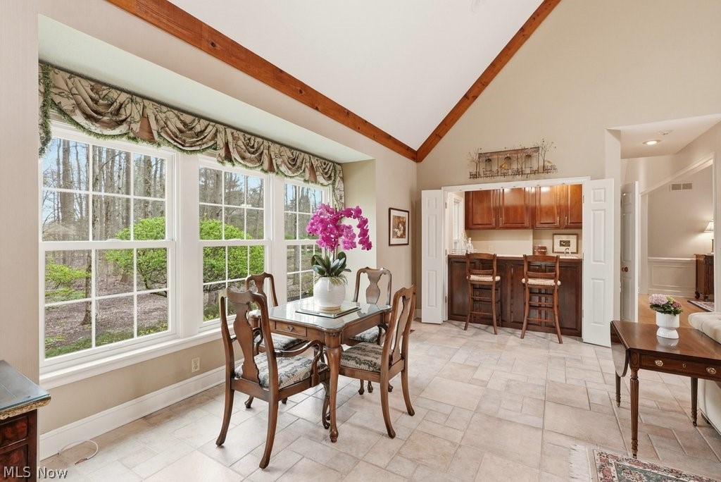 Nestled on 5.46 wooded acres, this exceptional 5 bedroom, 7 full bath home offers the perfect blend of luxury, privacy and versatility. Thoughtfully designed for both everyday living and unforgettable entertaining, the home features a desirable first floor primary suite along with a separate in-law suite complete with it's own sitting room-ideal for extended family or guests. A dramatic two story foyer welcomes you inside and opens to an expansive dining room with a gas fireplace, custom built-ins and an exquisite chandelier. The eat-in kitchen is beautifully appointed with granite countertops, stainless steel appliances, a breakfast bar, and a convenient serving bar-perfect for hosting gatherings of any size. The impressive great room serves as the heart of the home, showcasing vaulted ceilings and an incredible wet bar, creating a true entertainer's dream space. Just steps away, a Florida room and dedicated changing bath provide seamless access for poolside enjoyment and effortless indoor-outdoor living. A private office and a convenient first floor laundry complete the first floor. Upstairs, you'll find three generously sized bedrooms, each with direct access to one of two full baths, offering comfort and privacy for family and guests alike. The finished lower level features two separate recreation areas, a bar, a full bath, a storage room, a workshop and walk out/up access to the deck and pool area. This home has been well maintained with many updates throughout. Located in the award winning Kenston School District and ideally situated near parks, shopping, and dining, with easy freeway access and just minutes to the Village of Chagrin Falls. Geauga County taxes and no RITA! See supplements or contact agent for a list of improvements.