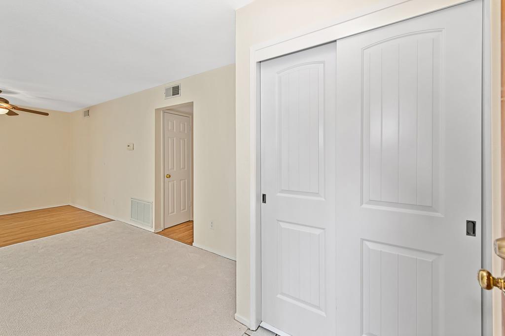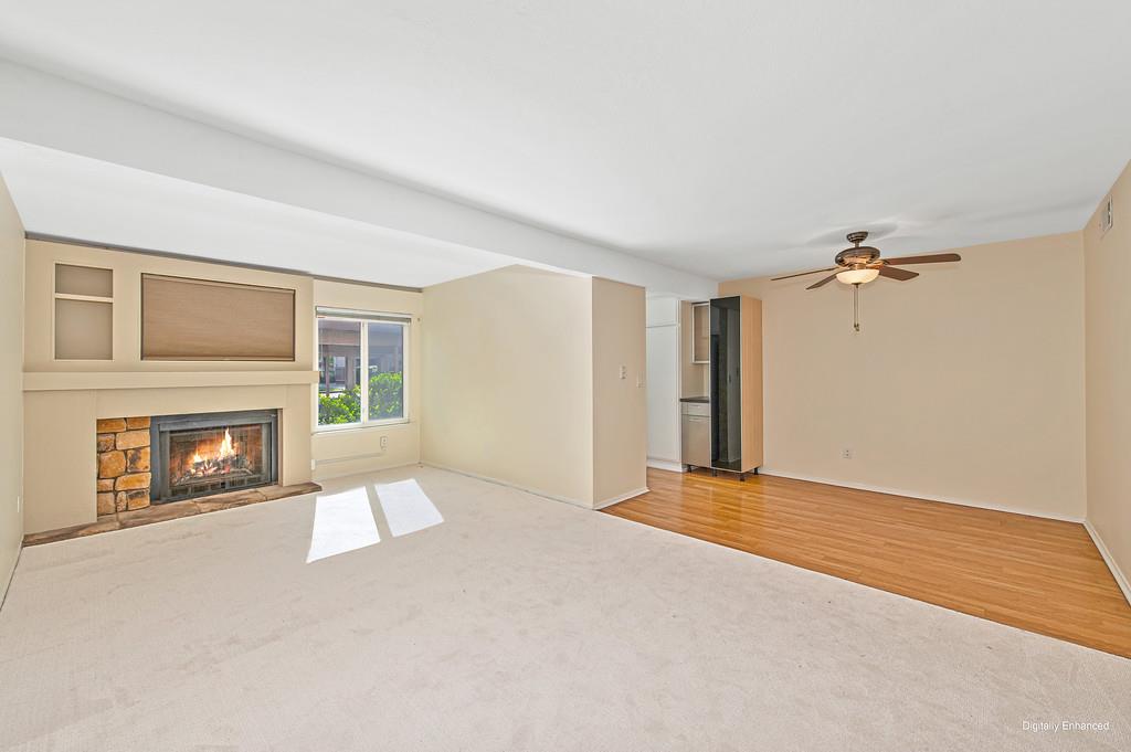 This ground level 2 bedroom condo is clean and move-in ready! Fresh paint, new carpet and a desirable location at the perimeter of the development. Private rear patio, gas fireplace and kitchen with morning sun and added storage. Refrigerator and stacked laundry included. Excellent location close to schools, parks restaurants and shopping!