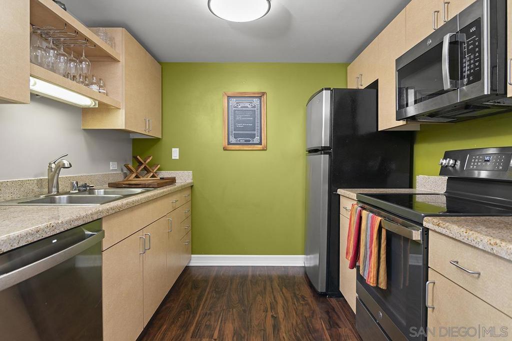 Picturesque oversized windows fill this southeast corner residence with natural light while showcasing vibrant city views, placing you near the heart of Little Italy. A private balcony offers the perfect vantage point to take it all in, overlooking the 8th-floor pool deck and skyline beyond. The home lives bright and open, feeling larger than its footprint with a seamless flow from the living area to the outdoor space - ideal for both relaxing and entertaining. A thoughtfully placed mirrored wall enhances depth and light, while crown molding and luxury vinyl plank flooring add a warm, finished touch throughout. The well-appointed kitchen features granite countertops and upgraded stainless steel appliances, blending style with everyday functionality. The corner bedroom serves as a comfortable retreat, complete with large windows, city views, and ample wall space for artwork or design personalization. Additional highlights include Acqua Vista's top-notch amenities with fitness center, pool, spa, 24hr attendant, Amazon Locker, conference room and more! Secured valet parking space is included for convenience and ease. Just down the street, enjoy immediate access to the waterfront at the Embarcadero, Little Italy's renowned dining and shops, and all the best of Downtown living A home that delivers on both lifestyle and location - comfortable, connected, and distinctly urban. Downtown San Diego's Little Italy is a vibrant culinary and cultural hotspot, beloved for its rich history and modern flairs. Classic restaurants like Mona Lisa and Civico 1845, alongside new favorites Ironside, Juniper & Ivy, and Craft & Commerce, make it a go-to for local foodies. The neighborhood is filled with cafes, bakeries, boutiques, bars, and wine shops, perfect for an evening wander. The Little Italy Association also keeps the calendar full with community events such as art walks, car shows, the yearly Little Italy Festa, and a vibrant Farmers Market on Wednesdays and Saturdays. Don't forget the NoLi Art & Design District, a vibrant hub that includes a collection of retail outlets, designer boutiques, and art galleries, all boasting unique home items and rare discoveries to help you curate the perfect ambiance for your new residence. . With the airport just minutes away, frequent travel becomes effortlessly convenient to boot. Acqua Vista features complimentary valet parking for residents, 24/7 security and lobby attendants, a fitness center, and an 8th floor pool and spa deck, barbecues and lounge area. Residents can also take advantage of the community's electric vehicle charging stations. *Have a 2nd vehicle? The HOA leases additional parking spaces too!*