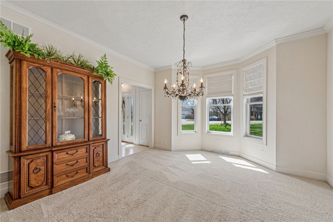 Magnificent best describes this all-brick 2-story nestled on 1.1 acres at the end of a quiet cul-de-sac in desirable Mountain Ridge Estates in North Huntingdon. Offering breathtaking, million-dollar $$$ views and an expansive side yard perfect for a future pool, this home combines luxury, space, and serenity. A light-filled interior with abundant glass and neutral d cor enhances the open floor plan, highlighted by soaring ceilings and a dramatic two-story raised hearth stone fireplace anchoring the family room. The space flows seamlessly into the fully equipped kitchen featuring granite countertops, an island with seating, and easy access to a massive rear deck - ideal for entertaining or simply taking in the stunning surroundings. The impressive two-story foyer is flanked by a formal dining room and a versatile living room or home office with French doors. The primary suite is a true retreat, complete with a tray ceiling, cozy sitting area, private deck access for morning coffee, two oversized walk-in closets, and a luxurious ensuite bath with an oversized whirlpool tub. The walk-out lower level boasts abundant windows and a 13-course foundation, offering endless potential for finishing, and opens to a concrete patio with equally spectacular views. Additional highlights include laundry hookups on both the main and lower levels, quality Parry construction with 2x6 framing and 30-year shingles, and a spacious 3-car attached garage. Mountain Ridge Estates features a neighborhood park. This exceptional property offers the perfect blend of craftsmanship, comfort, and unforgettable views.