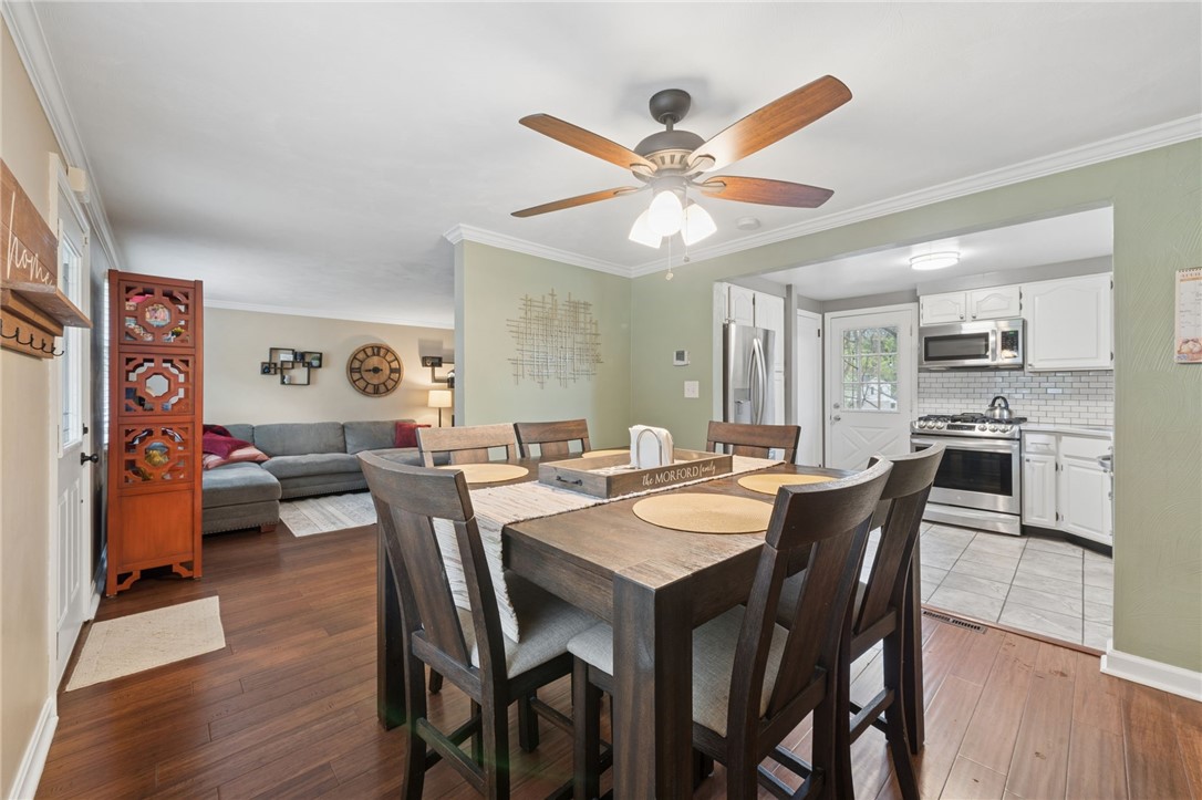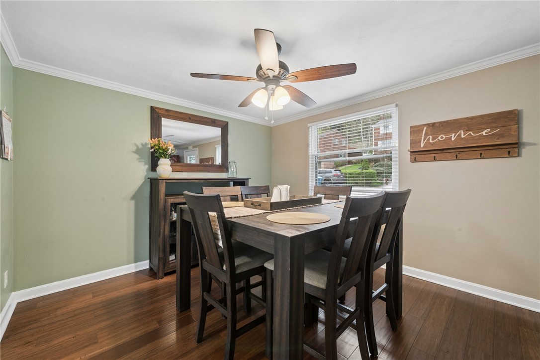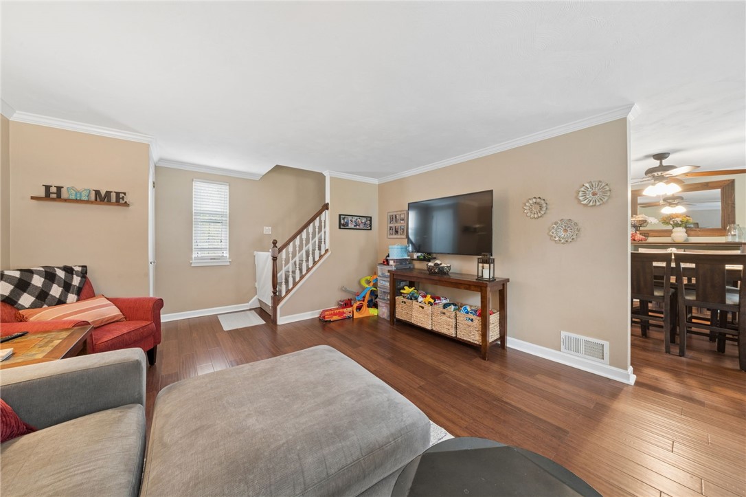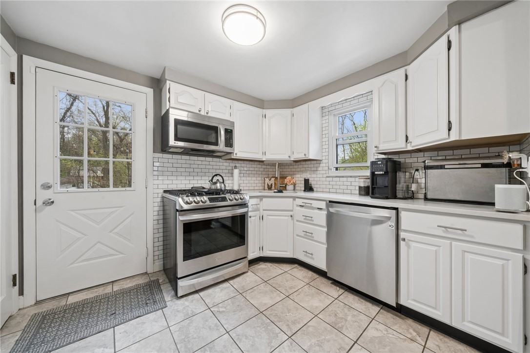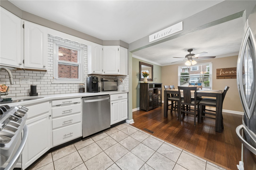 Welcome home to 917 Roland Rd! This charming 3-bedroom, 2-bath, two-story home is located in the desirable Gilmore neighborhood of Wilkins Township. The first floor features a spacious living room, a formal dining room and an updated kitchen complete with white cabinetry, quartz countertops, subway tile backsplash and stainless steel appliances. Step outside onto the rear deck, perfect for relaxing or entertaining, which overlooks a fenced-in private backyard with a storage shed. Upstairs, you'll find three comfortable bedrooms and a full bathroom, along with convenient pull-down attic access for additional storage. The unfinished basement offers a second full bathroom, a laundry area with washer and dryer, and mechanicals. It also provides access to the one-car integral garage as well as a walkout to the backyard. Conveniently located near major roadways, schools, parks, grocery stores and restaurants.