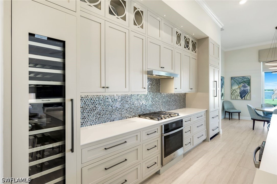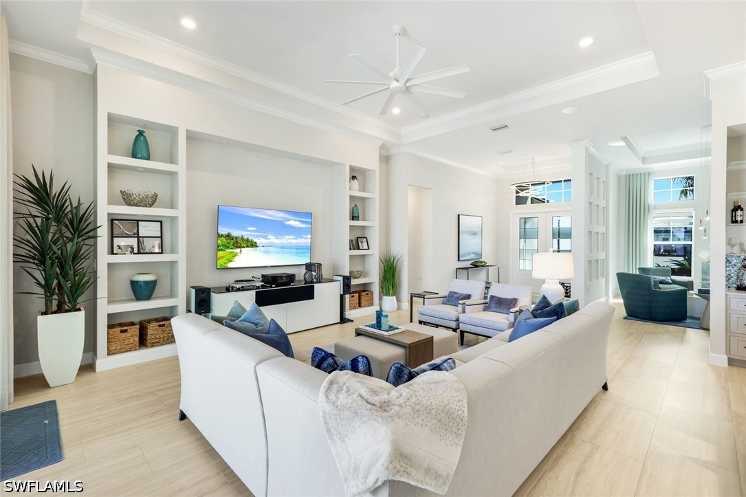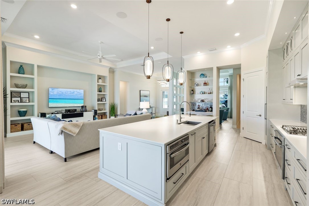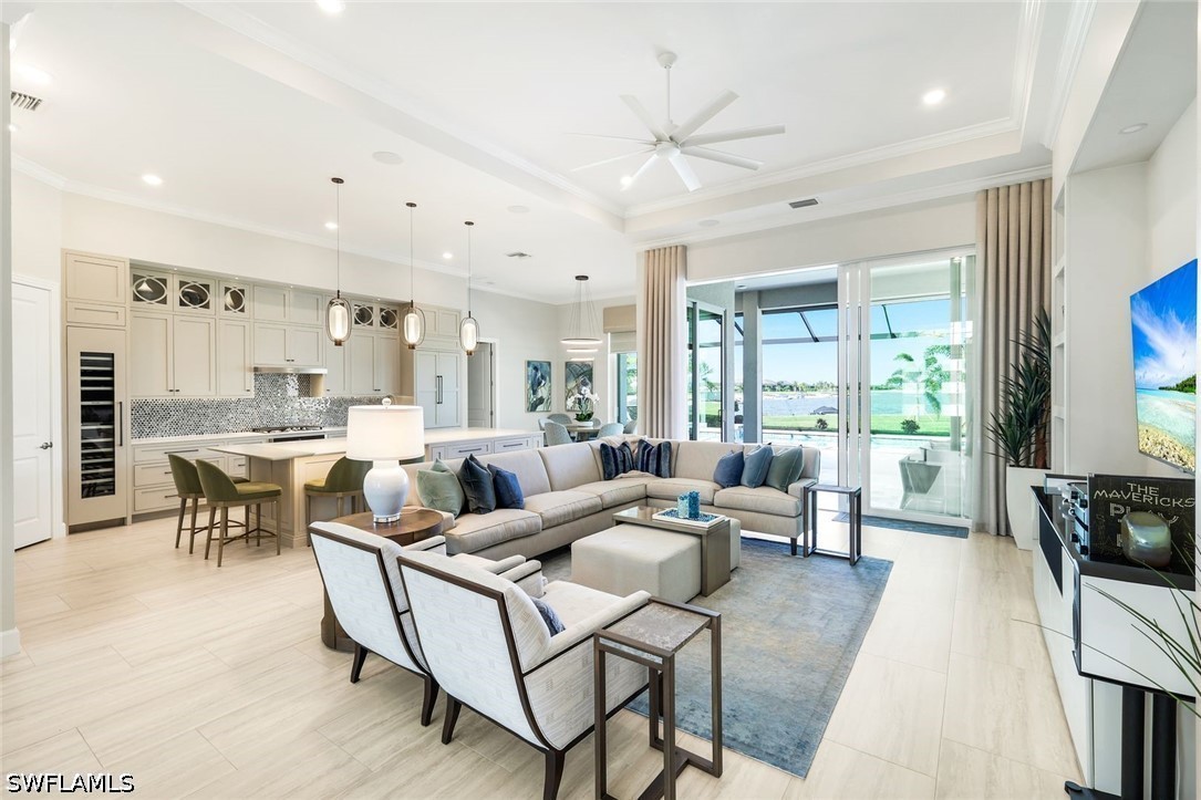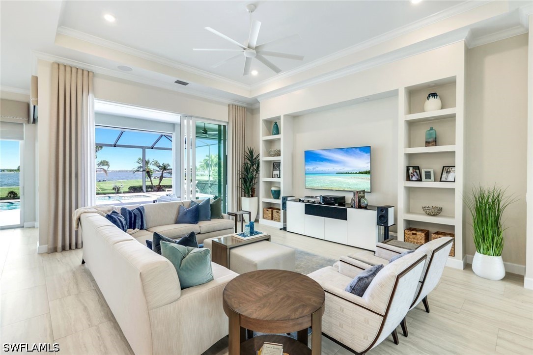 Experience refined waterfront living in WildBlue, perfectly positioned on the community's largest lake with your own private dock for boating and sunrise views. This exceptional 4-bedroom, 3-bath residence with a 3-car garage showcases a seamless blend of elegance and modern design. The fully renovated chef's kitchen is a true showpiece, featuring a stunning bar area, wine cooler, and upscale finishes ideal for entertaining. Custom wall treatments and a beautifully crafted entertainment feature wall elevate the home's interior with distinctive style and sophistication. Step outside to your private outdoor oasis complete with a resort-style pool, spa, and fully equipped outdoor kitchen - perfect for year-round Florida living. Additional premium features include a full-house generator and storm smart screens for ultimate convenience and peace of mind. WildBlue offers an unparalleled lifestyle with expansive boatable lakes, a resort-style pool, clubhouse with dining, attended fitness center and spa, tennis, pickleball, and a sandy lakeside beach. Ideally located just minutes from Florida Gulf Coast University and Southwest Florida International Airport, along with premier shopping and dining. Be sure to click on the virtual tour link. An extraordinary opportunity to own one of WildBlue's finest lakefront homes today!