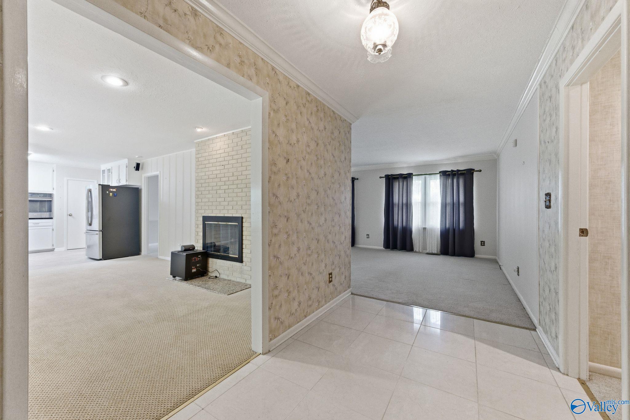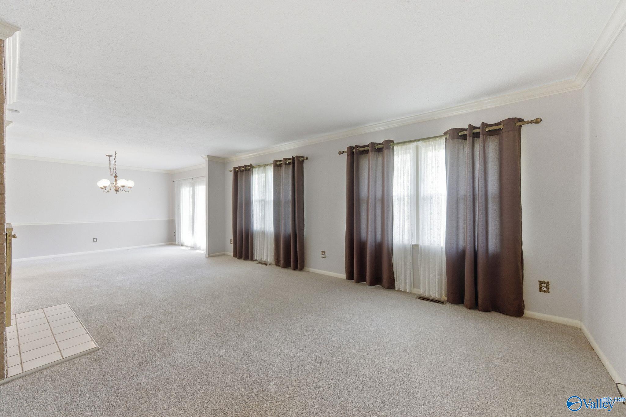 Discover peaceful one-level living in this sprawling ranch home on nearly 1 acre of serene, private land. Offering four bedrooms and three baths, this home includes a versatile teen suite or mother-in-law suite with its own separate kitchen, bedroom, and den - ideal for extended family or guests. A beautiful see-through fireplace warms both the living room and great room, creating the perfect gathering space. The oversized three-car garage easily fits vehicles and your boat, plus there's a convenient outdoor storage building. Tucked away for privacy yet conveniently close to Redstone Arsenal, schools, and shopping. Move-in ready with plenty of potential--this rare find won't last long.