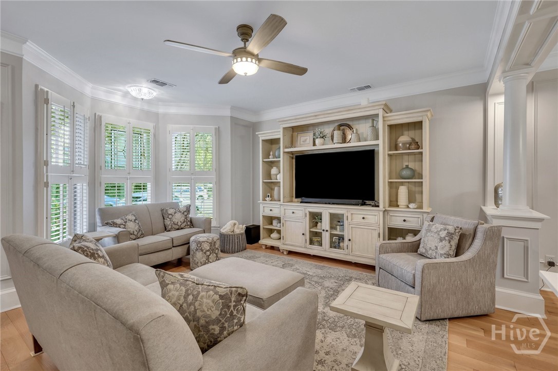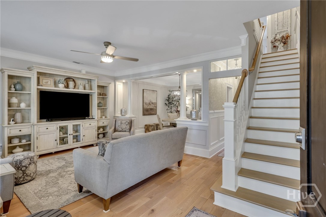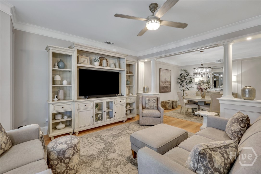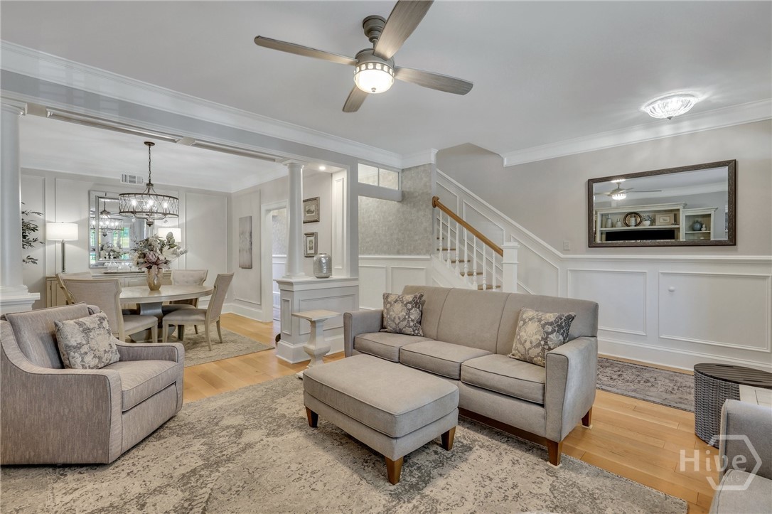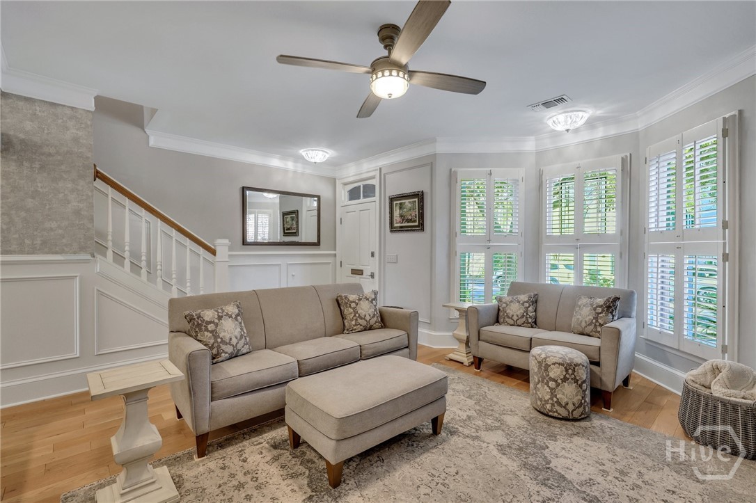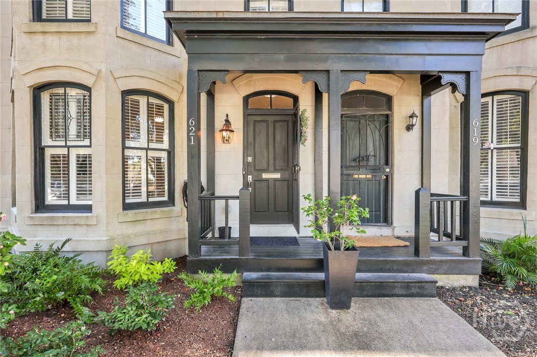 This Is It ~ Luxury within reach - this meticulously reimagined residence located in Savannah's Landmark Historic District, offers two private bedroom suites and exceptional attention to detail throughout. Showcasing undeniable curb appeal, the home opens to a thoughtfully enhanced entry with architectural pillars dividing the living and formal dining areas, setting the tone for the refined interior beyond. Wide-plank white oak floors, extensive crown molding, custom wainscoting, uncommonly substantial closet space, truly unmatched storage, and designer wallpaper create a rich, layered aesthetic & ambience. The kitchen is a masterpiece with weathered granite, Top of the Line appliances, an abundance of superior cabinetry, lighting, and flooring. All baths have been fully rebuilt with beautiful, modern finishes. Equally striking is the outdoor living and grounds: A Private garden courtyard haven, complimented with an elegant paver hardscape, is enhanced by a Wi-Fi-controlled awning that provides shade over the serene patio, as well as Wi - Fi controlled irrigation, (In both the front & rear gardens). In addition to All of this and so much more, the property Boasts a front to back, walkable height attic with immense storage capacity. This very special property, one block from Forsyth Park, peaceful and welcoming, is a true blend of sophistication, functionality, and tremendous value.