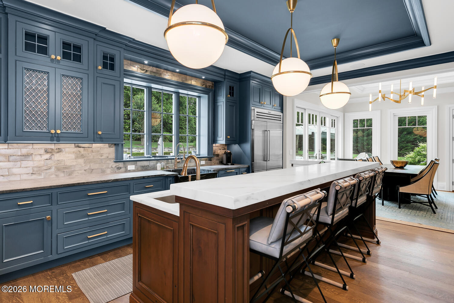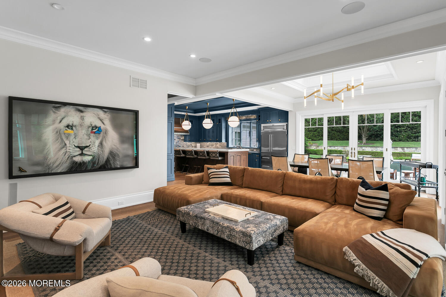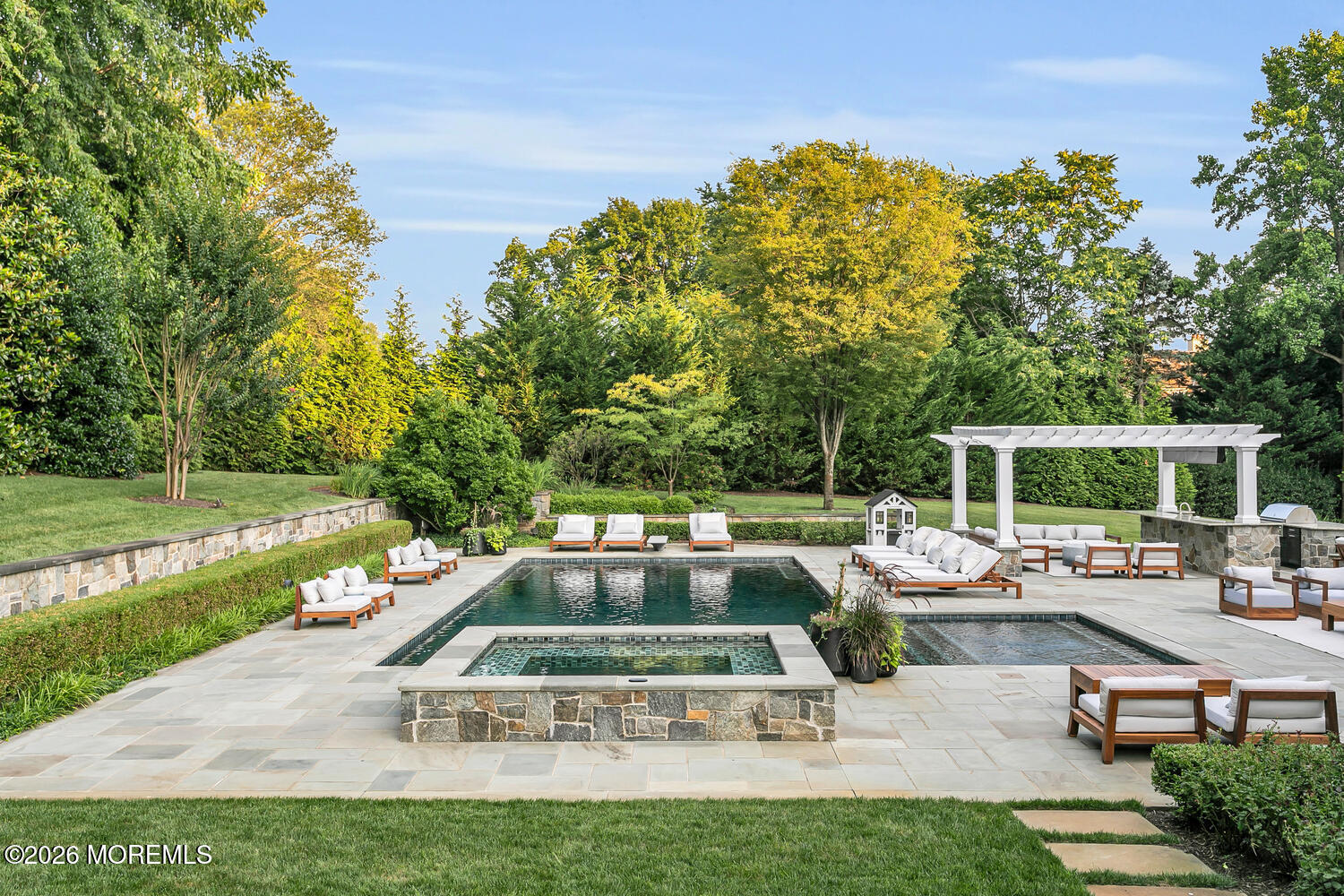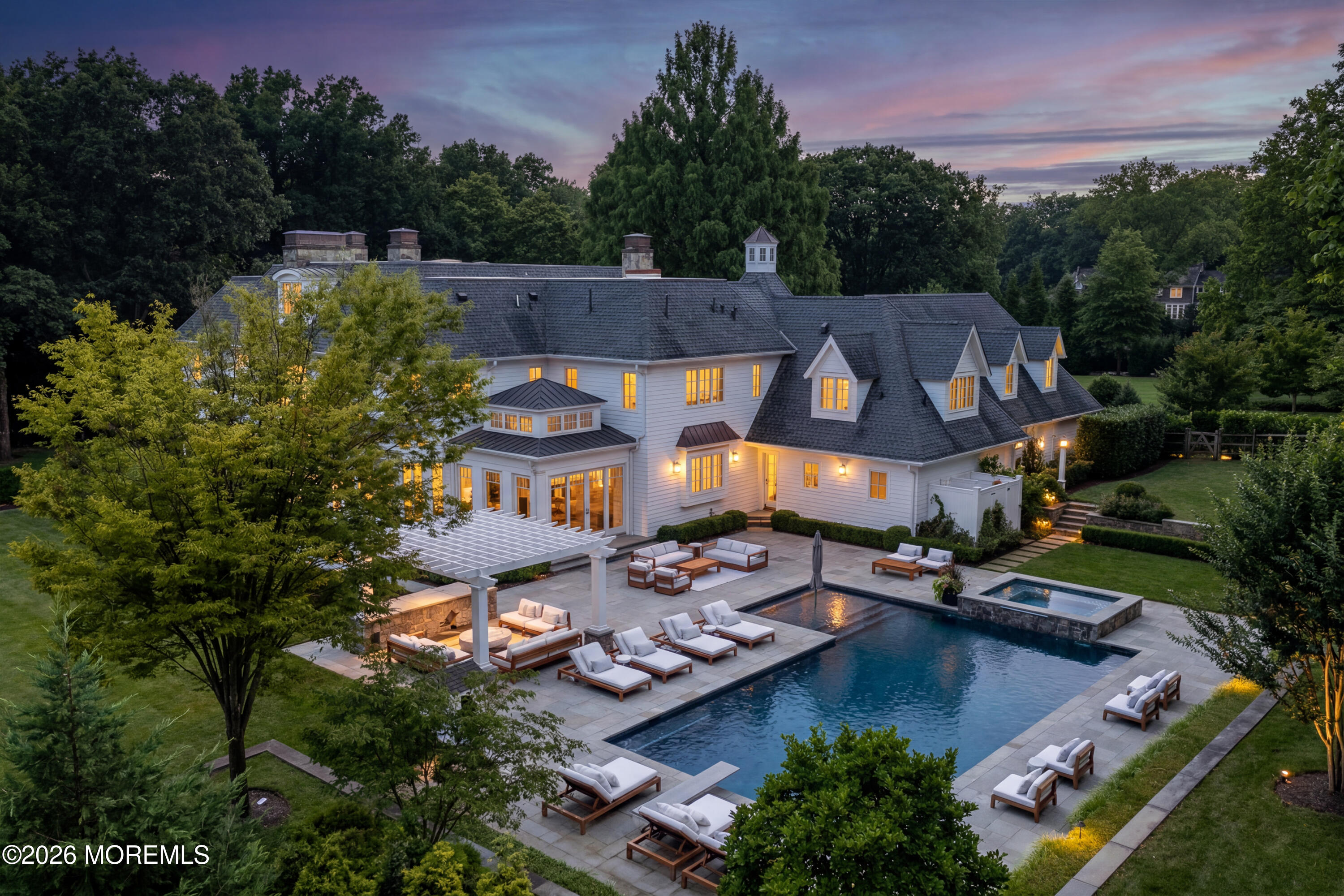 The ultimate entertainers paradise. Welcome to a private resort-style sanctuary like no other. Set behind gated entry on 3 manicured acres in one of the area's most coveted enclaves, this extraordinary estate has just completed a breathtaking three-year, $3 million transformation. Offering over 9,200 sq. ft of finished living with a walk-out lower level - Every inch of this move-in-ready masterpiece was thoughtfully reimagined to deliver unmatched luxury, seclusion, and year-round resort-style living. More than $1 million was invested in the grounds alone to create an atmosphere that rivals a five-star resort. At night, architectural lighting illuminates the estate's trees, driveway, and residence, transforming the landscape into a serene evening retreat. The rear grounds are anchored by a resort-style pool and outdoor kitchen, surrounded by bluestone terraces. Inside, the home has been reimagined to the highest standard. Every surface has been refinished, including paint, wallpaper, flooring, lighting, and architectural millwork. Over 4,000 square feet of space--including the entertainment complex, custom gym, and luxurious spa--was taken down to the studs to allow for complete redesign. Custom railings and staircases were installed to elevate the flow between levels, while custom leather-wrapped walls and designer finishes lend the home a sense of modern sophistication. The formal office makes a bold statement with rich leather-wrapped walls, motorized shades, curated lighting and integrated AV systems. The kitchen, living, dining, and family rooms flow seamlessly with upgraded lighting, sound systems, custom cabinetry, and refined wall treatments, all designed to support both everyday living and upscale entertaining. The crowning jewel of this home is the all-new, 3,000-square-foot walk-out lower level, crafted as a $1.1 million entertainment complex. Every detail was envisioned to create an elite private club experience. The entry to the space was transformed with statement millwork and lighting. The lower level includes six Sony flat panels, two Sony projectors with custom-fitted screens, acoustically treated ceilings with soundproofing throughout, and Savant-controlled automated lighting and sound systems. This unrivaled complex features a Dolby Atmos movie theater with SonusFaber's highest-spec audio, tiered seating for ten, in-seat and in-wall subwoofers, and cinema-grade lighting. A custom-designed Trackman Golf Simulator room offers built-in acoustic millwork and Sony projection technology. The bar--an impressive 16-foot statement piece--is finished in granite with seating for eight, pendant and under-bar lighting, flat panel display, ice maker, and refrigeration. The catering kitchen is equipped with Sub-Zero refrigeration, custom cabinetry, and granite countertops. The home's spa experience rivals that of the finest luxury resorts and was completely rebuilt from the ground up to create a tranquil, Aman-inspired retreat. The gym was also completely reconstructed with brick accent walls, dedicated HVAC and ventilation, and professional lighting, and is anchored by an 85-inch flat panel with integrated sound bar and hidden surround sound, and even includes a discreet lounge/office area for post-workout relaxation or remote work. A seemingly endless list of amenities, right at your fingertips. This one is a must see. Minutes to NY Ferry, beach, A+ schools and more.