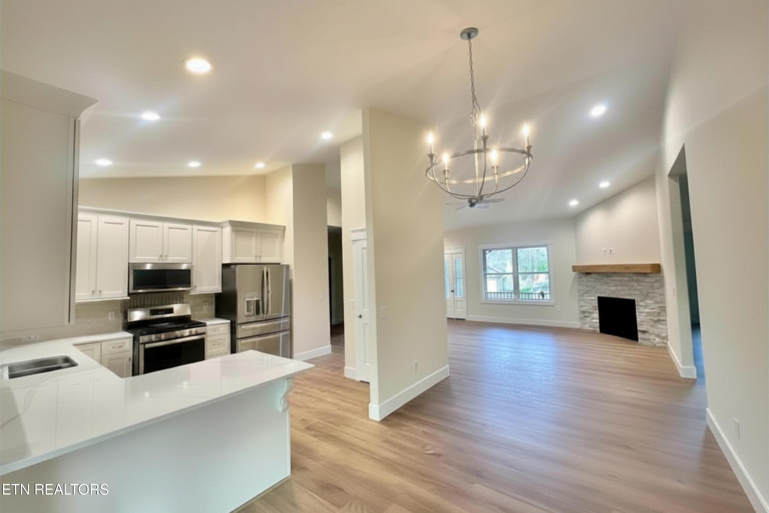 Stunning brick front New Construction! This 3 bedrooms, 2 bath home offers 1,968 sq ft of living space with a functional layout. Living room features gas log fireplace for cozy evenings. The large master has a custom closet and the master bath offers double vanity, tile walking shower, corner soaking tub with a separate toilet room. Kitchen includes gorgeous cabinets, SS appliances, pantry, and quartz countertops. The sunroom is lined in windows for great natural light. Oversized laundry room with a sink, quartz countertops, and extra cabinet space. Enjoy the outdoors on the partially covered Trex deck with low-maintenance vinyl railing. A well-designed home with modern finishes and practical features throughout.