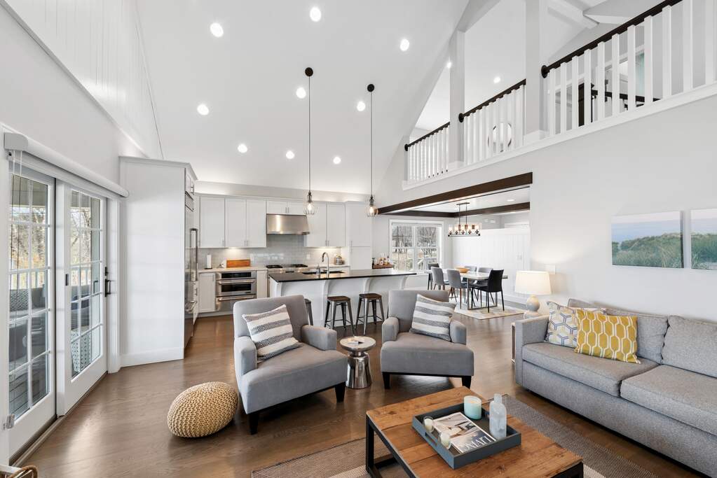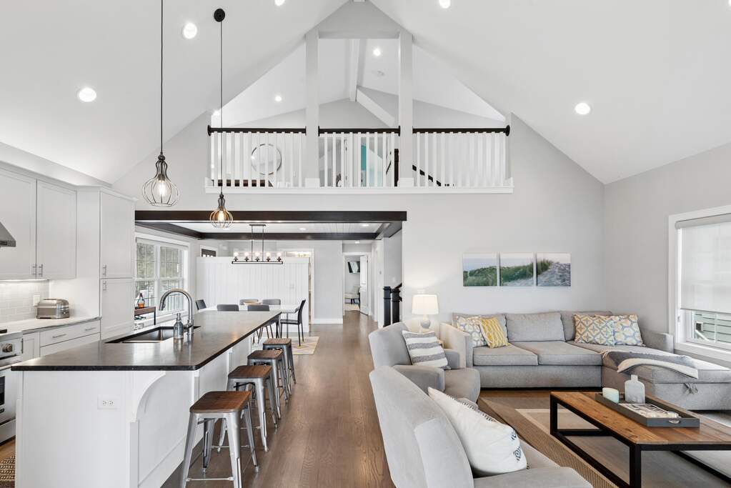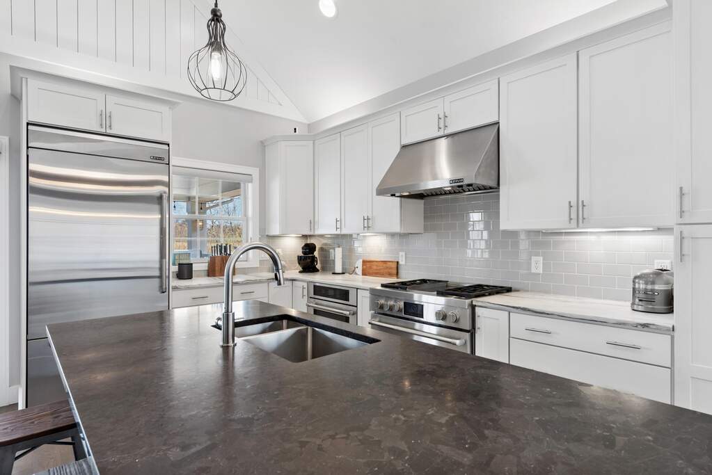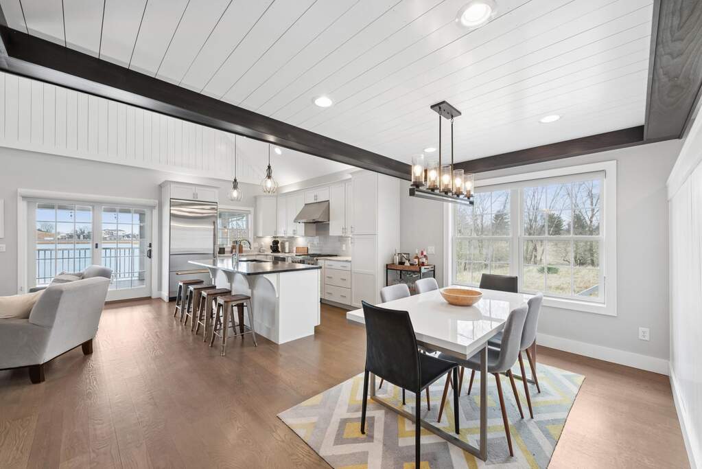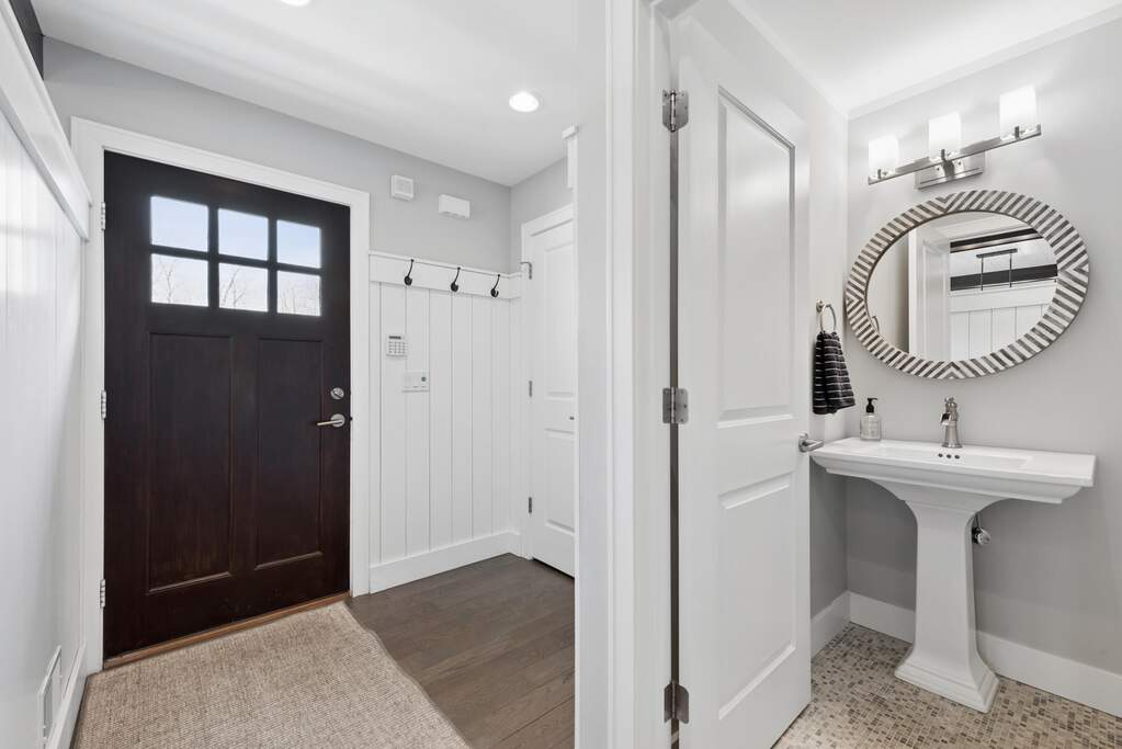 Your perfect getaway awaits at this amazing waterfront home in Michigan City's Beachwalk. The stunning views of Lake Kai from your balcony will delight as you host friends and family in this home built for entertaining. You'll love the modern, clean style of your vaulted, open-concept living room and bright chef's kitchen with JennAir appliances. Tasteful wood touches abound and every detail is considerate and intentional. Throughout the home, windows are elevated by chic wooden shutters, including the main floor owner's suite -- a calm respite with shiplap-accented tray ceiling and spacious bath. The upstairs mezzanine overlooks the main living area and leads to two bedrooms and an adjoining bath. The lower level is designed for play with a super cool game lounge, an incredible custom wet bar with wine cooler, ice maker, drink fridge, and mood lighting. The cinema room provides coziness to relax and unwind. The fourth bedroom offers further space for your guests and there's even interior storage for paddleboards, cornhole, and beach gear. Walk out to a sandy shore where you can chill around a fire pit and dip your toes in cool water. All this and Beachwalk's resort-style amenities including a pool, hot tub, fishing pier, splash pad, and a community boardwalk to the shores of Lake Michigan. Bring your shades and swimsuit, your new lake lifestyle is here!