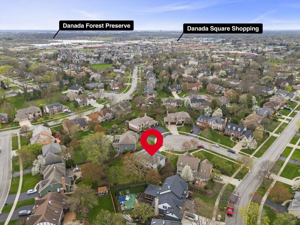 Tucked on a quiet cul-de-sac in highly sought-after Danada East, this Keim-built home offers timeless craftsmanship paired with thoughtful modern updates. Inside, a welcoming foyer with fresh paint throughout (2026) opens to a light-filled, well-designed layout, with a spacious living room to the left and a formal dining room to the right. Renovated in 2023, the kitchen features custom white cabinetry, quartz countertops, black stainless steel appliances, a center island, and pantry, all opening seamlessly to the family room with fireplace and direct backyard access. A versatile first-floor office or potential bedroom with new carpet (2026), patio access, and a full bath provides flexibility for guests, in-laws, or working from home. Main-level laundry and ample storage add everyday convenience. Upstairs, the primary suite offers a sitting area with fireplace, a spa-inspired bath with dual vanities and soaking tub, and a large walk-in closet. Three additional bedrooms provide generous space, including one with vaulted ceilings and built-in shelving-ideal for a home office, library, or study. New carpet and runner (2026) complete the second level. The finished basement extends the living space with a wet bar, recreation area, full bath, and optional fifth bedroom-well-suited for entertaining or extended stays. Located just minutes from Danada shopping and dining, the Wheaton Park District Community Center, Rice Pool, Metra stations, and nearby parks including Briar Patch and Seven Gables. Easy access to I-88 and I-355, all within highly acclaimed District 200 schools. Excellent opportunity!