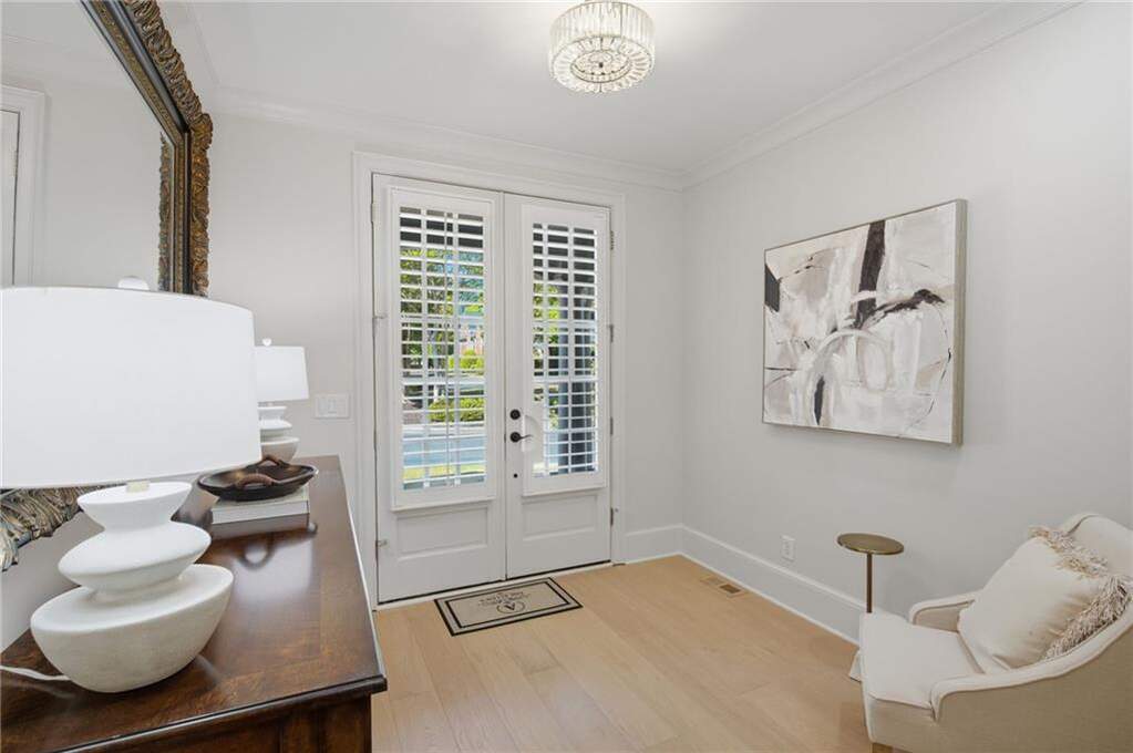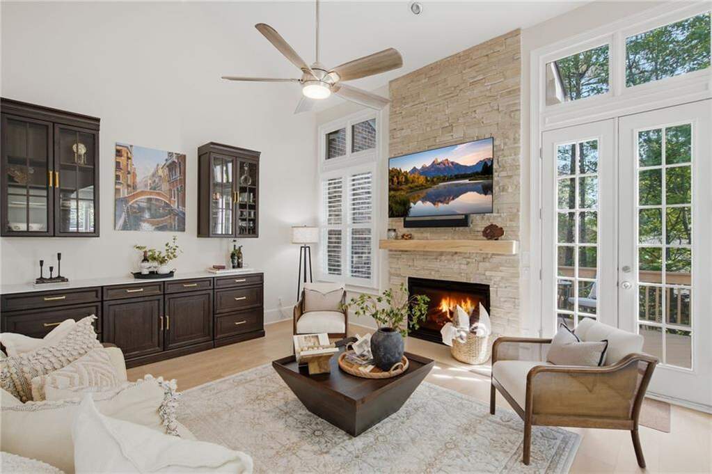Step into refined, low-maintenance living in this beautifully appointed end-unit townhome located in the gated Academy Park community in the heart of Alpharetta. With a wide, thoughtfully designed floor plan and abundant natural light, this residence offers the comfort and feel of a single-family home paired with the convenience of townhome living, all while delivering exceptional value with one of the lowest price-per-square-foot opportunities in the area. This home has been thoughtfully and extensively updated, featuring brand-new hardwood flooring throughout, a completely renovated kitchen, a rare and highly desirable walk-in pantry, plantation shutters, and a fully updated upstairs guest bathroom. Every improvement was designed to enhance both style and everyday functionality, and the home offers exceptional storage throughout. From the moment you enter, a welcoming foyer sets the stage for the home's open and inviting layout. The main level flows seamlessly into the stunning new kitchen, complete with custom cabinetry, stone countertops, designer appliances, and a large island ideal for gathering. A charming side balcony just off the kitchen provides the perfect spot for morning coffee. The kitchen opens to a spacious great room highlighted by built-in shelving and a fireplace, creating a warm and functional space for everyday living or entertaining. A separate dining area offers flexibility for both casual meals and more formal occasions. Just outside, the expansive back deck overlooks a private wooded backdrop, creating a peaceful setting for outdoor dining or relaxing-you won't believe you are just minutes from downtown Alpharetta. Upstairs, the primary suite is filled with natural light and features vaulted ceilings, a large custom walk-in closet with built-ins, and a spacious bath with dual vanities, a jetted soaking tub, and a separate shower. A private balcony extends from the suite, offering a quiet retreat. Two additional bedrooms share a beautifully updated bathroom, while a lofted workspace with built-in shelving provides an ideal work-from-home setup. The laundry room is conveniently located on this level as well. The finished terrace level expands the living space with a media room or game area and a full bath, along with generous unfinished storage areas that offer excellent flexibility for a gym, workshop, or future customization. Outdoor living is a standout feature, with multiple options including a large rear deck, private patio, upper-level balcony, and the additional side balcony off the kitchen. The end-unit location enhances both privacy and natural light throughout the home. Beyond the home itself, Academy Park offers a rare combination of amenities and location. Residents enjoy a gated entrance, clubhouse, fitness center, pool, tennis and pickleball courts, pocket parks, and scenic walking trails that connect directly to the Alpha Loop. Even better, you're just minutes from Downtown Alpharetta and Avalon, placing you within easy reach of award-winning restaurants, boutique shopping, the farmers market, and year-round festivals and events, all while enjoying the privacy of a quiet, established, gated neighborhood.