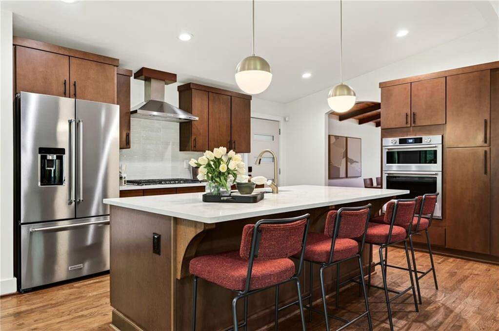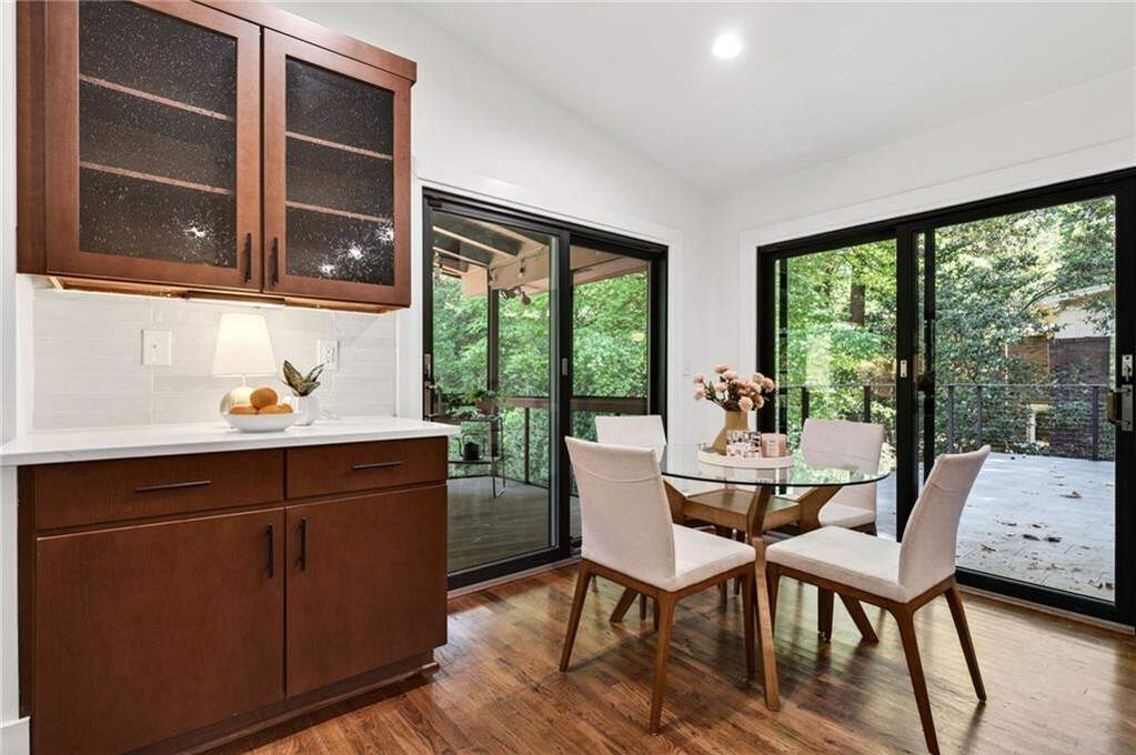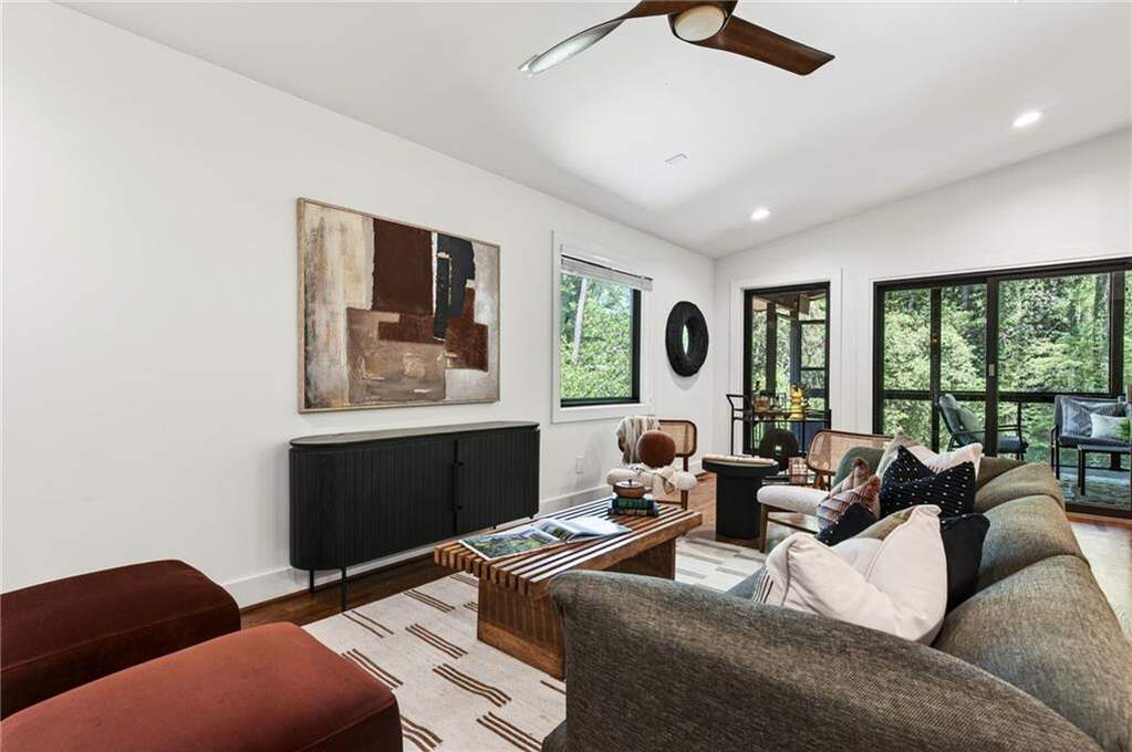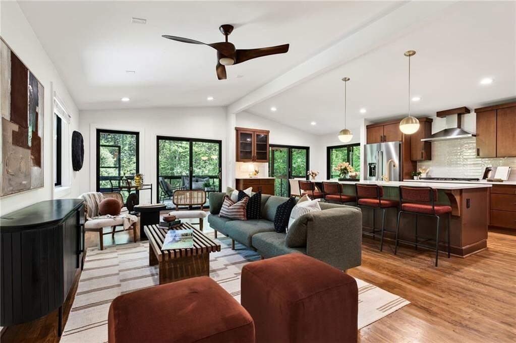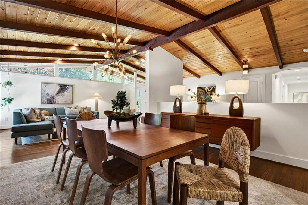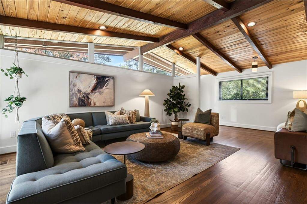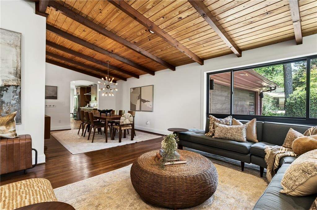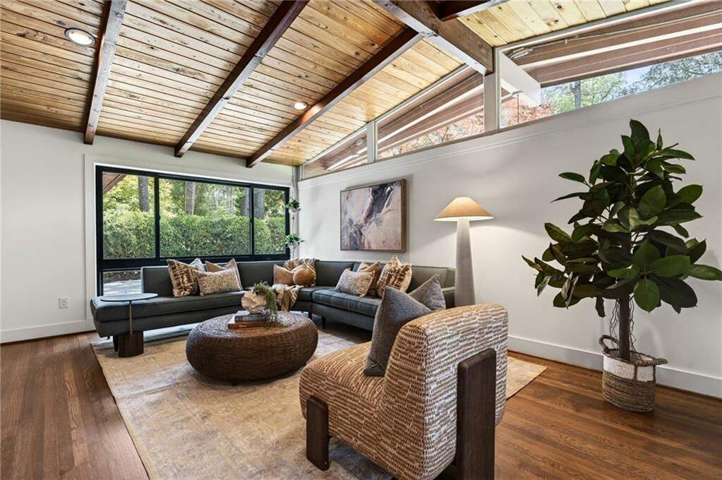 A rare opportunity to own a fully renovated midcentury modern ranch tucked into the trees in one of Atlanta's most established intown neighborhoods. From the moment you walk in, vaulted wood-beamed ceilings and clerestory windows set the tone, filling the home with natural light and highlighting the architectural character that makes this style so sought after. The renovation honors the original design while bringing in the level of finish and functionality today's buyers expect, including fresh interior paint, updated countertops, a refined backsplash, and thoughtfully selected lighting throughout. The main level offers three bedrooms and two and a half bathrooms, along with a dedicated laundry room and an easy, connected flow between living, dining, and kitchen spaces. The kitchen opens directly to the main living area and out to a screened porch, creating seamless indoor-outdoor living. The screened porch is a true extension of the home-vaulted, covered, and designed for year-round use-overlooking a private, tree-lined backyard that feels more like a retreat than a typical intown lot. Unlike many properties in this area, the backyard offers rare, flat, usable green space, giving buyers the flexibility to entertain, play, or simply enjoy the setting without compromise. Downstairs, the finished basement adds meaningful flexibility with a movie room, office or flex space, an additional bedroom, and full bathroom-ideal for guests, work-from-home needs, or multigenerational living. This is a home where the architecture, renovation, and setting all align-just minutes from I-85, GA-400, Emory, the CDC, and Buckhead.