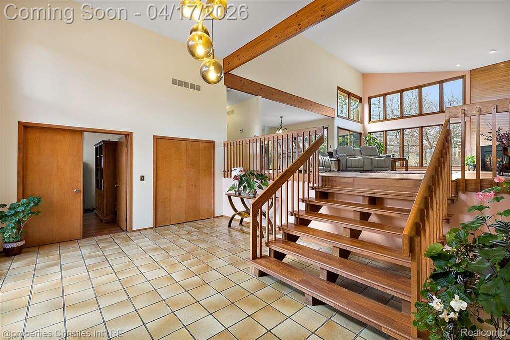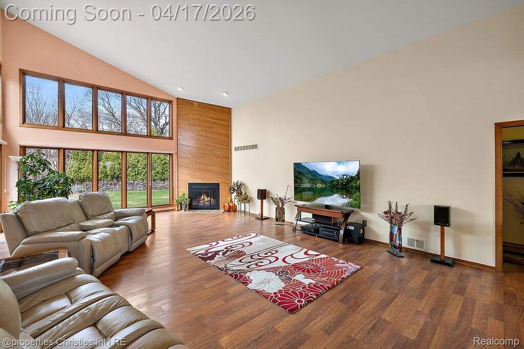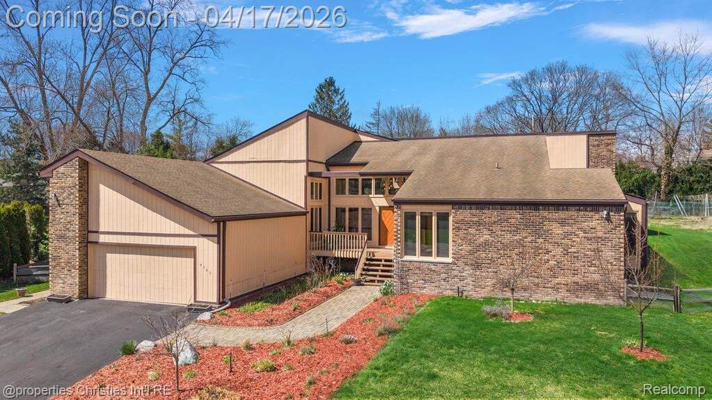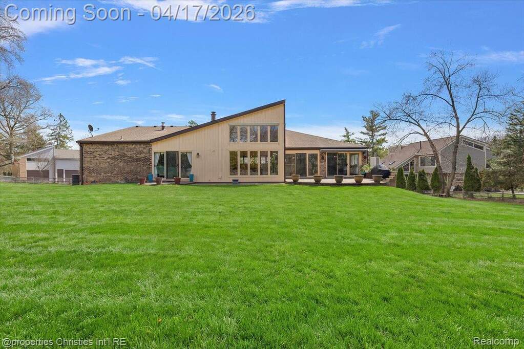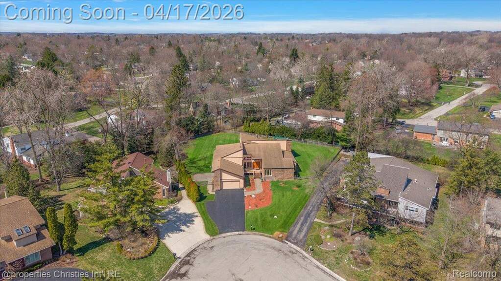 Breathtaking & rare Mid-Century Modern inspired masterpiece on a premium 1/2 acre cul-de-sac lot with top-ranked Bloomfield Hills schools! With soaring ceilings and a sprawling contemporary floor-plan, this property offers over 5,500sf of total finished living space and countless unmatched features including a grand entry foyer and great room with 2-story ceilings and stacked custom Andersen windows lining the rear of the home, wood beams and floor to ceiling wood fireplace surround, meticulous hardwood flooring throughout the majority of the main level with spacious living & dining areas, a sleek white kitchen featuring ceiling-hight cabinets with decorative glass inserts, extensive granite counters, double oven, built-in cooktop with downdraft vent and trash compactor, 2.5-car attached garage entering to a large drop-zone with built-in everyday storage and a private half-bath, decorative front powder room with a custom contemporary vanity and stylish mid-century floor-tile, quiet front office also with 2-story ceilings, stacked custom windows and a built-in wet bar, spacious primary suite with his & hers walk-in closets with built-in organized shelving and hanging, his & hers bathroom vanities, walk-in shower with a frameless Euro-glass door and detachable sprayer and jetted spa-tub, arguably the largest secondary bedrooms you'll find in this price point, Jack & Jill bathroom with individual vanities and a separate showering/water closet area! Open daylight basement that's perfect for entertaining with a built-in bar and dance floor! Enjoy a serene, private fenced backyard with multidimensional brick-paver patios off of the kitchen and Primary suite. Built-in whole-house generator for utility assurance and peace of mind! Steps from Walden pond and Walnut Lake and only a short drive to Downtown Birmingham, major freeways and several everyday amenities! A one-of-a-kind home with impressive architectural characteristics at a competitive value in today's market!
