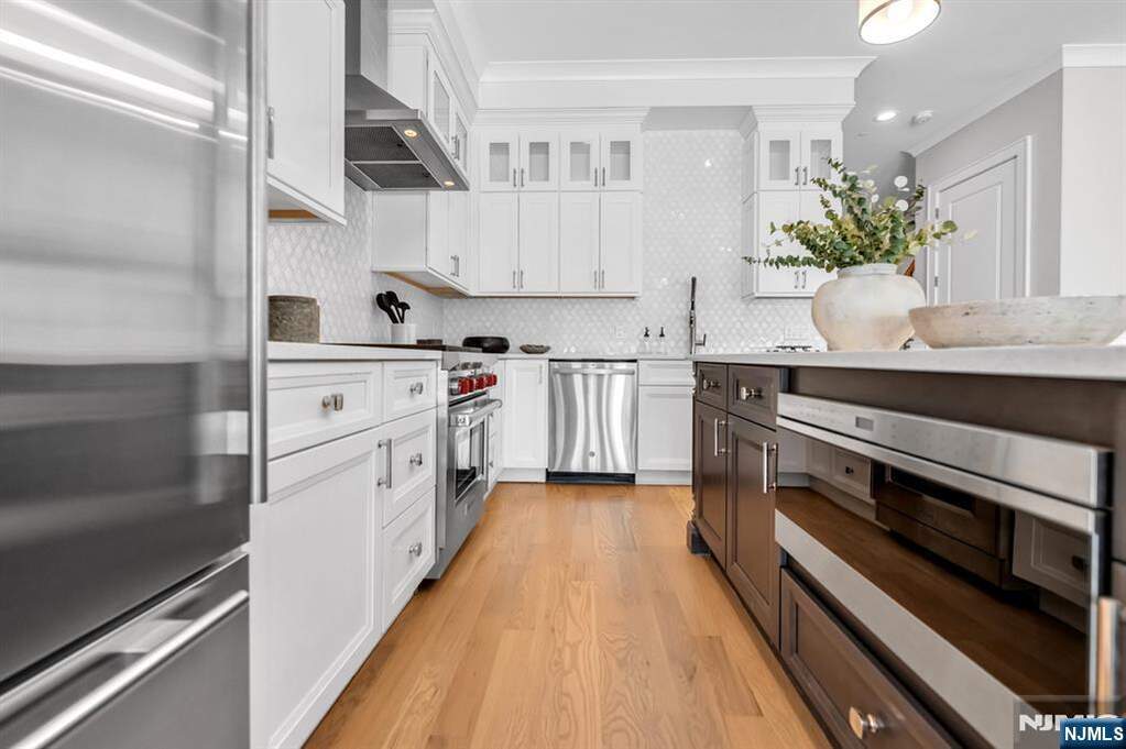 Stunning luxury interior townhome in Gabriel Estates, a boutique community in the heart of Paramus. Built just a few years ago, this residence has 3 bedrooms, 2 full baths, and 2 half baths, the home offers soaring 10-ft ceilings on the main level and 9-ft ceilings upstairs, creating a bright, airy ambiance. The gourmet kitchen showcases Sub-Zero and Wolf appliances, quartz countertops, and sliding glass doors that open to a private, fenced backyard. The impressive primary suite includes a massive walk-in closet and a spa-like bath with a Jacuzzi tub, oversized shower, and a double vanity. A fully finished lower level extends the living space with a spacious recreation room and a custom wet bar perfect for entertaining. Outdoor living is complete with a private patio and yard, all just minutes from the Garden State Parkway, Route 17, world-class shopping, and ParamusaEUR top-rated schools.