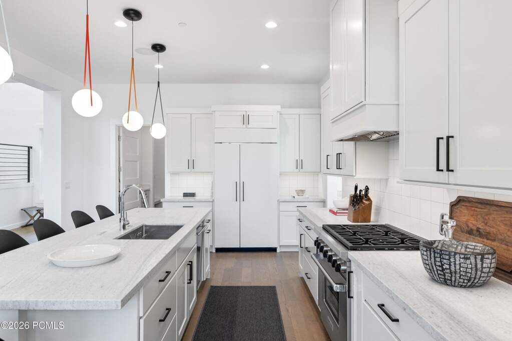 With mountain views and thoughtfully designed living spaces, this five-bedroom home offers a setting that feels both private and comfortably connected to its surroundings. The main level opens into a spacious great room, dining area, and kitchen that flow together naturally, creating an inviting environment for both everyday living and relaxed entertaining. The kitchen is equipped with Wolf appliances and outstanding butler's pantry complemented by refined finishes through the entirety of the home. Four bedrooms feature private en-suite bathrooms, providing comfort and separation for family and guests alike. For the younger guests, a bunk On the main level, the primary suite offers an elevated sense of retreat with a spa-inspired bathroom and heated floors. Mountain views from the second level and a well-designed outdoor living space create opportunities to unwind and enjoy the rhythm of mountain life in every season. Located within one of Red Ledges' maintenance-free signature neighborhoods, the HOA manages landscaping and snow removal, making this an ideal option for those seeking a true lock-and-leave golf or ski retreat, or simply a low-maintenance way to enjoy the community's private club lifestyle.