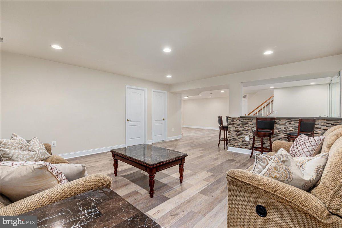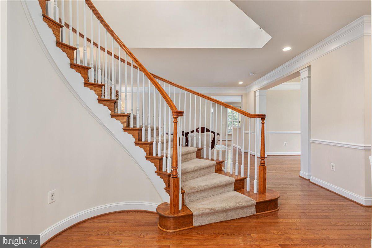 This is it - the spacious (4300+ square feet!) Kingstowne home you've been waiting for! An impressive Barrington model - with stone and siding exterior - ideally situated in the popular Prestwick enclave, with enviable proximity to shopping, trails and community pool + fitness center (just a few blocks down Van Dorn!!). The main level boasts gleaming hardwood floors, formal living and dining rooms, sunny home office, and a gourmet kitchen you will actually enjoy cooking dinner in - with Corian countertops, 42" cabinetry, breakfast area, and center island gas cooktop with ceiling mounted range hood! Cozy family room just off the kitchen has new carpet, gas fireplace and built-ins. Head upstairs (or rather, head up your dazzling curved staircase!) to your dream primary suite, featuring sitting room, tray ceilings, fan and enormous walk-in closet. Luxury primary bath has separate vanities, gorgeous spa shower with 3 sides of frameless glass, and a soaking tub that is begging to be enjoyed with a glass of wine and a good book. The 3 additional upper level bedrooms are well-sized, with lighted ceiling fans, and share the full hall bath (with double vanity, no more fights over sink space!). AND no more dragging laundry up and downstairs - washer and dryer are conveniently located on the bedroom level too!! Warm weather is officially upon us - and you can enjoy it on the charming rear deck - or take shelter from the suns rays in the covered gazebo. OR you can avoid the heat entirely, head down to the lower level to enjoy over 1000 square feet of air-conditioned relaxation or entertaining area! The finished basement includes brand new LVP flooring, multiple recreation spaces, wet bar with dishwasher and mini fridge, den and full bath. HVACs and water heater all replaced within the last 6 years! This is an incredible opportunity to own in Kingstowne, one of Alexandria's most popular communities! Residents appreciate an array of amenities (lake, 2 pools, tennis and pickleball courts, fitness centers, an aerobics studio, tons of tot lots, and miles of trails) as well as convenience to shopping and dining, TWO metro stations, and basically every major commuter route! Don't miss this charmer - showings start Saturday April 18th, schedule yours in advance or plan to stop by open houses Saturday 2-4pm and Sunday 1-3pm