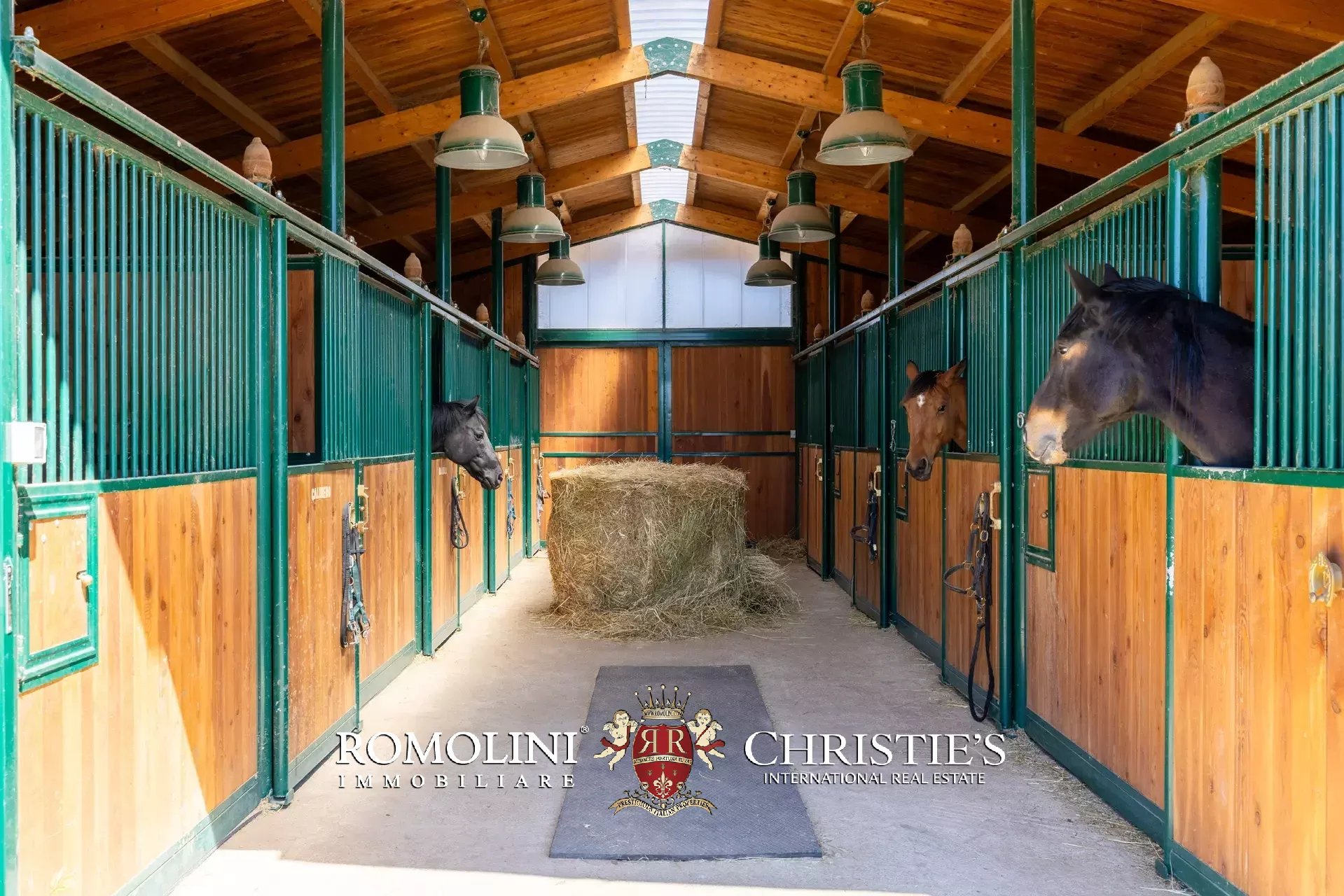 For enthusiasts, the property also has stables with 8 stalls (160 m² – 1,722 ft²) and a large barn (153 m² – 1,646 ft²) with tool storage, bathroom and hay storage. The roof of the stables houses the 34-kW photovoltaic system (mounted so that it is not visible from anywhere on the property). The volumes could be reconfigured for other use more in line with the buyers' needs. Not far away is an outdoor working arena for training.