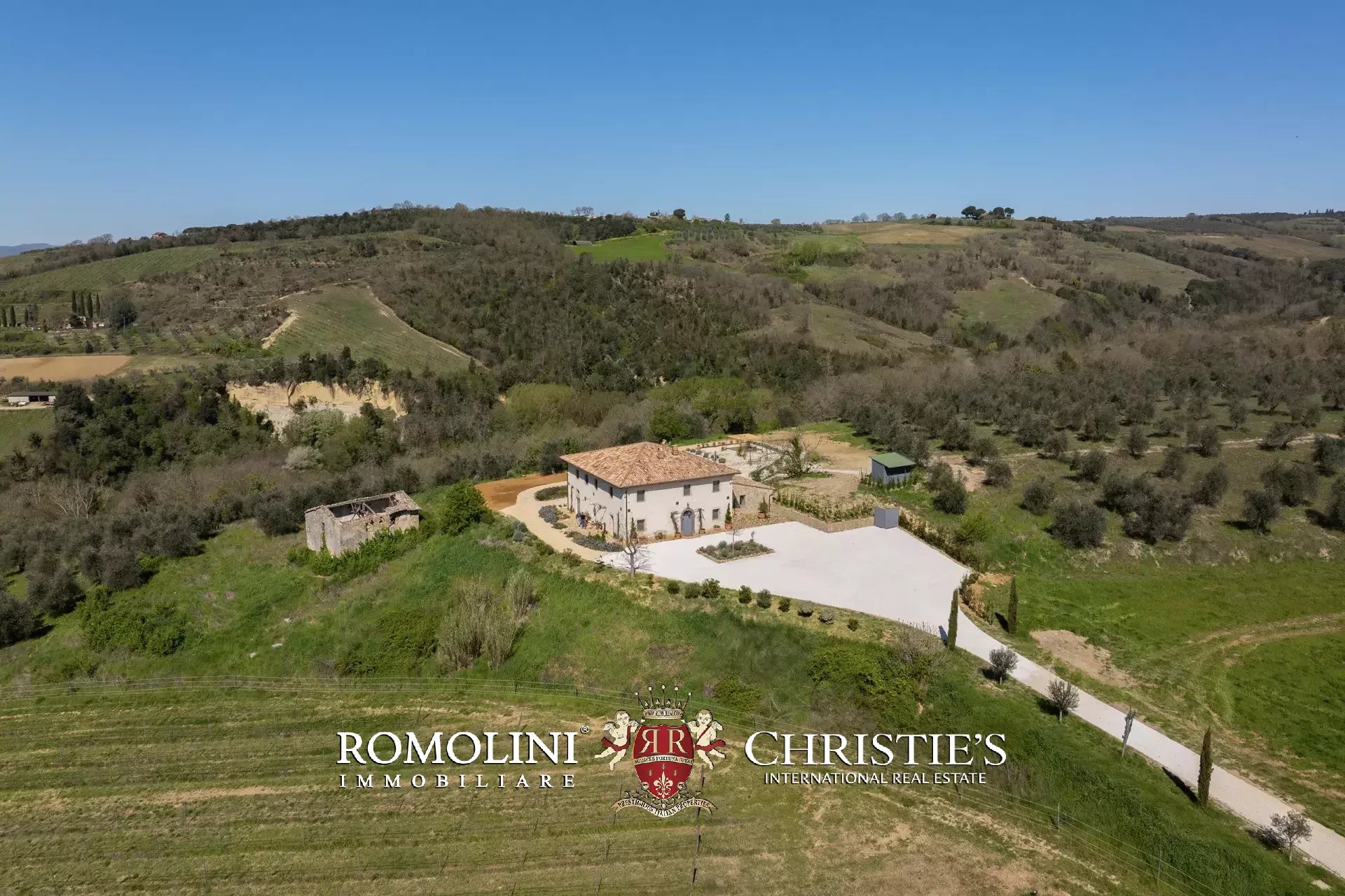 On the hills of Orvieto, in southern Umbria, 45.9-hectare estate for sale. Renovated in recent years and finished with fine materials, the property consists of three buildings and is perfect both as a private home and as an income property thanks to the presence of three separate residential units. The agricultural land surrounds the buildings and includes an Orvieto DOC vineyard and 400 olive trees as well as forest paths and fields suitable for horses.