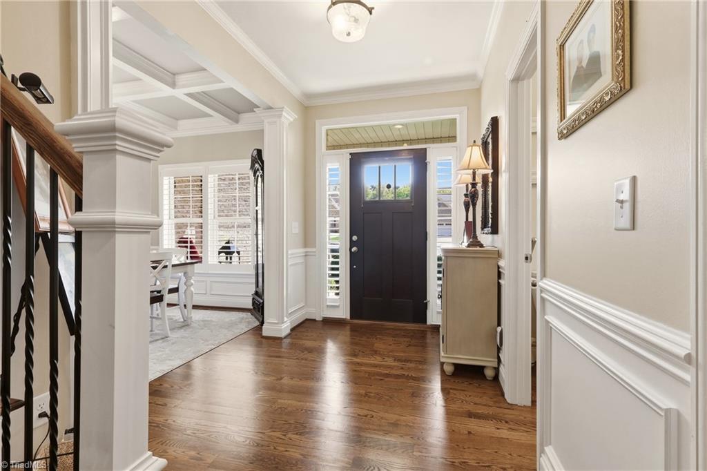 Exceptional Brick luxury home featuring 4 bedrooms and 3.5 baths with primary suite on main level.Thoughtfully designed with wood and tile flooring, immaculate and truly move-in ready. The modern kitchen offers stainless steel appliances, gas range, custom cabinetry with pull-out drawers, and a spacious pantry with built-in shelving and drawers.Expansive layout includes a large bonus room and well-appointed laundry room with sink and cabinetry. Fresh interior paint enhances the clean, updated feel.Outdoor living is equally impressive with a screened porch overlooking a private, professionally landscaped backyard that backs to wooded acreage. Fenced yard, irrigation system, and additional parking add to the functionality.Car enthusiasts or hobbyists will appreciate the 3-car attached garage plus a 2-car detached brick garage/workshop. Additional upgrades include an encapsulated crawlspace and whole-home generator.No HOA dues. A rare combination of space, privacy, and high-end features.
