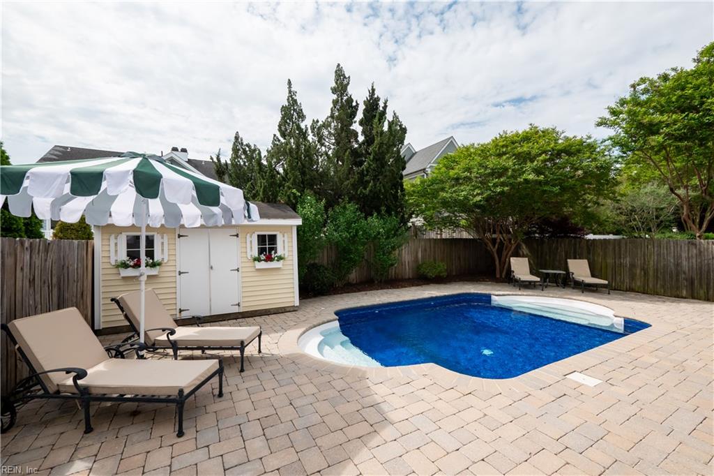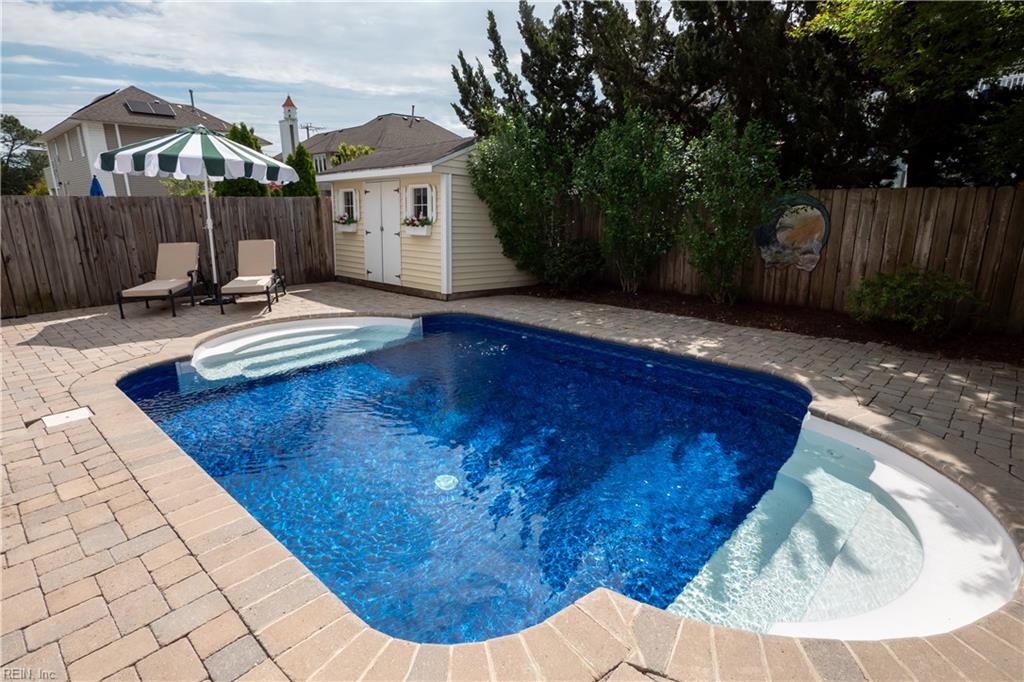 Experience elevated coastal living in this single family North End home. This turnkey property features an open floorplan with hardwood floors throughout, a pristine kitchen, gas fireplace with remote, sunroom, and spacious bedrooms. The tranquil back patio, new pool liner (2026), two car garage, spacious driveway and outdoor shower make beach living seamless. The upstairs features a large landing area as well as a second laundry closet, and 4 bedrooms- one primary suite, one large ensuite and two large bedrooms with a separated jack and jill bath allowing individual sink areas for each bedroom. Spacious closets throughout and lots of storage.