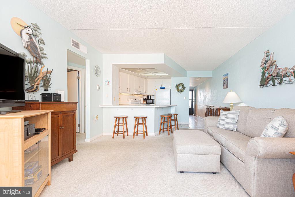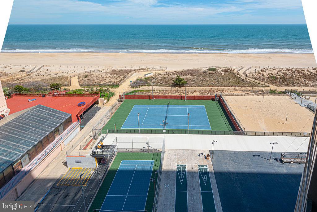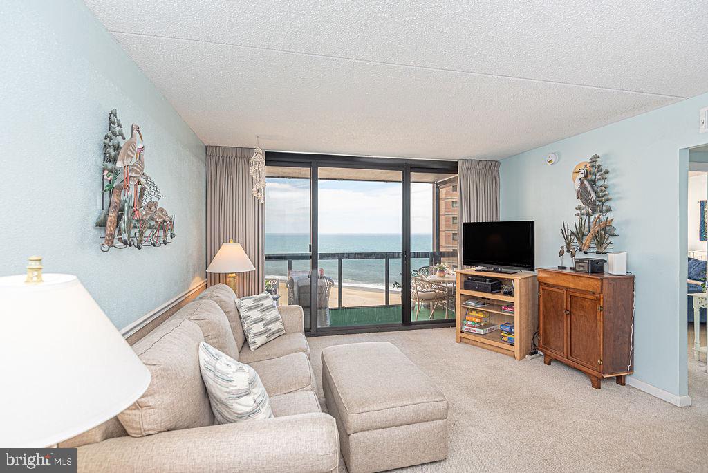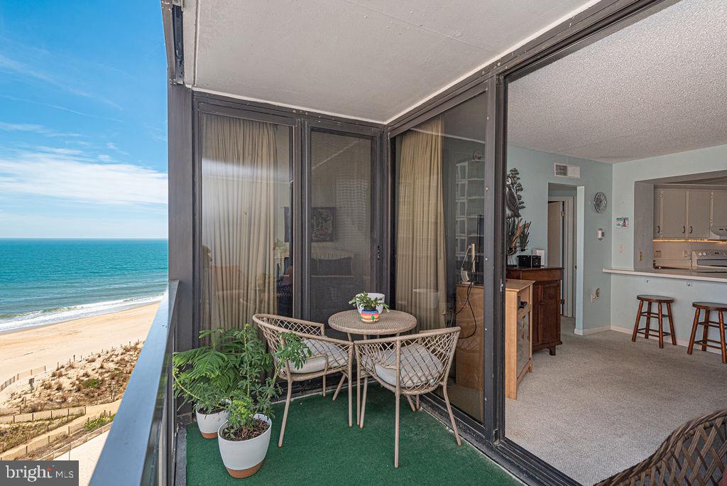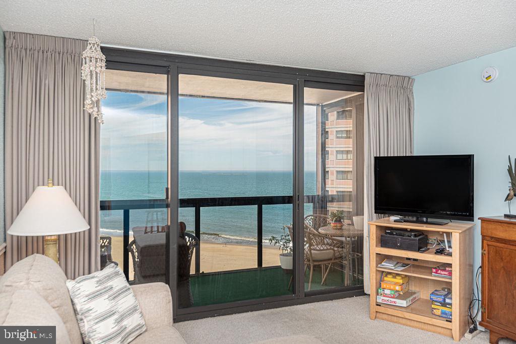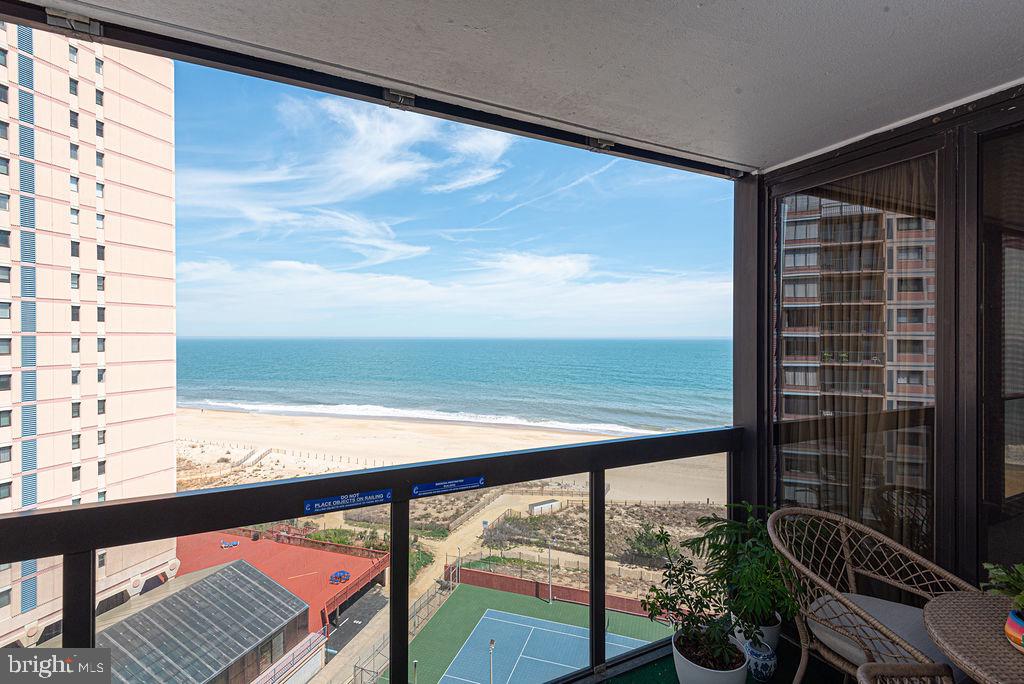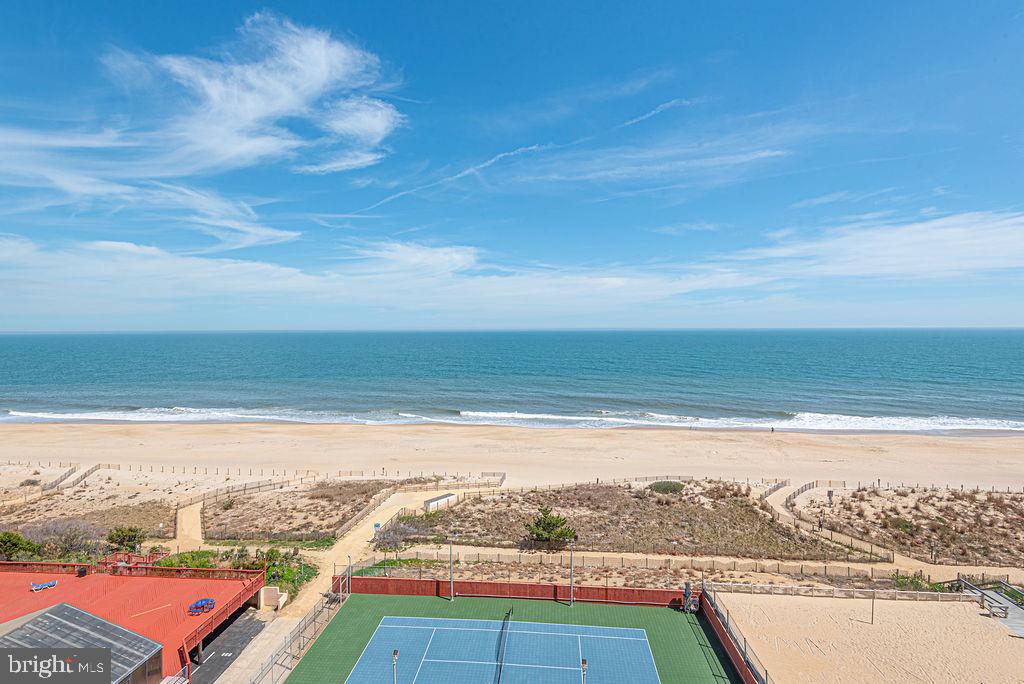 Endless ocean views await from this 9th-floor direct oceanfront condominium in the popular Golden Sands building. This 2-bedroom, 1 1/2 bath residence offers 825 sq. ft. with floor-to-ceiling views of the Atlantic Ocean and a private oceanfront balcony perfect for enjoying sunrises and the refreshing ocean breeze. The owner's suite features floor-to-ceiling windows and direct balcony access, creating a peaceful retreat overlooking the beach. The second bedroom connects conveniently to the half bath with access to the full bath. Additional highlights include an in-unit stacked washer and dryer, new heat pump (2023), new water heater (2021), and new range (2021). Golden Sands Condominium offers outstanding resort-style amenities including direct beach access, indoor and outdoor pools, fitness center, sauna, game room, meeting and party rooms, tennis and pickleball courts, volleyball courts, and a spacious recreation deck with a children's pool. Enjoy on-site dining and shopping including a Tiki bar and grill, deli, ice cream shop, and beach store, plus 24-hour security and on-site maintenance. Whether you're searching for a vacation getaway, investment opportunity, or a place to enjoy coastal living year-round, this oceanfront condo offers the ideal setting to experience the very best of Ocean City beachfront living.