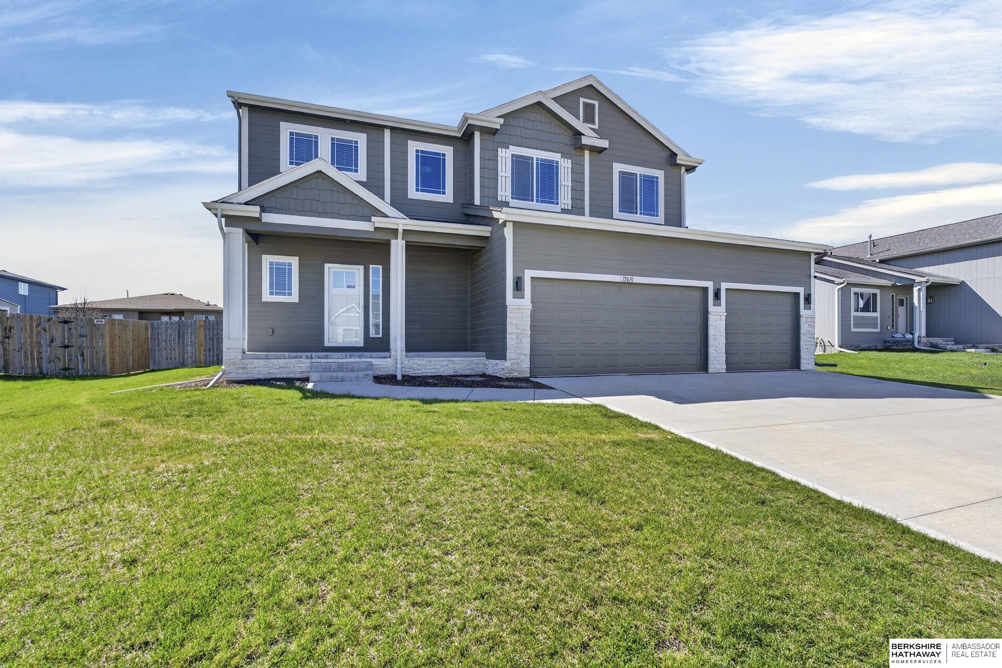 This well-maintained, nearly new two-story offers a functional layout in a convenient location. The main floor is open with great natural light, connecting the living area and kitchen. The kitchen features stainless steel appliances, granite countertops, and a walk-in pantry with ample storage. All four bedrooms are located upstairs, along with the laundry room for added convenience. The primary suite includes a dual vanity and a walk-in closet. Outside, enjoy a large, flat, fully fenced backyard and a 3-car garage. The unfinished basement provides room to expand and finish to your preference. Located near a neighborhood park, school, walking trail, and with easy access to Offutt AFB.