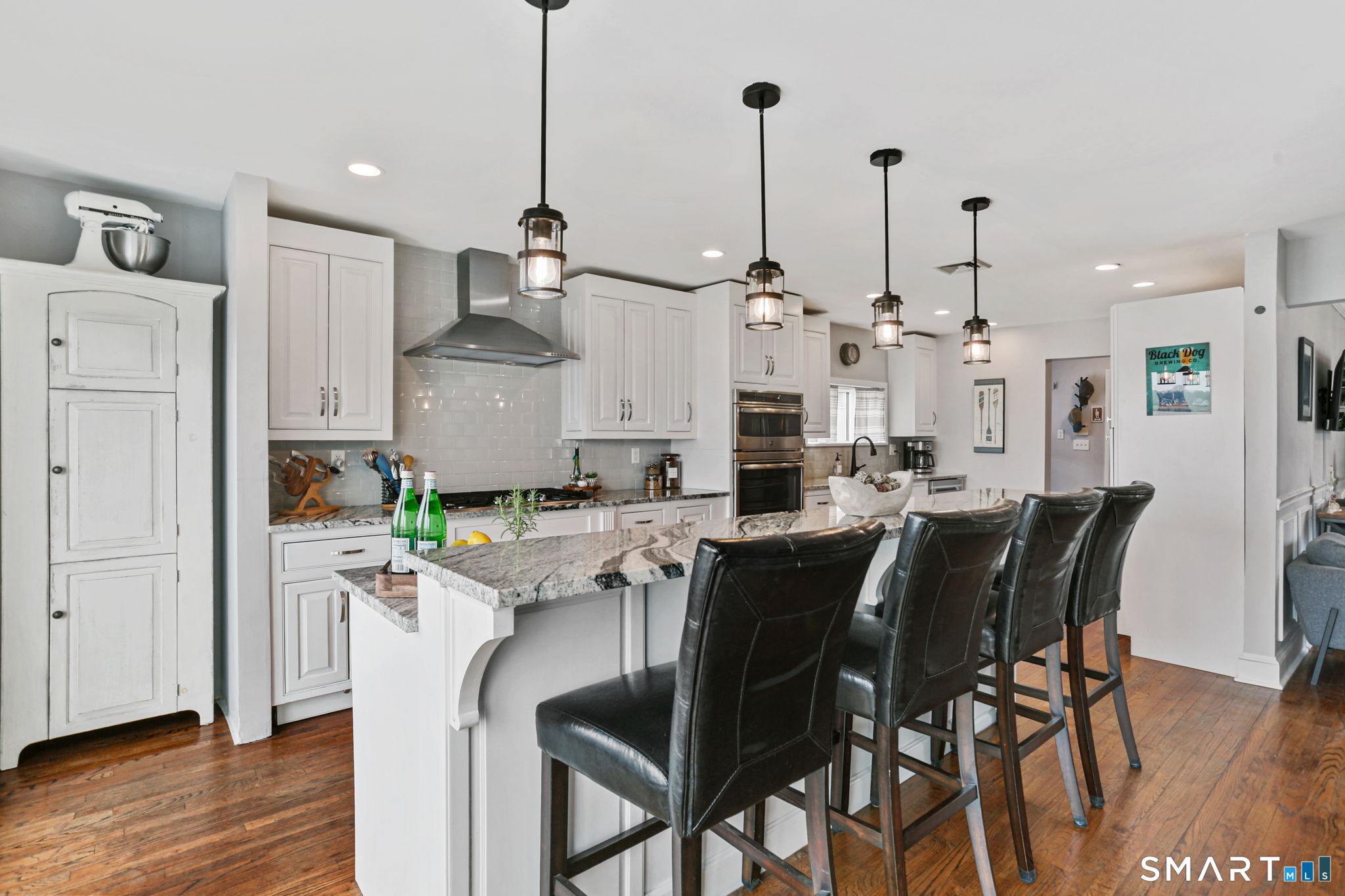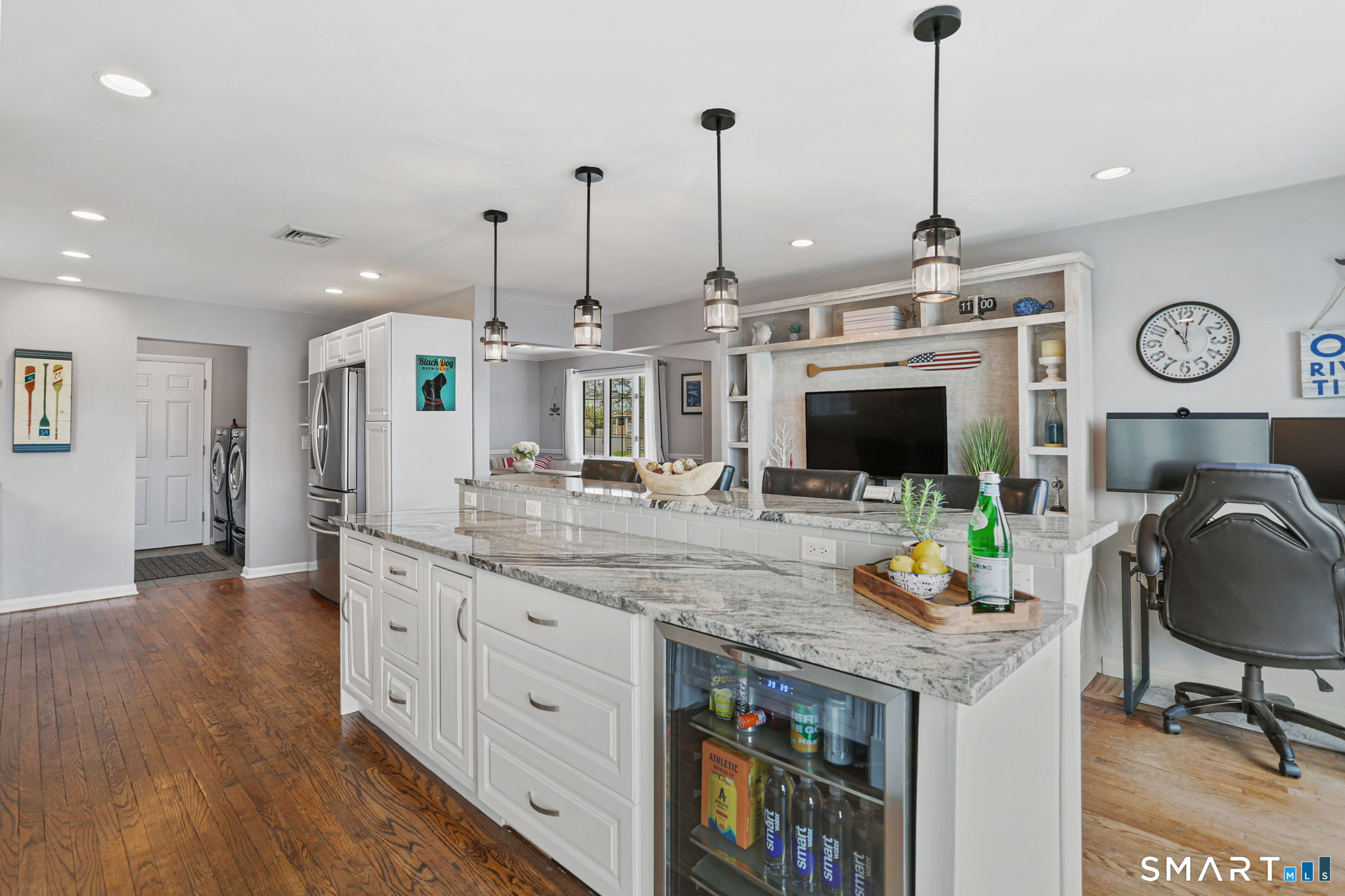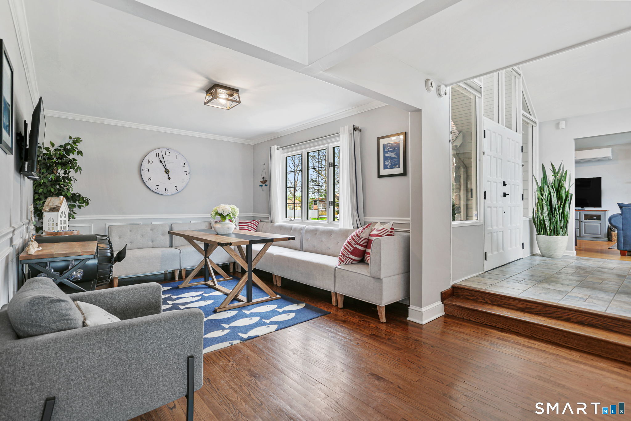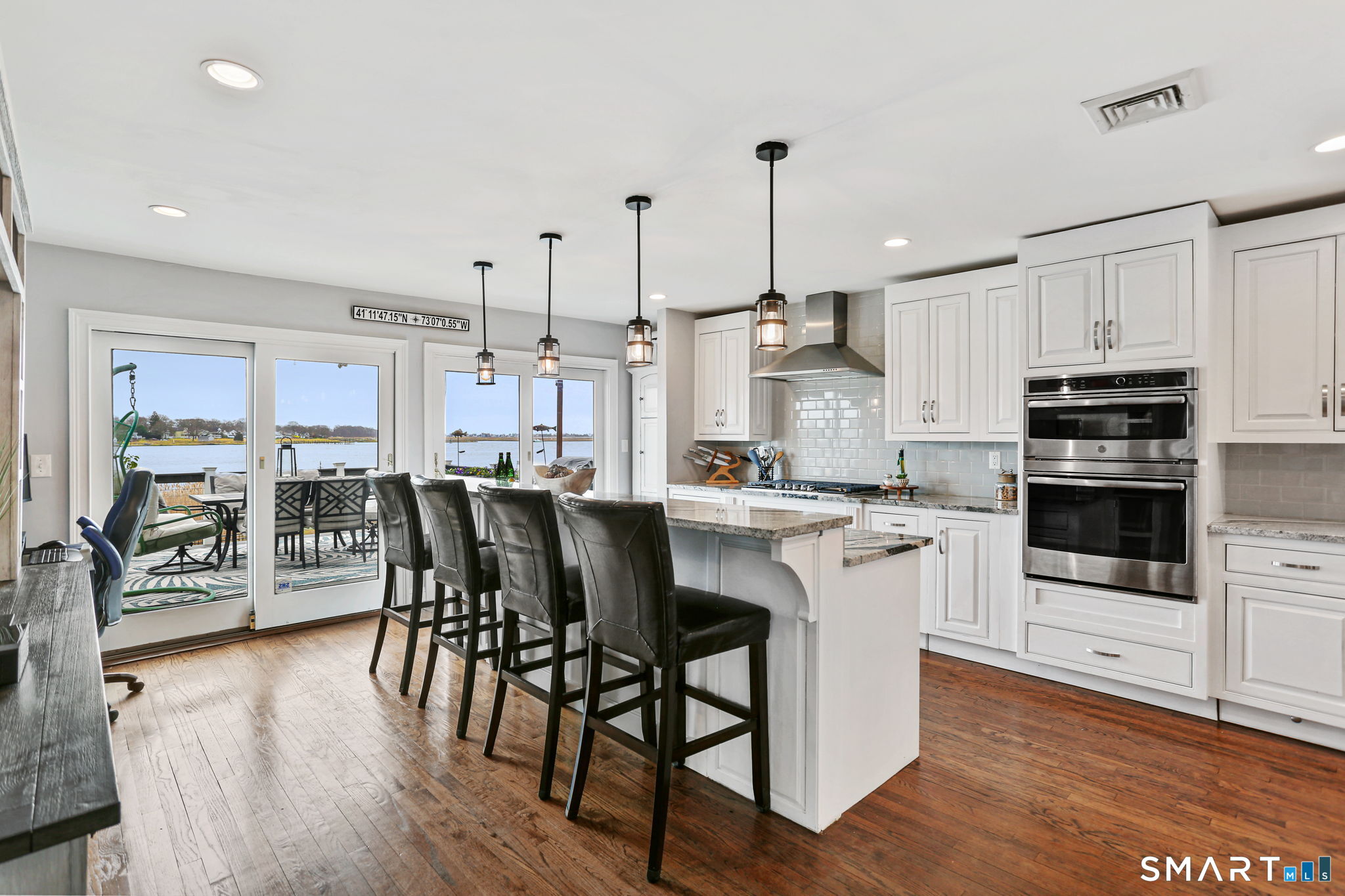 Set at the end of a quiet cul-de-sac with sweeping views of the Housatonic River, this well-maintained home offers both comfort and functionality. Multiple living spaces capture the water views, including a living room with a gas fireplace and remote, dining room, and an updated eat-in kitchen with sliders opening to a multi-level deck overlooking the river. Hardwood floors run throughout the main living areas and bedrooms, with tile flooring in the baths. The layout features a spacious primary suite with a full bath and heated tile floor, three additional bedrooms, three full baths, and a half bath. Added conveniences include remote-controlled upper windows in the living room and two guest bedrooms, as well as skylights and shades in one guest room. A laundry room is ideally located between the kitchen and attached two-car garage. The partially finished basement offers flexible living space, plus a dedicated workshop area with garage-style doors and direct access to the level backyard. Outdoor living is maximized with multiple deck levels and easy access to the yard from both the main and lower levels-all just minutes from dining, shopping, and commuter routes.