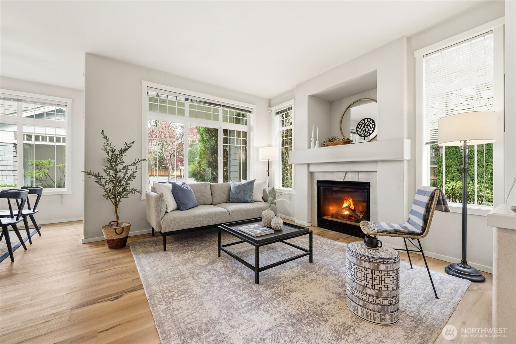 Spacious ground level corner unit with an accessible layout, in-unit laundry and attached garage. This well designed 2 bedroom 2 bathroom condo features an open kitchen, living, and dining area with updated vinyl plank flooring throughout and no stairs. Enjoy cozy evenings by the gas fireplace or relax outside on the back patio. The kitchen offers generous storage, ample counter space and a comfortable layout for everyday cooking. Large windows fill the living and dining areas with natural light, complete with blinds for added privacy. The oversized primary suite includes a walk-in closet and full en-suite bathroom, while the second bedroom and bathroom provide flexibility for guests, home office, or additional living space. Convenient entry through the attached one car garage, plus an additional driveway parking space and nearby visitor parking. HOA allows pets and monthly dues cover water, sewer, and garbage. Located at the Plum Grove Condos, tucked within a quiet residential community of Renton Highlands. Easy access to shopping, dining, local parks, commuting routes (less than 10mins to freeway) and even closer to Renton Technical College. Offering the ease of low maintenance condo living with the comfort and feel of a private home!