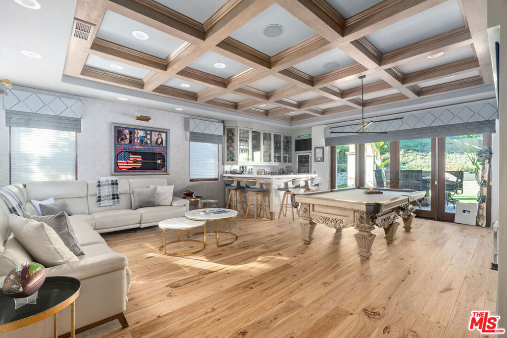 Turnkey Luxury Living in Guard Gated Palisades Country Estates, Fully Furnished, Move In Ready Situated within the prestigious guard gated Palisades Country Estates, this exceptional estate offers approximately 8,100 sq ft on nearly an acre, featuring 5 bedrooms and 7.5 bathrooms, including a convenient poolside bath. Originally built in 2004 and updated in 2020, the home showcases soaring ceilings, a dramatic entry, and seamless indoor outdoor flow. The chef's kitchen opens to multiple living and dining areas, ideal for both everyday living and upscale entertaining. Interior amenities include an entertainment room with bar, solid mahogany office with coffered ceilings, playroom with student workstations, gym, and wine cellar. Resort style grounds feature a pool, spa, expansive outdoor entertaining areas, lush landscaping, canyon views, and a newly added sports court with pickleball lines. Offered fully furnished with a stocked kitchen, truly move in ready. 24 hour guard gated security. Minutes to Palisades Village and the beach.