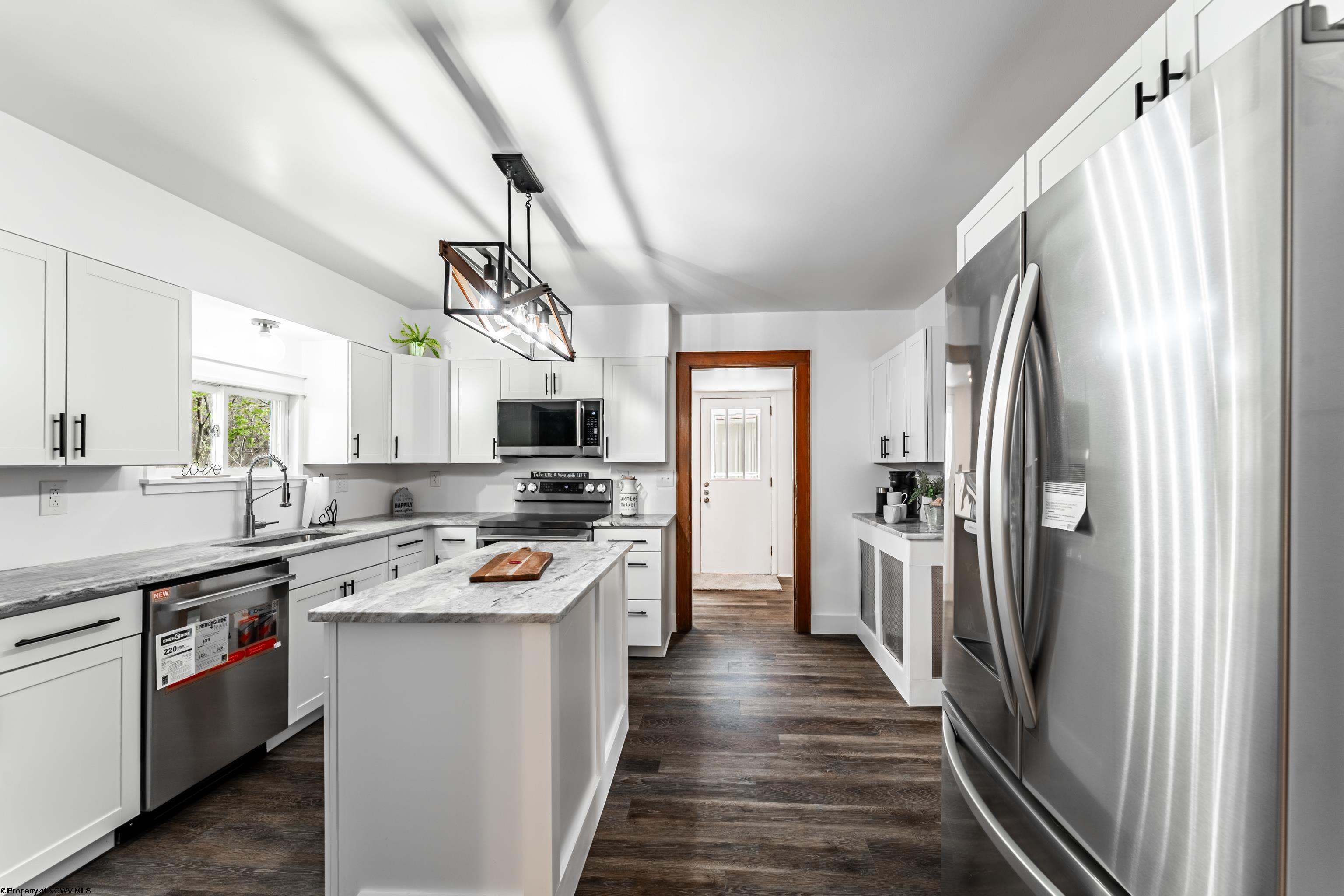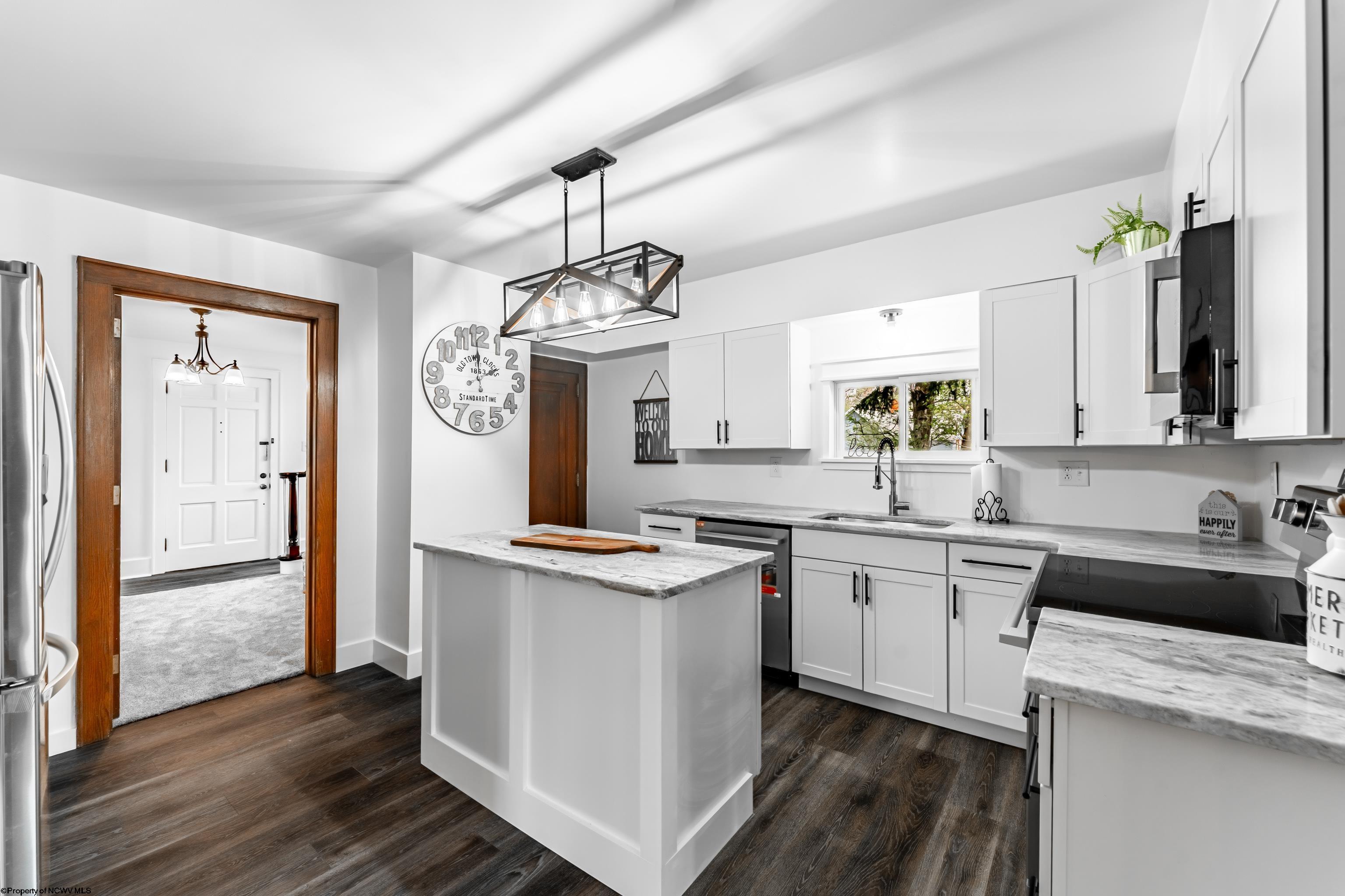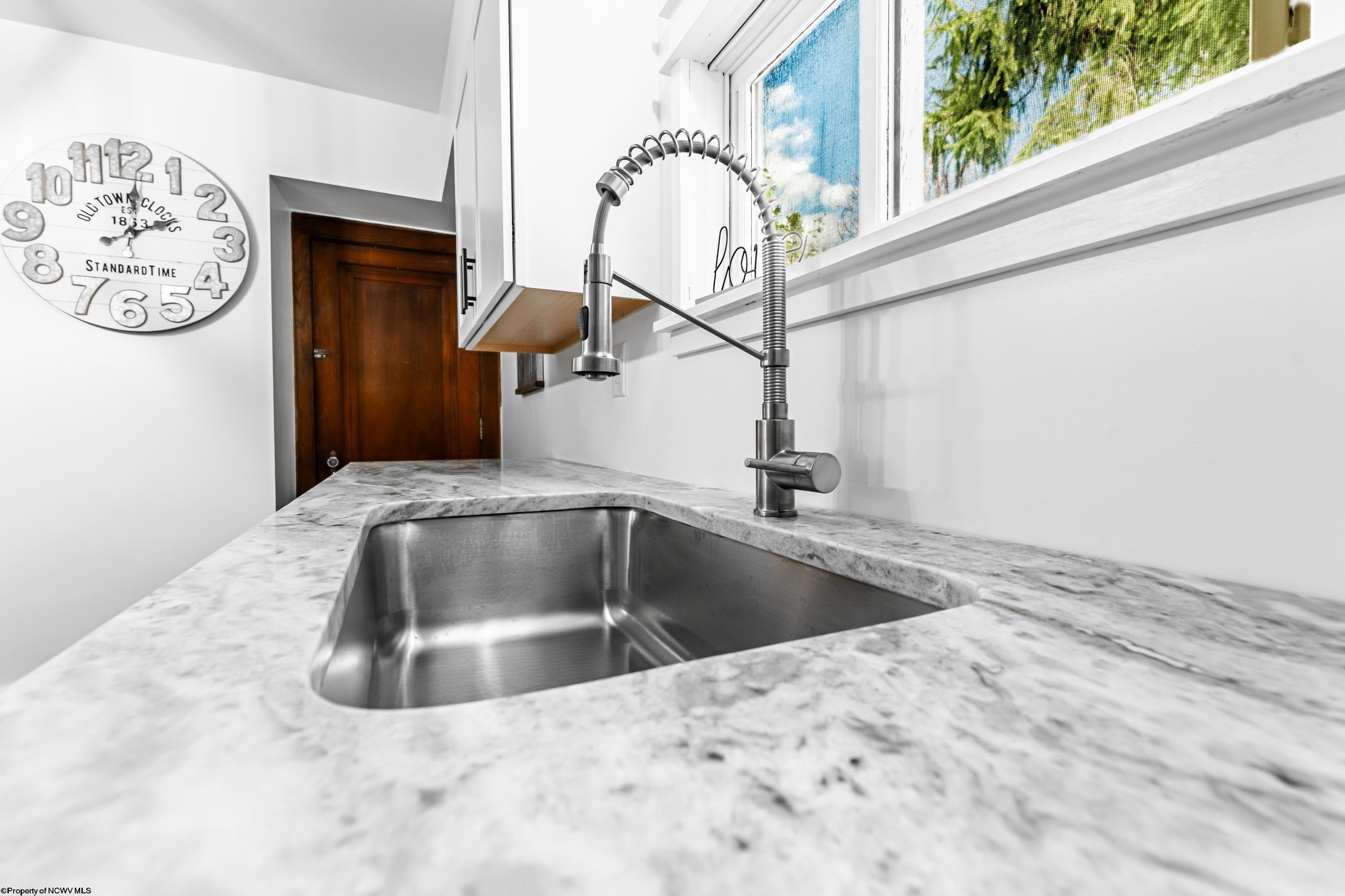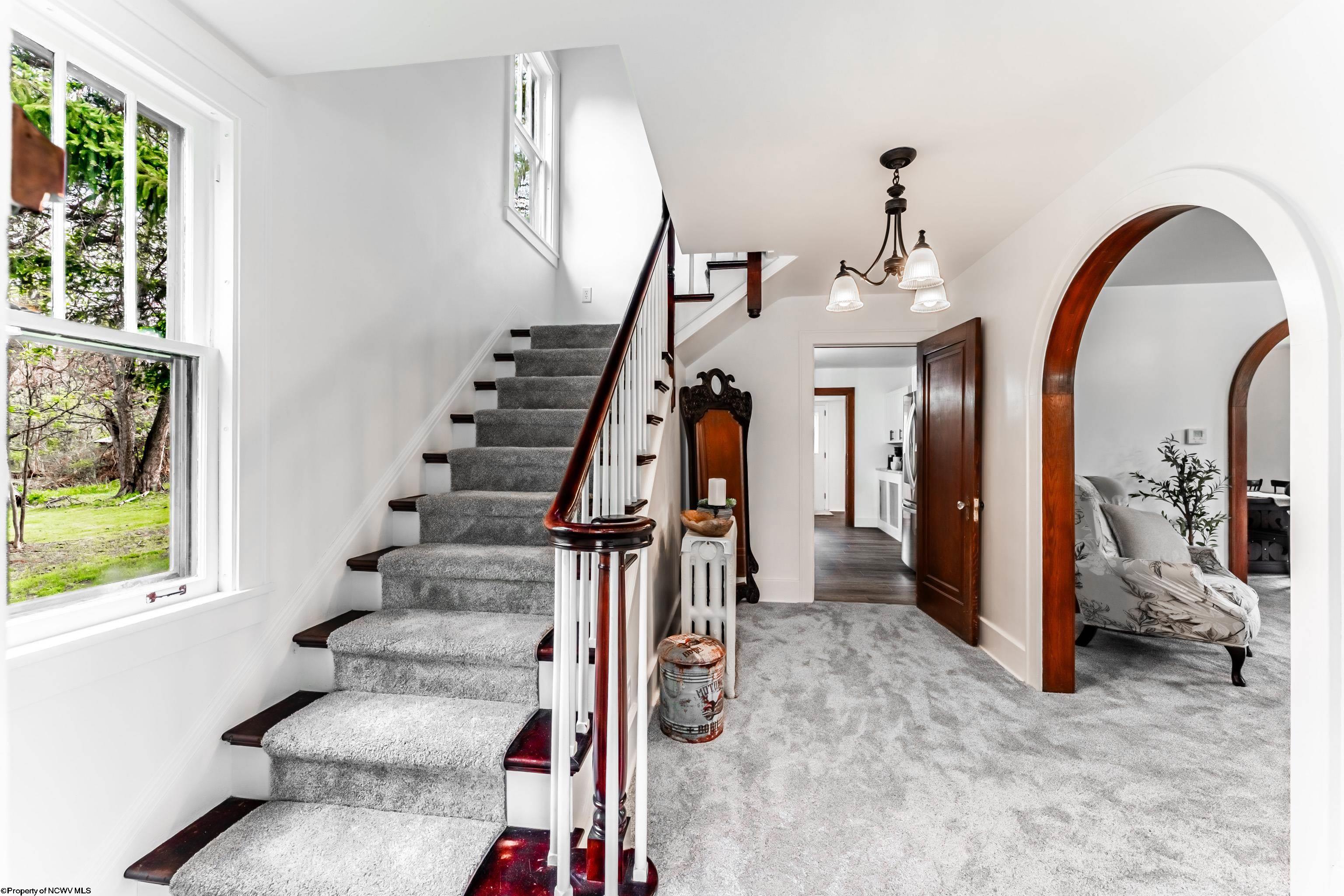 Once overlooked, now unforgettable. This beautifully reimagined 1929 home has been taken down to its bones and brought back to life with intention, style, and craftsmanship at every turn. From the moment you arrive, the massive 28x8 ft covered front porch sets the tone welcoming you into a stunning foyer rich with original woodwork, a lovely staircase, and timeless curved entryways that immediately capture your heart. The character continues with amazing stonework both inside and out, paired effortlessly with thoughtful updates. The living room is abundant with natural light and anchored by a striking stone fireplace with tile hearth, flanked by glass-front bookshelves. Curved entryways lead you seamlessly into the dining room, creating a flow that feels both classic and inviting. The main floor offers incredible versatility with a bedroom featuring a small en suite bath, a spacious dining room, and convenient main floor laundry. The kitchen is wonderfully appointed with all new appliances, cabinetry, a center island, and solid surface countertops plus a perfectly designed space for your morning coffee ritual. Upstairs, you'll find two bedrooms with some of the largest closets you've ever seen in a home of this era, along with a stunningly spacious full bathroom. Each floor is thoughtfully equipped with its own full bath, while the basement adds even more functionality with a wet bath and a space that is impressively dry and clean as a fiddle. Outside, the property continues to impress a detached 2-car garage with electricity and a fully floored upper level for storage, all situated on a rare double lot just under half an acre of flat, usable land. Conveniently located just off Route 43, you'll enjoy easy access to Uniontown and Morgantown. This isn't just a renovation it's a revival. A home with history, heart, and a beautifully written next chapter. All that's missing is you.